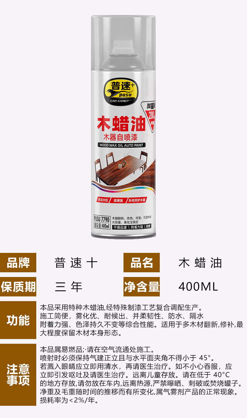 Pusu ten wood self-spraying paint, matte colorless and transparent wood wax oil, solid wood furniture wood paint renovation and repair, repairing wood grain original color wood waterproof and anti-corrosion wood paint, varnish wood paint