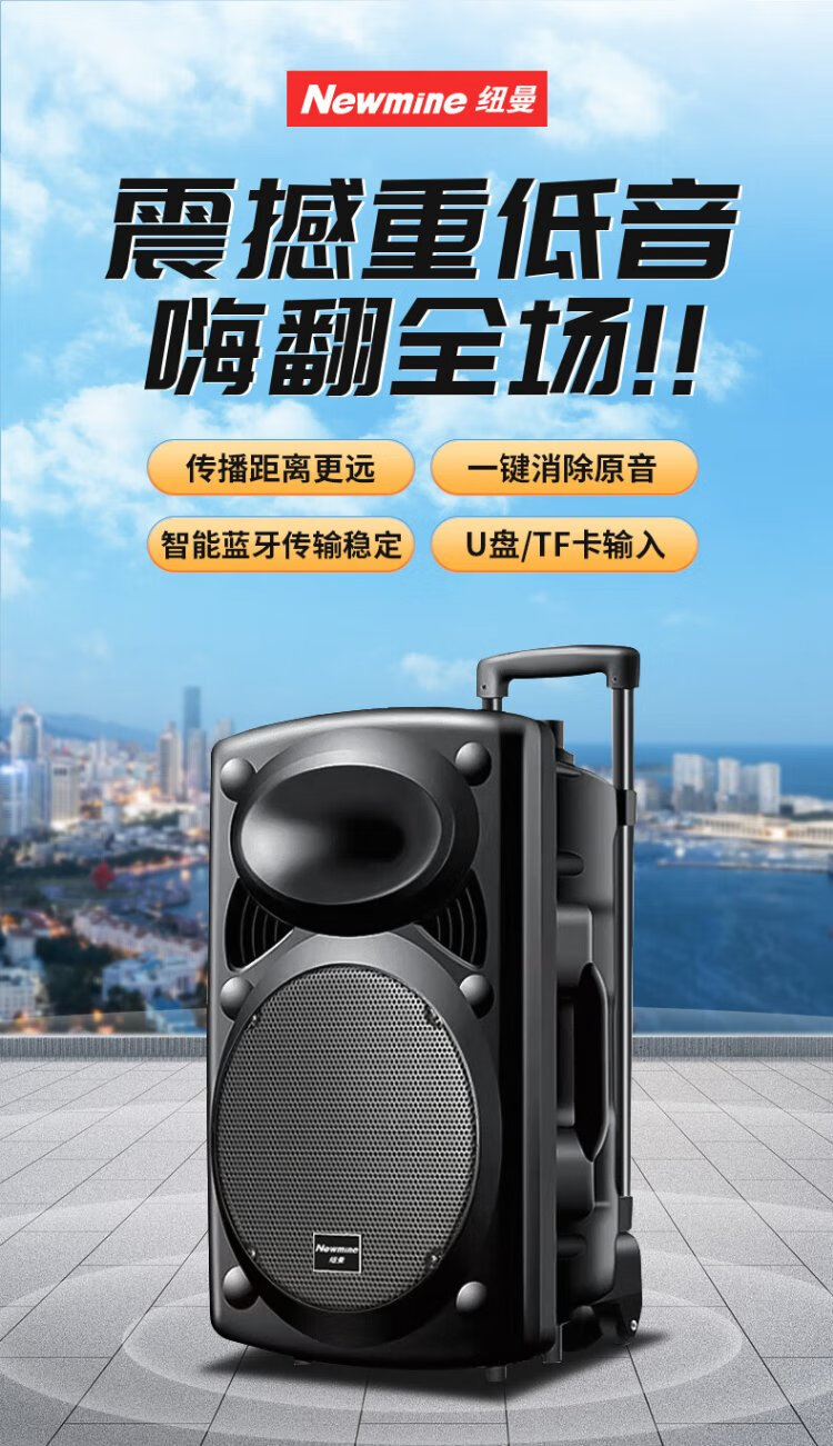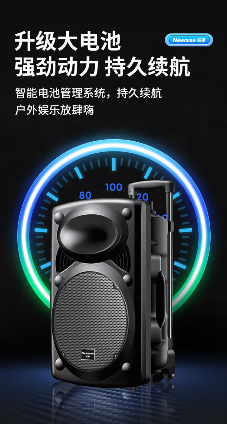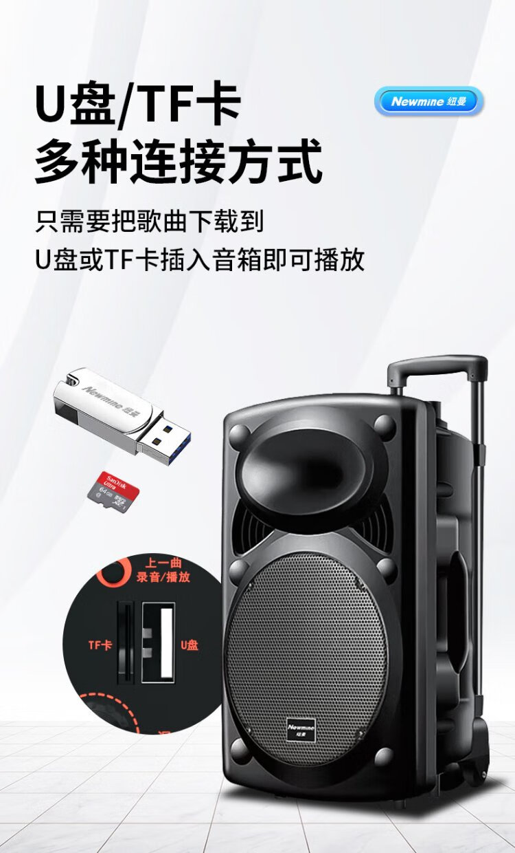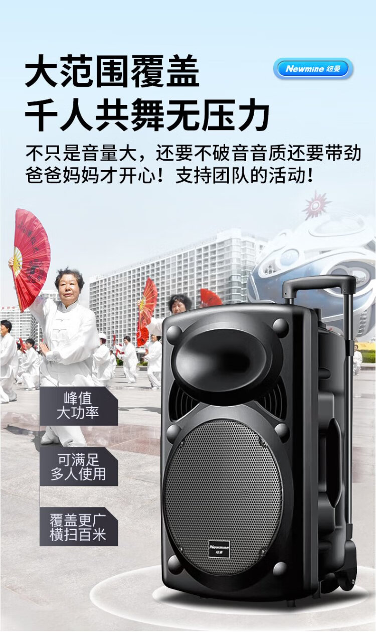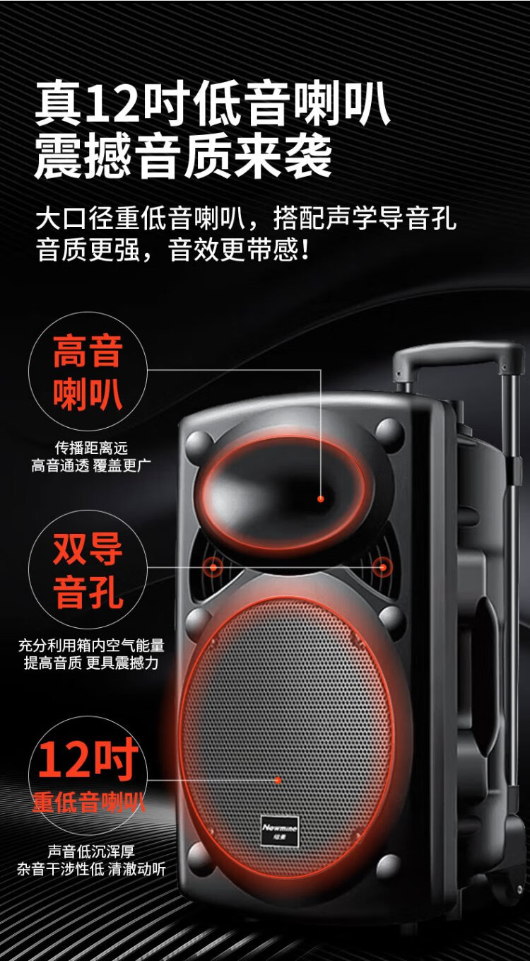 Newman B12 Square Dance 12-inch Outdoor High Volume Bluetooth Trolley Speaker Portable Electric Acoustic Guitar Singing Instrument Speaker Performance K Song Subwoofer Floor Stall Speaker Adapter