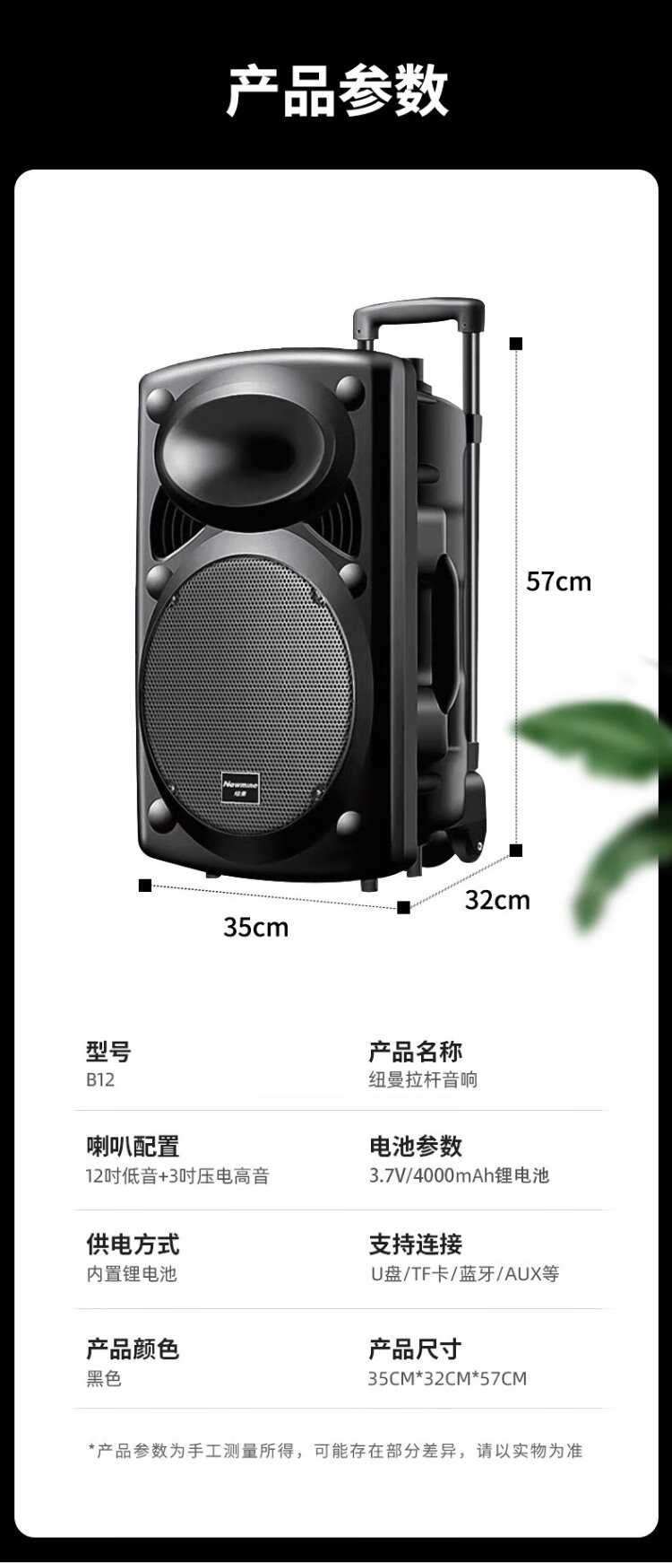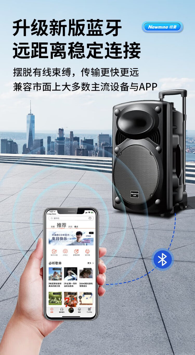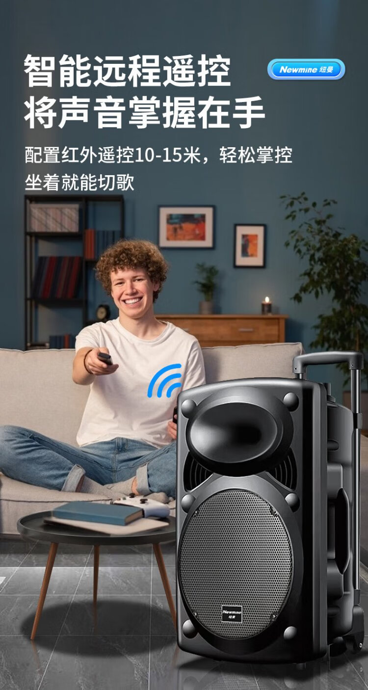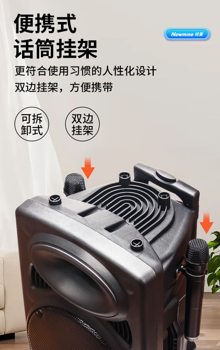 Newman B12 Square Dance 12-inch Outdoor High Volume Bluetooth Trolley Speaker Portable Electric Acoustic Guitar Singing Instrument Speaker Performance K Song Subwoofer Floor Stall Speaker Adapter