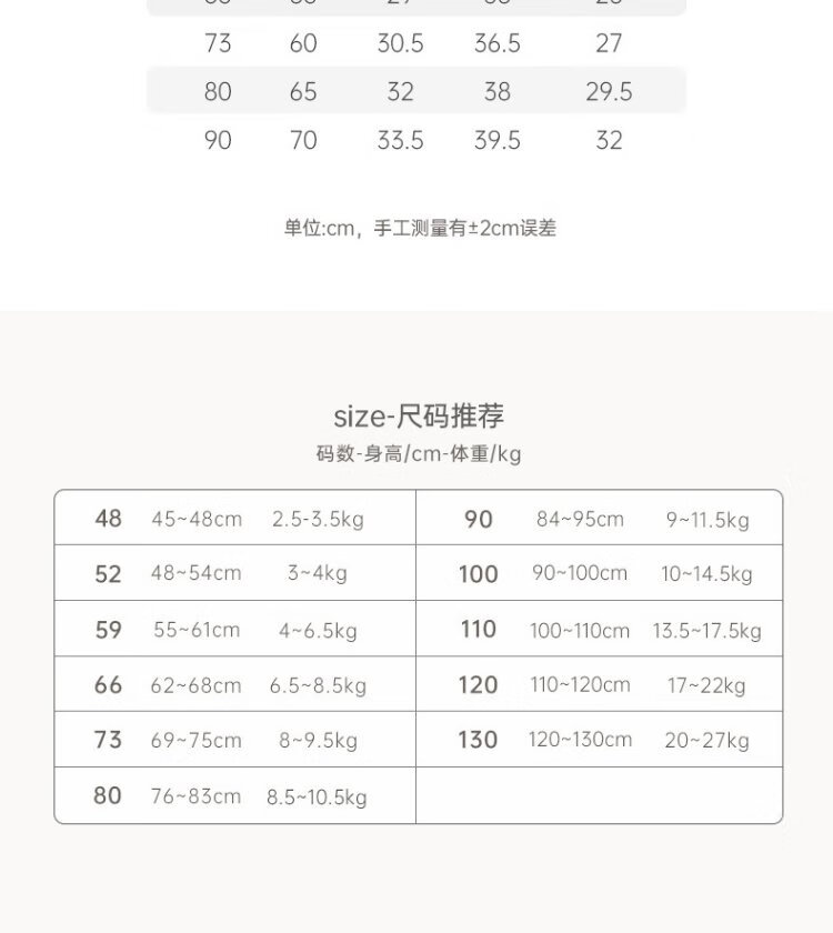 Size (cm) 42 44 46 48 50
