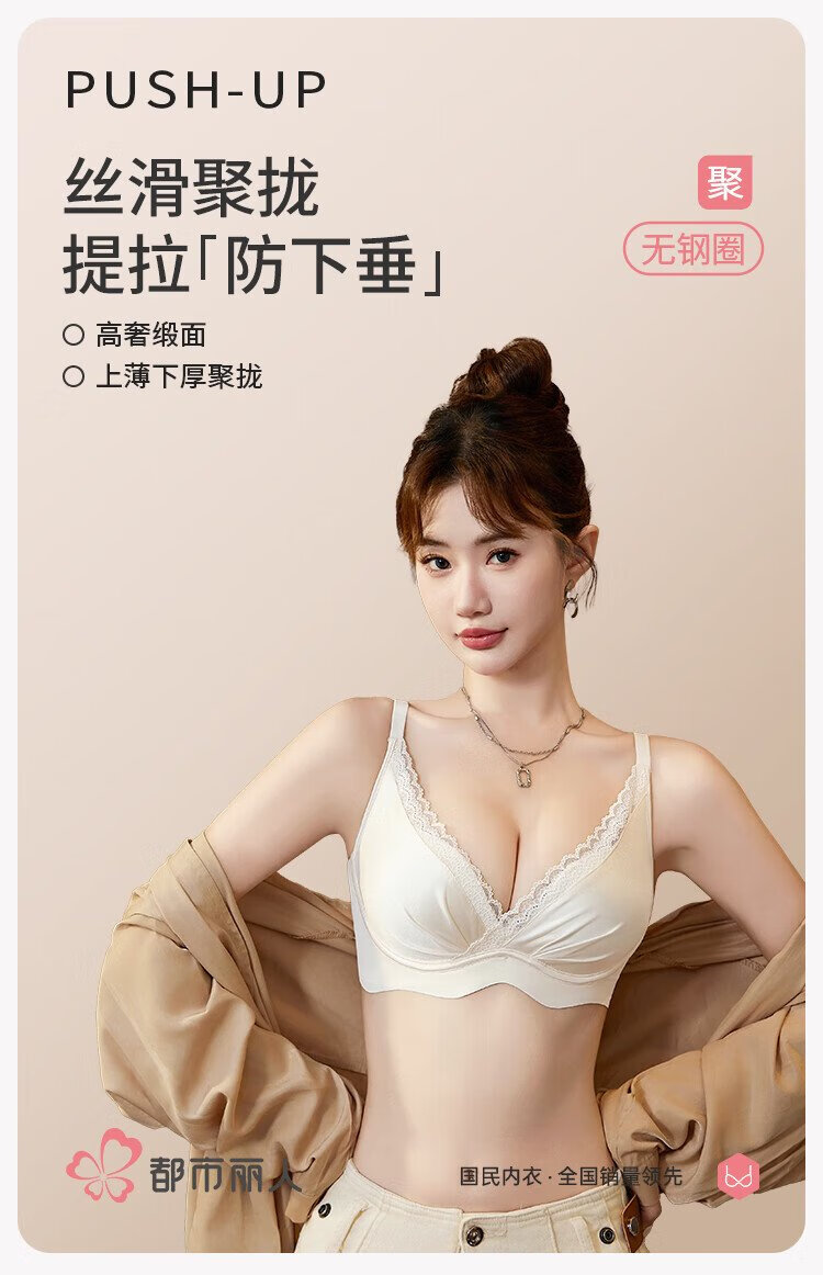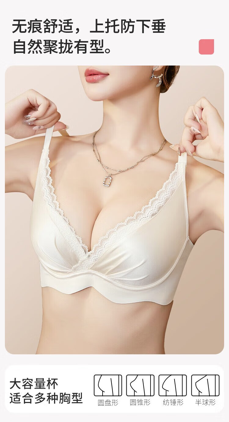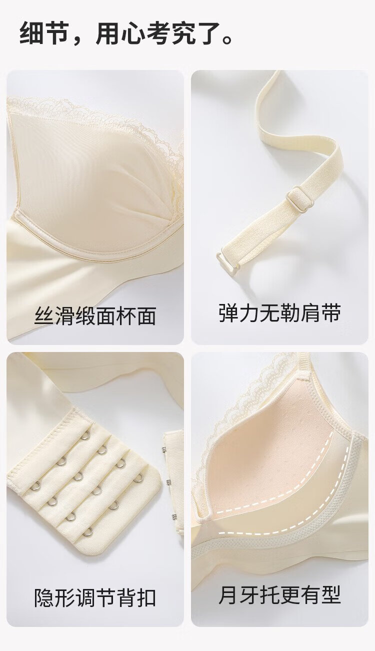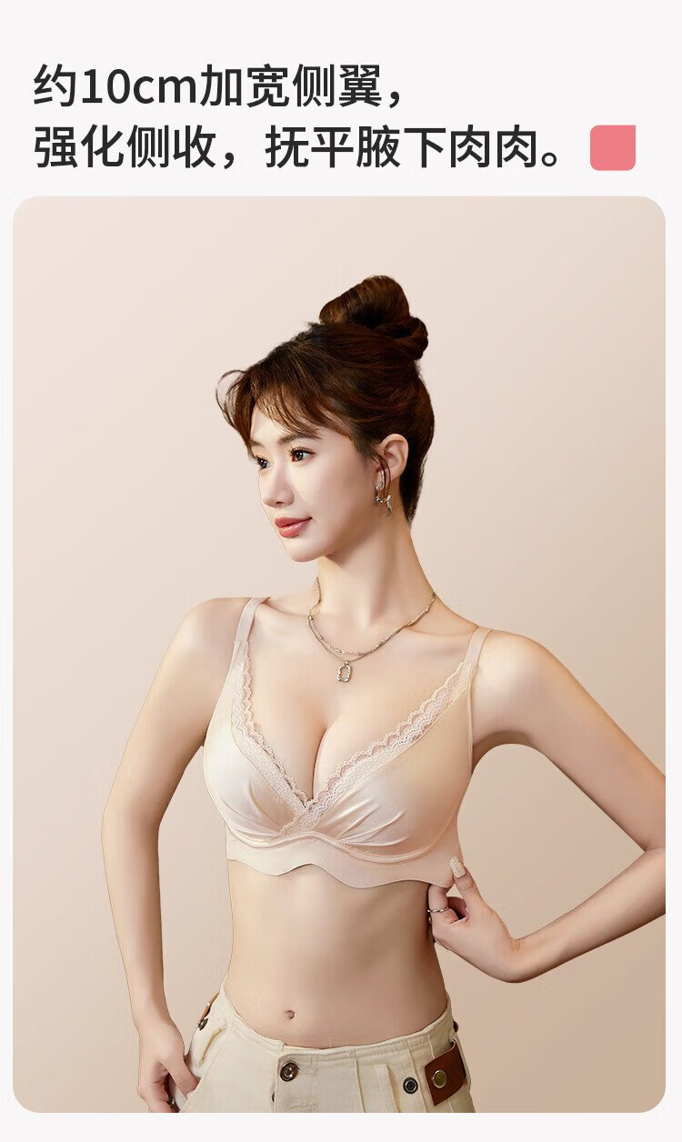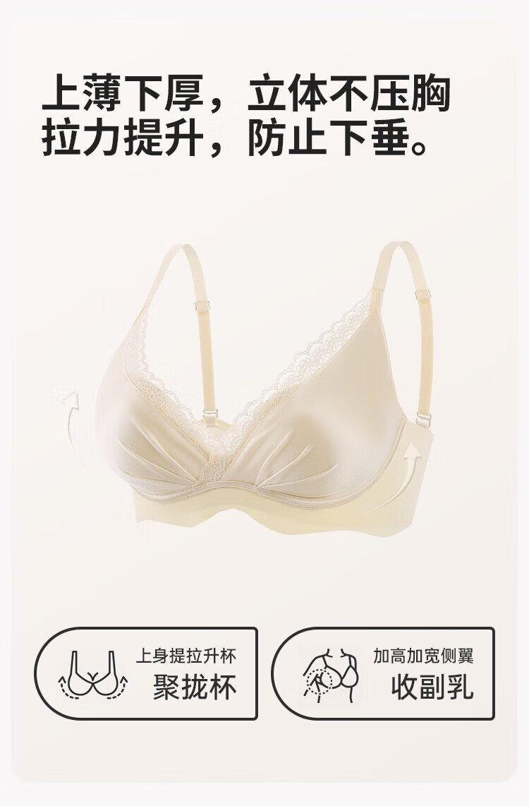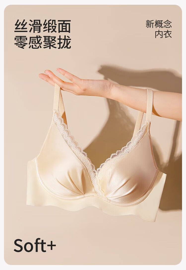 Urban Beauty Bra Women's Underwear Gathered Lace Satin Sexy No Wires Comfortable Breathable Seamless Bra Skin Color 34AB