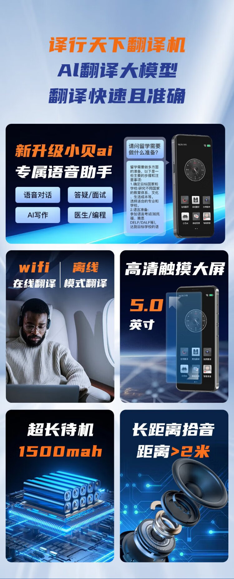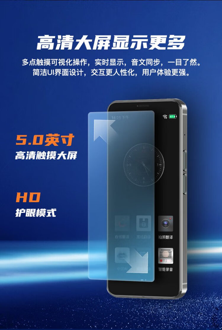 Yi Xing Tian Xia AI artificial intelligence translator, simultaneous interpretation multi-language translator, 5-inch high-definition large screen, online and offline, taking pictures and recording, real-time translation for overseas travel