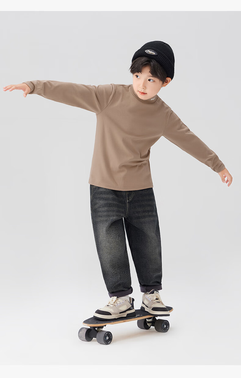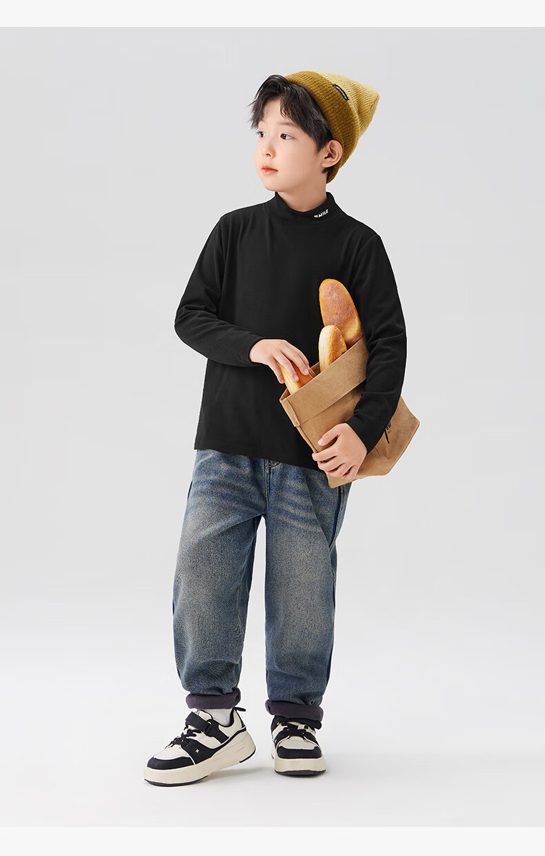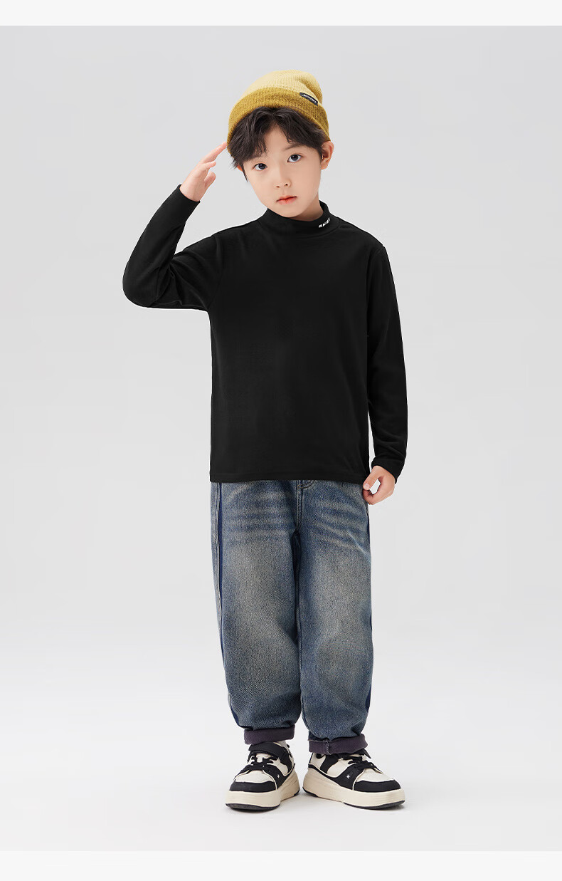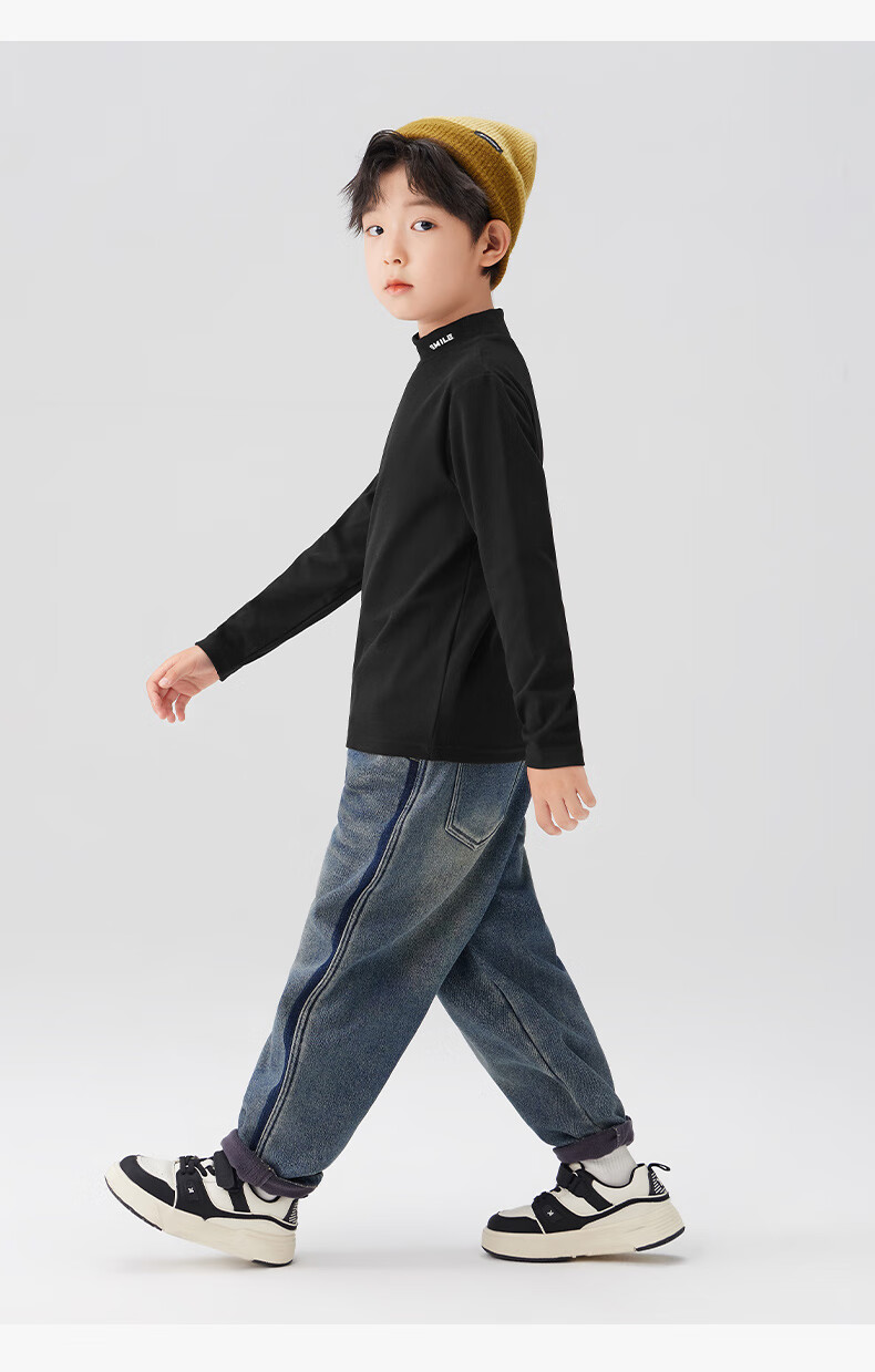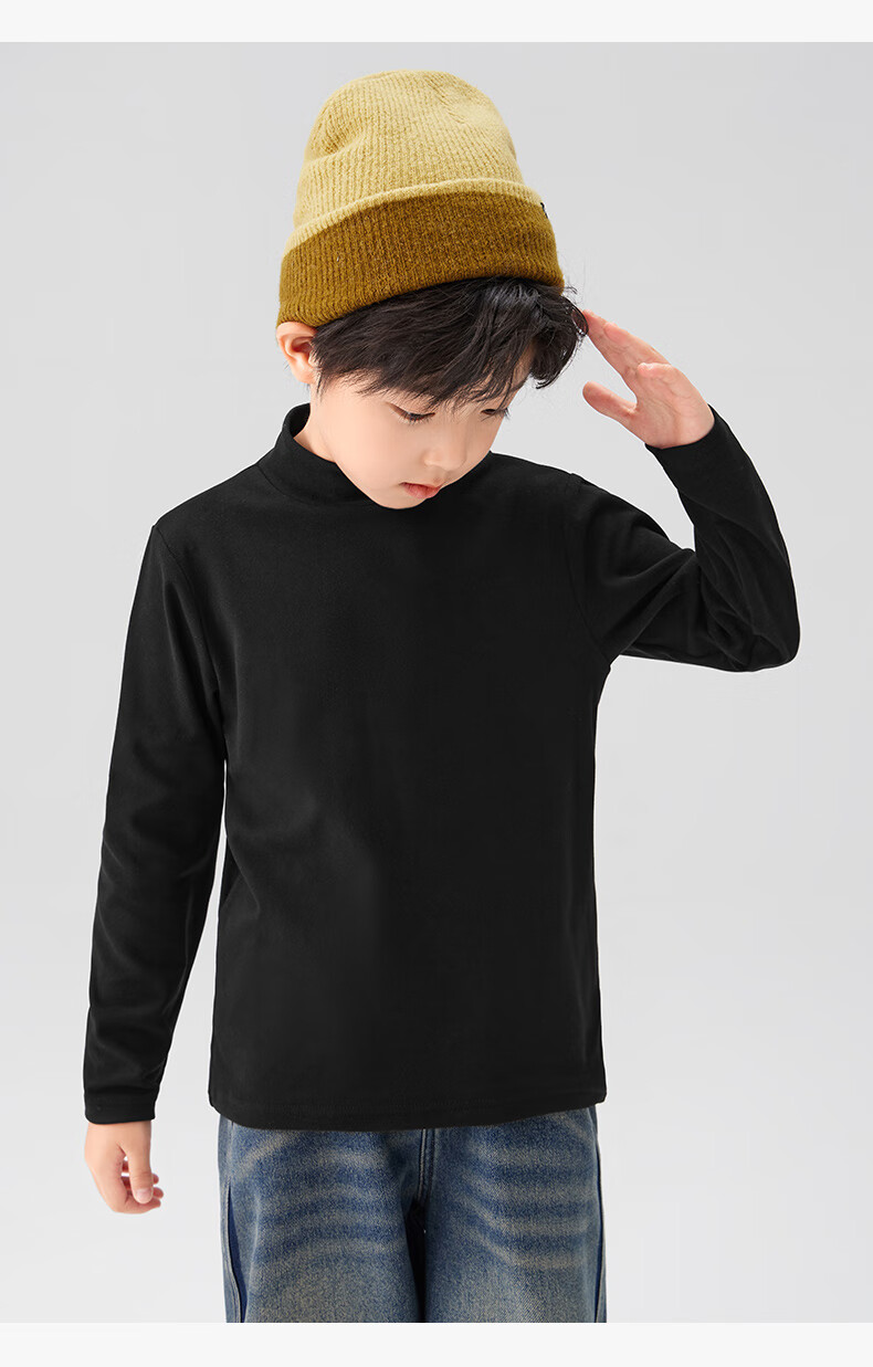 Zuoxi boys' bottoming shirt autumn and winter 2024 new children's long-sleeved T-shirt tops antibacterial black 140