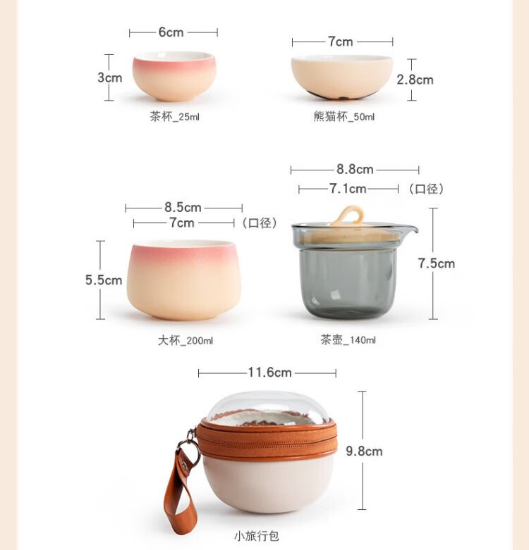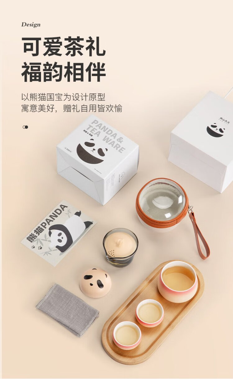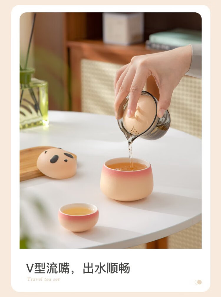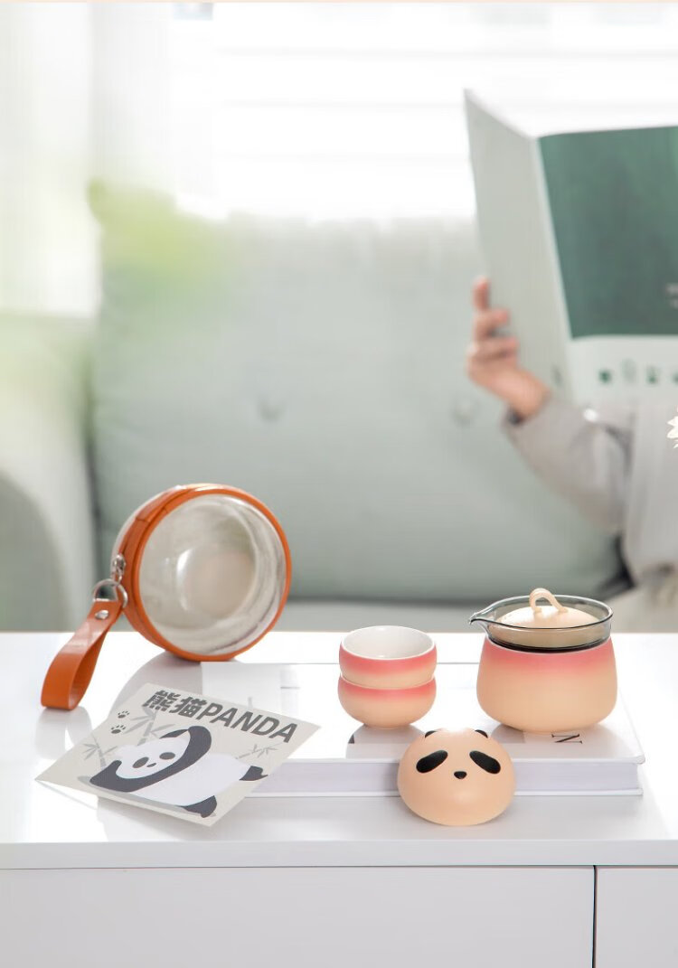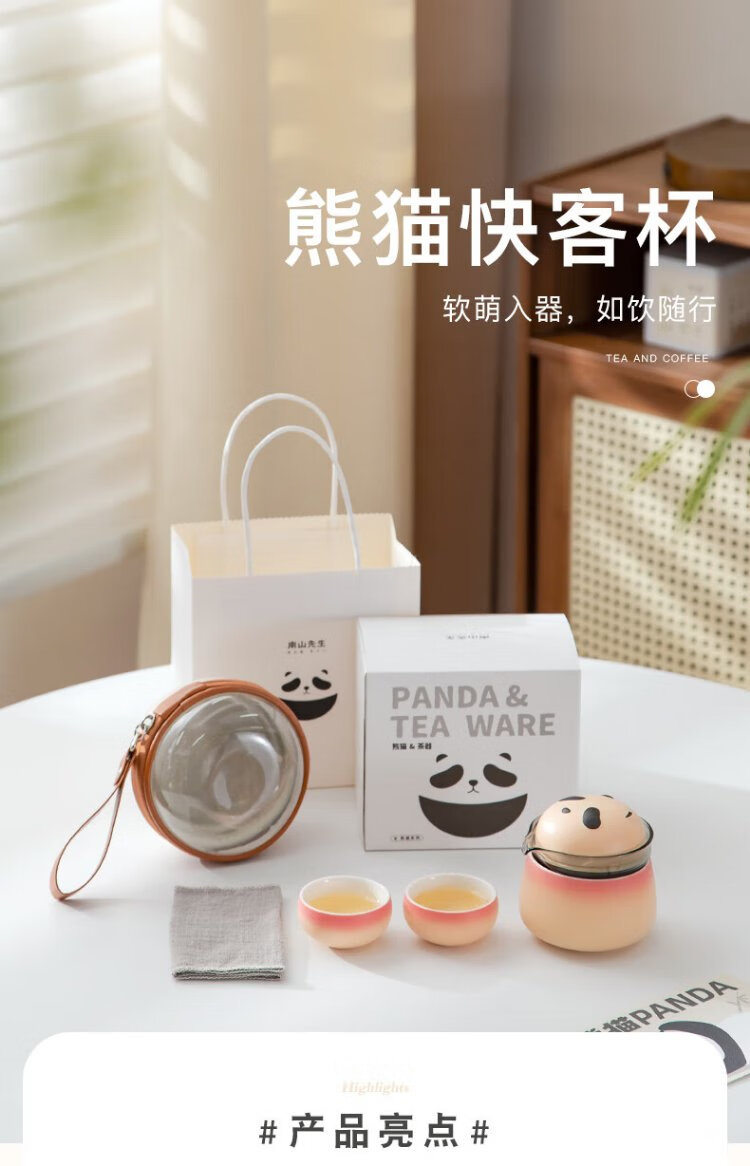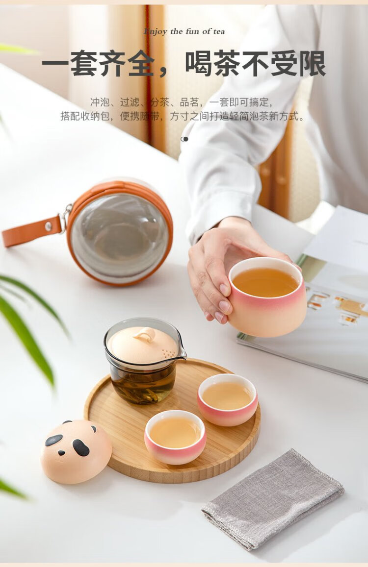 Mr. Nanshan Gradient Pink Panda Quick Cup One Pot Four Cups Chinese Style Outdoor Tea Set All-in-one Portable Storage Travel Tea Set