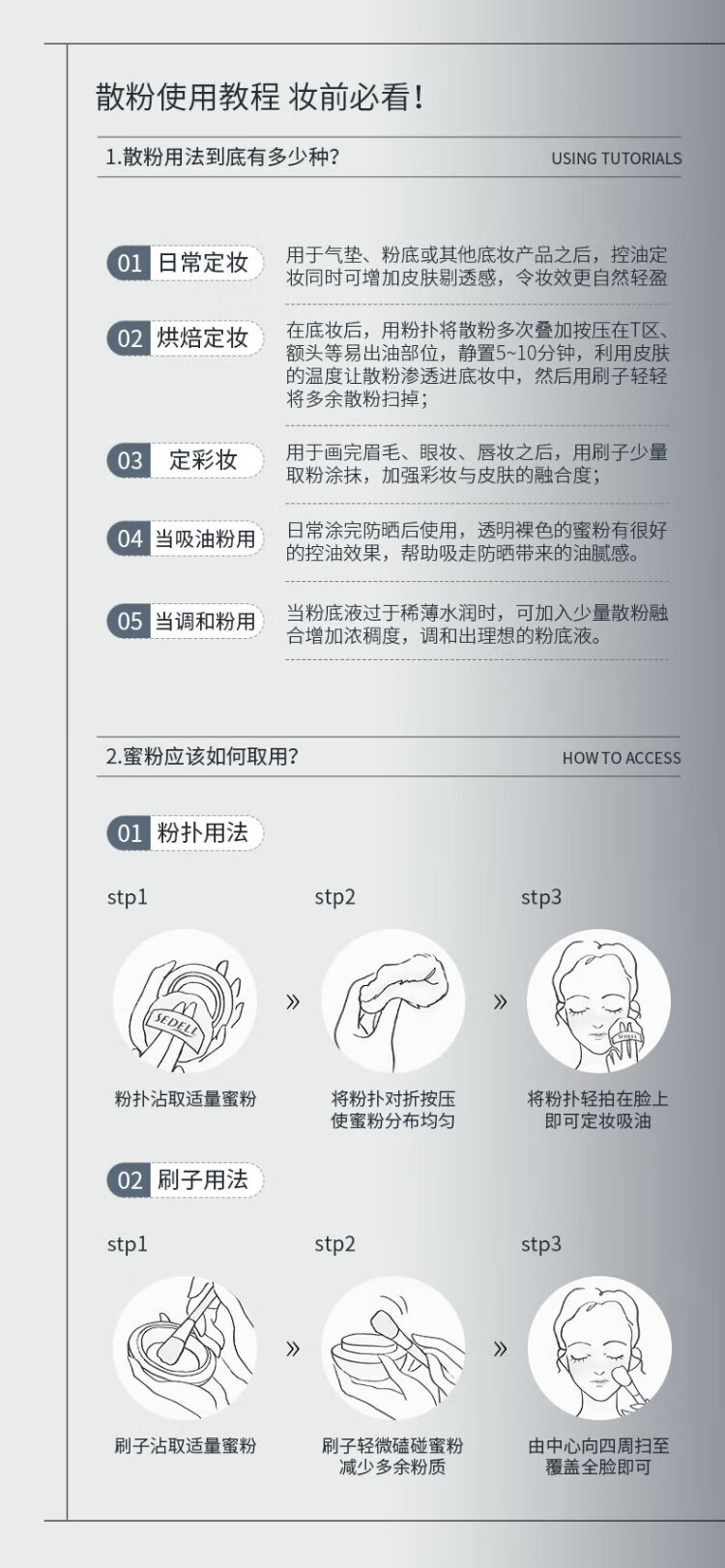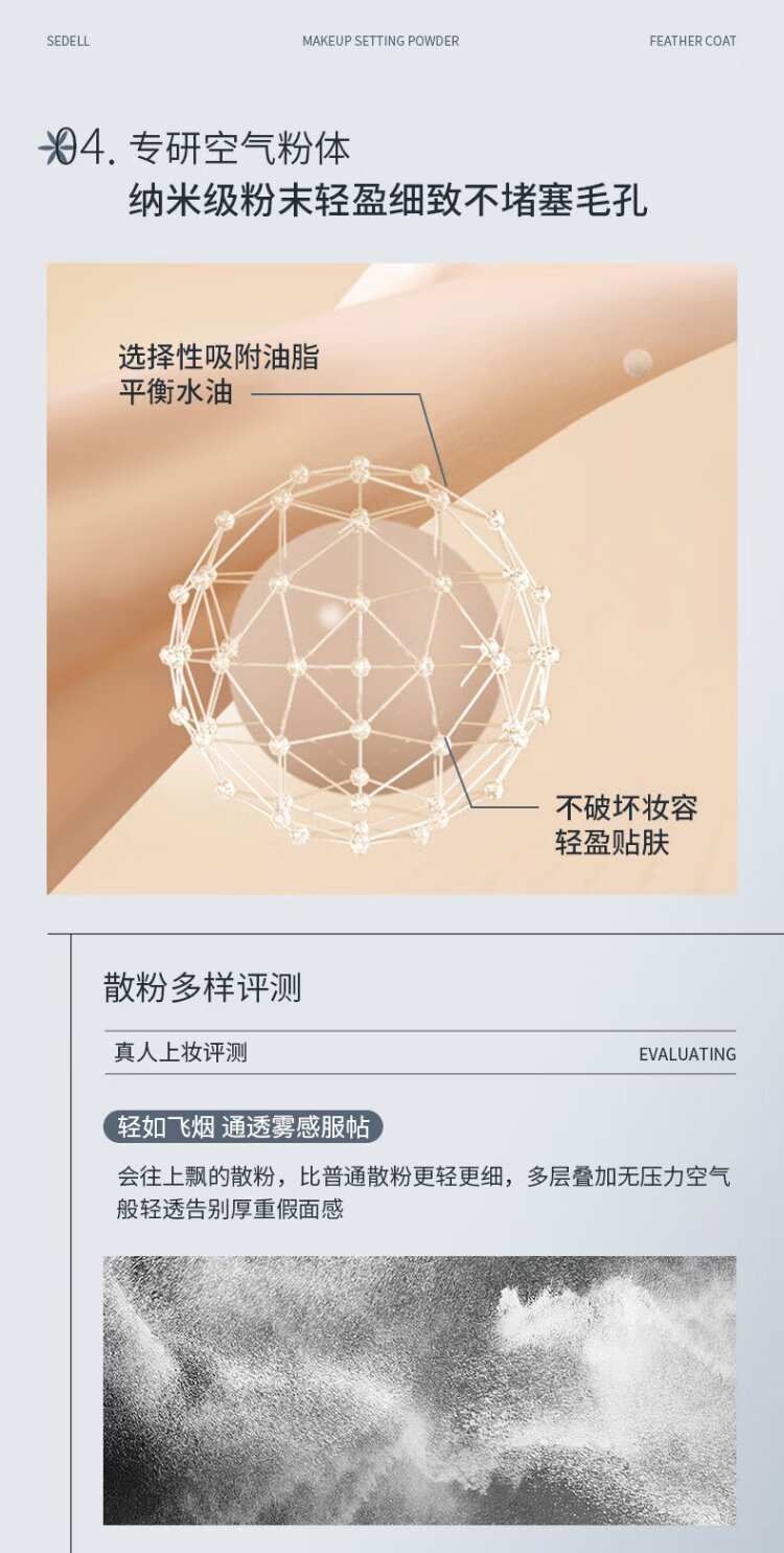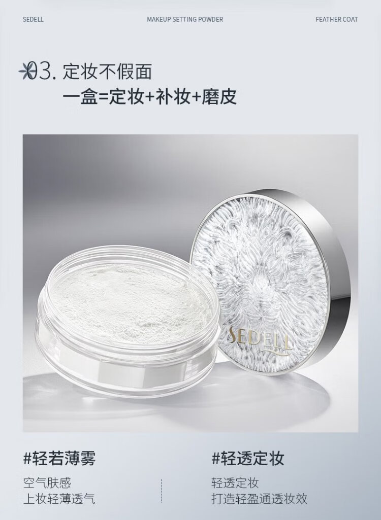Sedell waterproof and sweat-proof setting loose powder, long-lasting non-removing makeup powder, oil-controlling loose powder sample trial size 5g