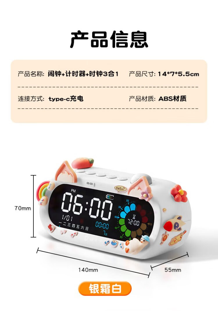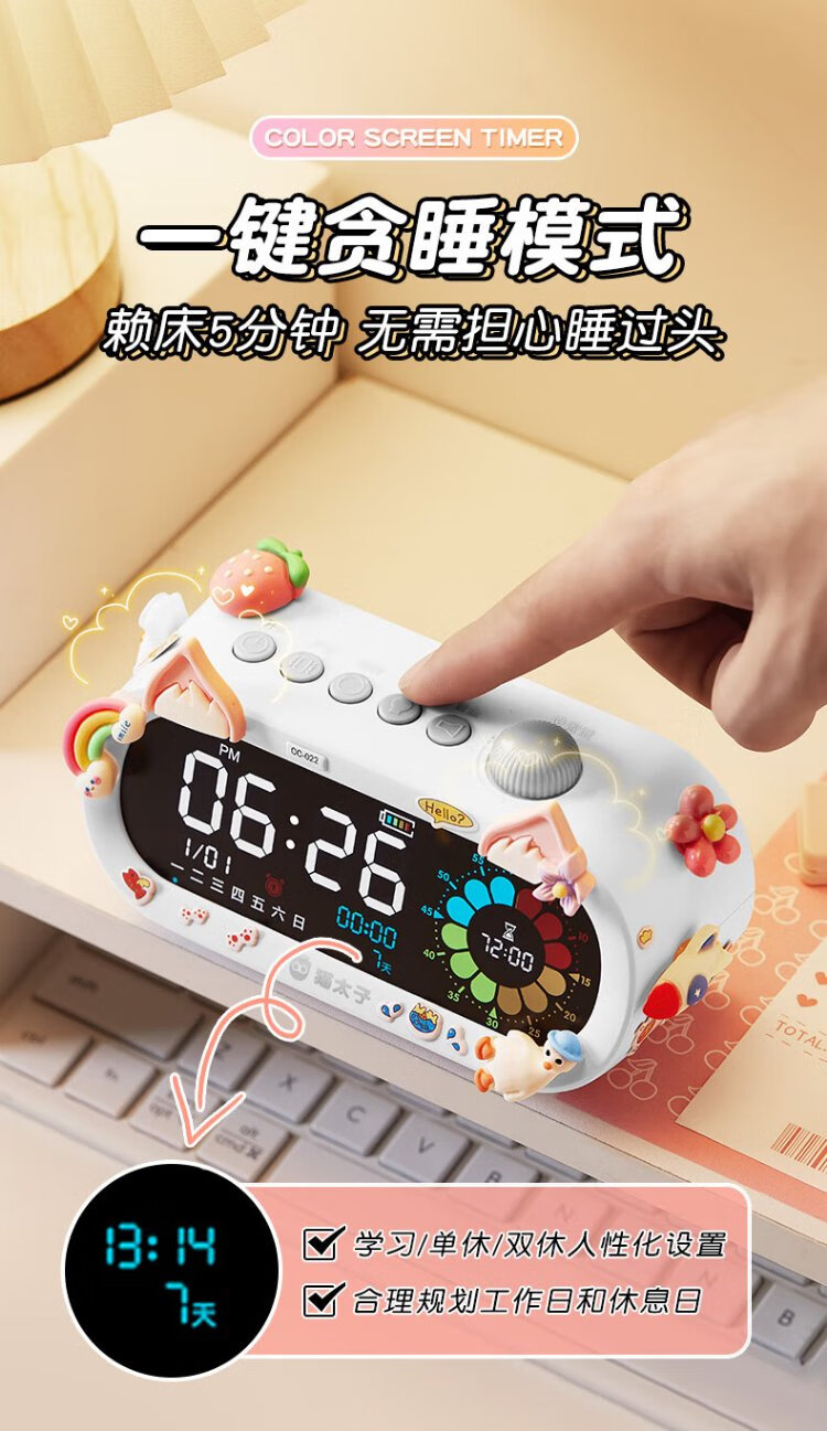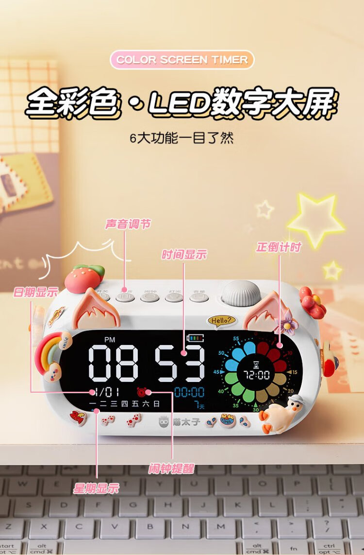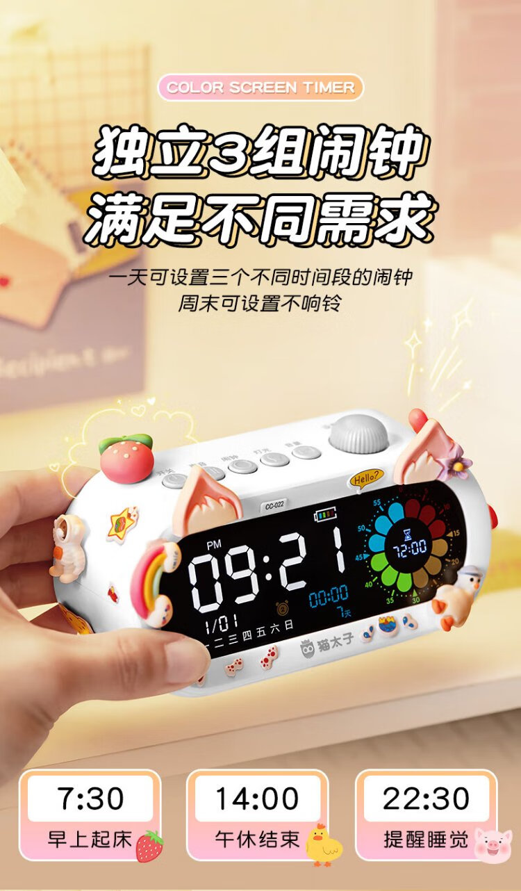 Cat Prince Smart Alarm Clock Voice Timer 2025 New Student-Specific Wake-up Artifact for Children to Learn Timing and Self-Discipline Time Manager for School Day and New Year’s Gift