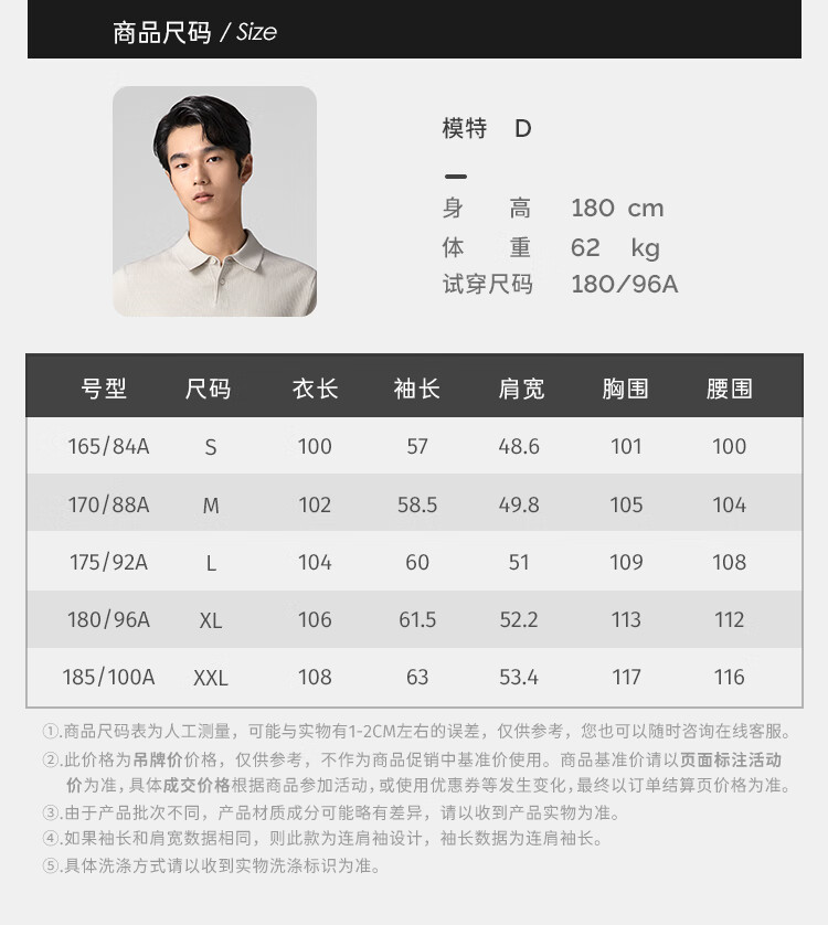 China (cm) 160-165/84-86 165-170 / 88-90 167-172 / 92-96 168-173 / 98-102 170-176 / 106-110