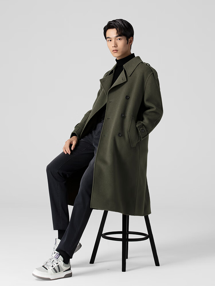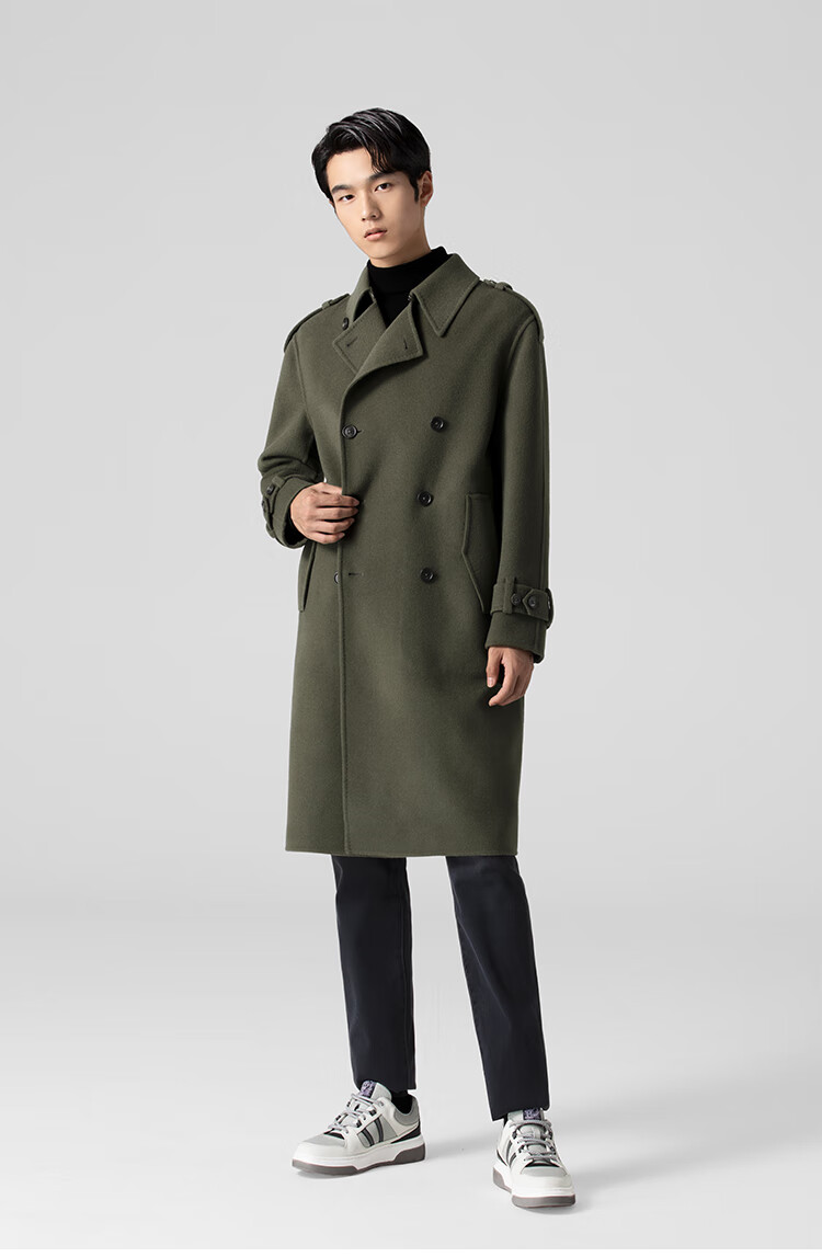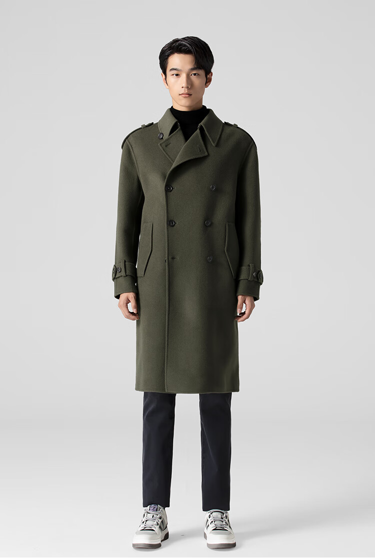VICUTU Men's Fashion Lapel Business Casual Wool Wool Coat Green 175/92A