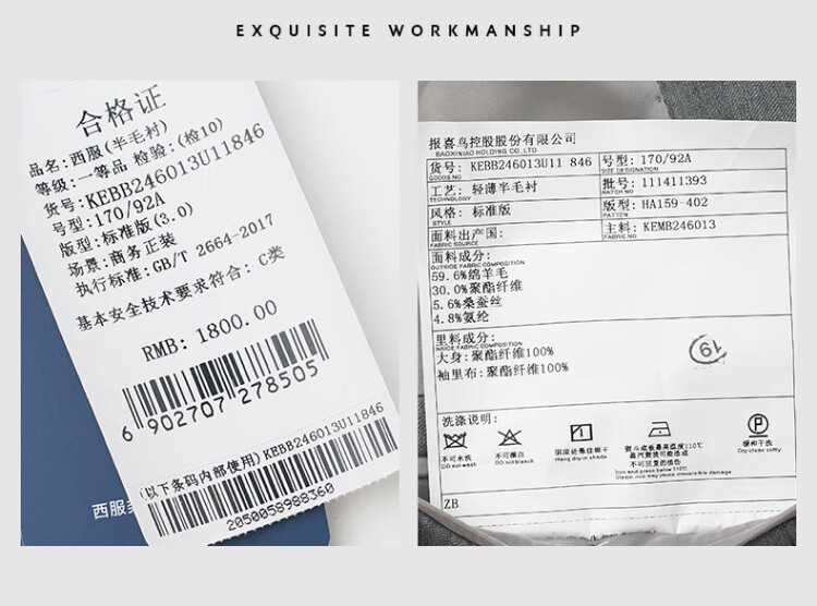 Angel Bird Business Travel Anti-wrinkle Suit (Top) Men's Easy-Care Commuting Suit Jacket KEBB246012U Blue 46A