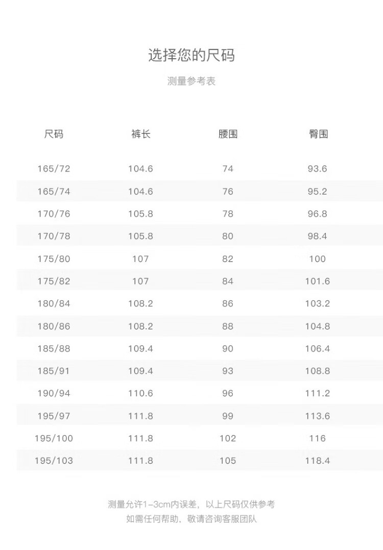 China (cm) 165 / 88-90 170 / 96-98 175 / 108-110 180 / 118-122 185 / 126-130