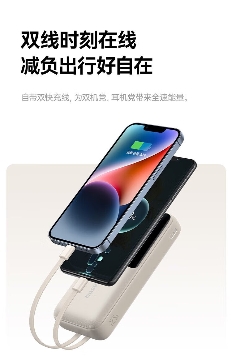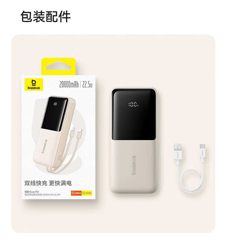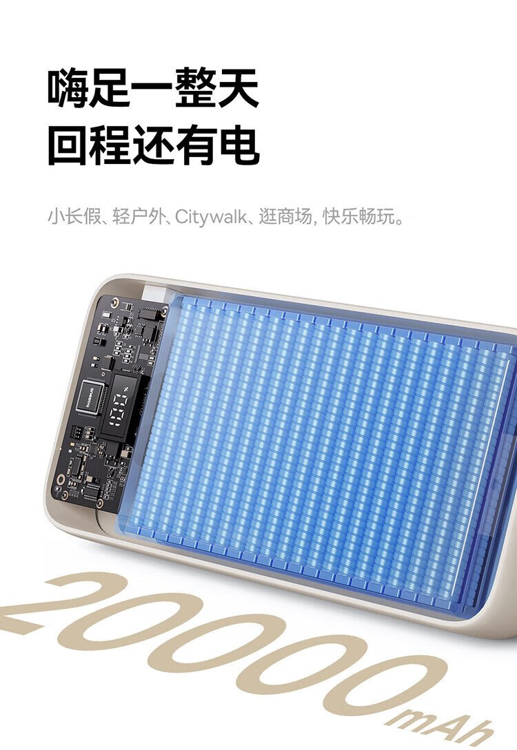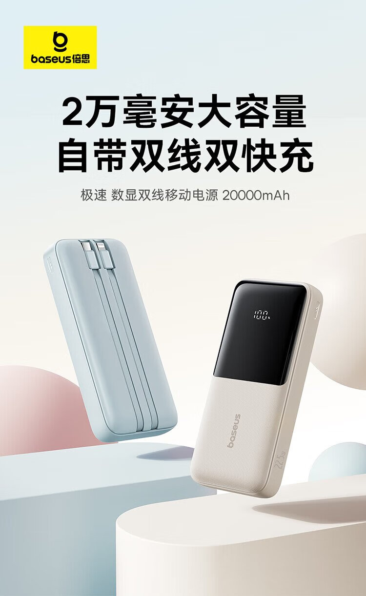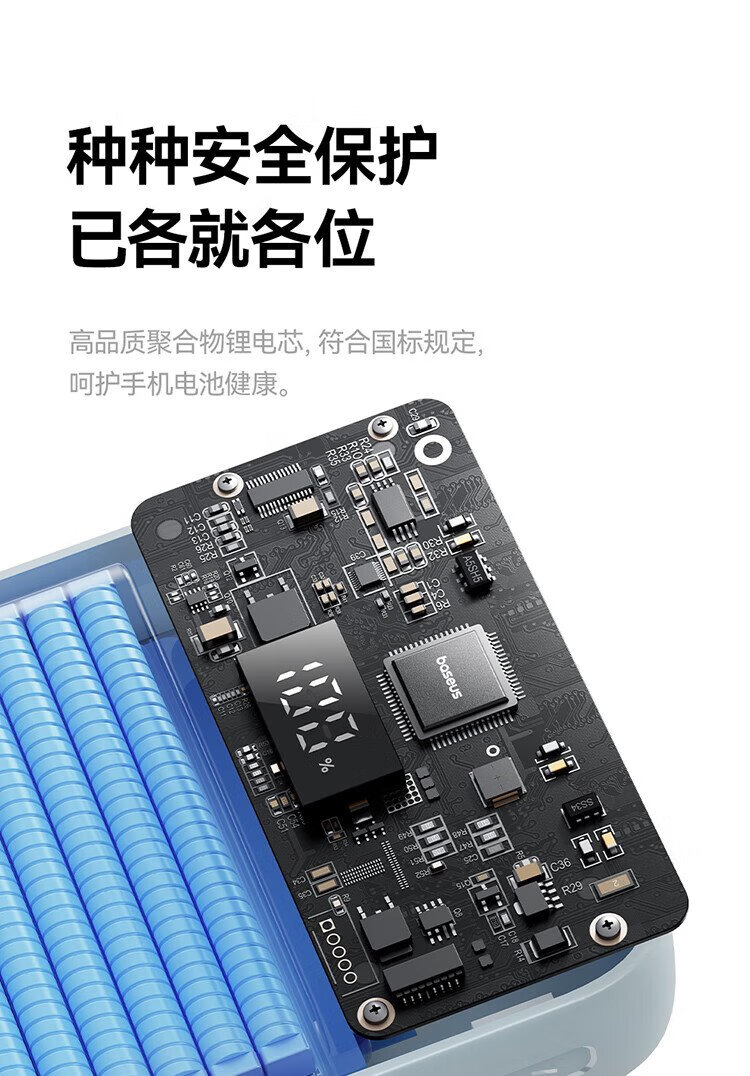 Baseus national standard 3C certification can be used on airplanes. Power bank 20000 mAh with built-in line 22.5W fast charging. Suitable for Apple, Xiaomi and Huawei mobile phone power bank. Blue