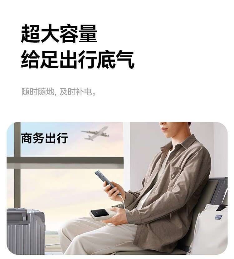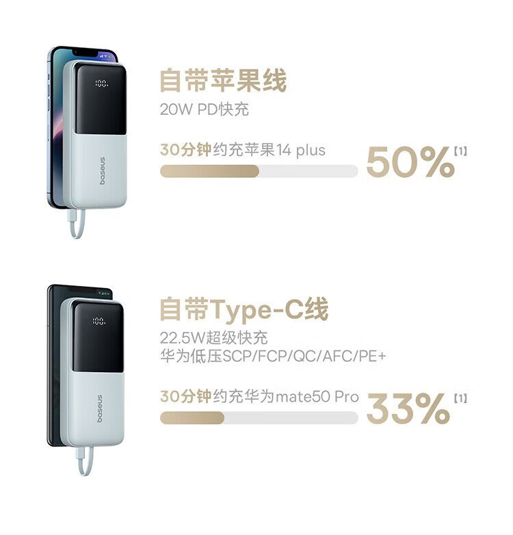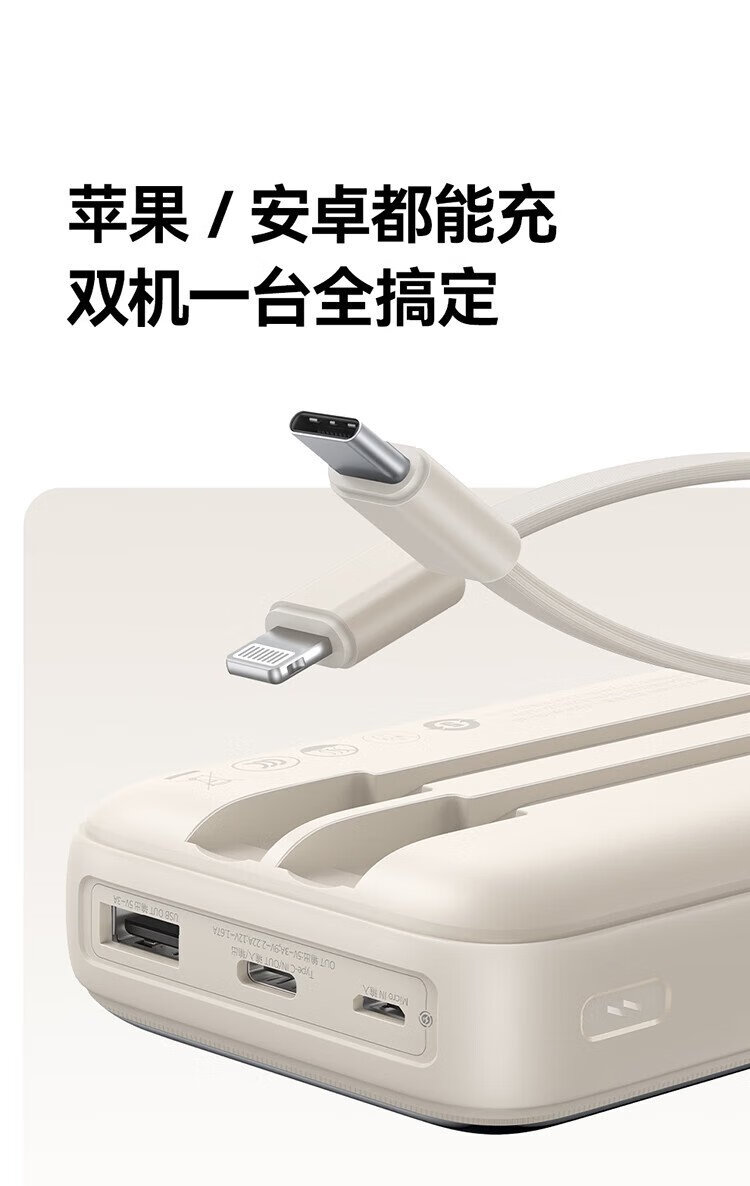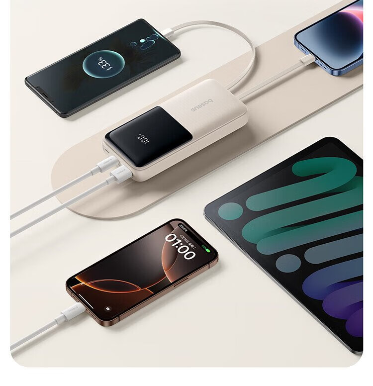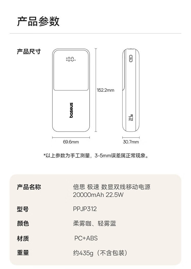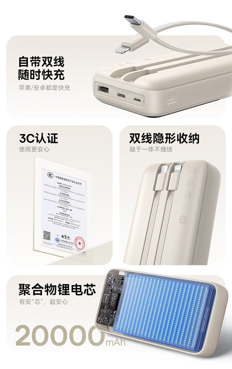 Baseus national standard 3C certification can be used on airplanes. Power bank 20000 mAh with built-in line 22.5W fast charging. Suitable for Apple, Xiaomi and Huawei mobile phone power bank. Blue
