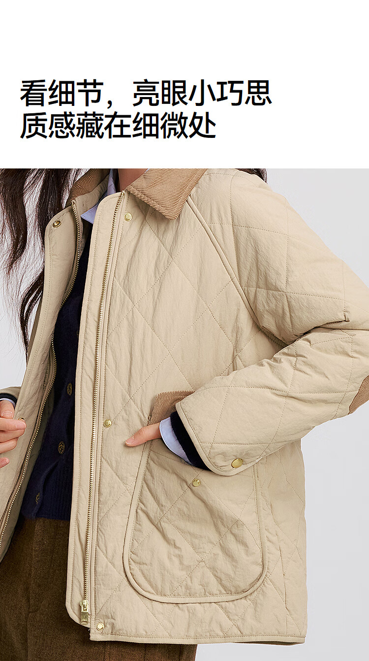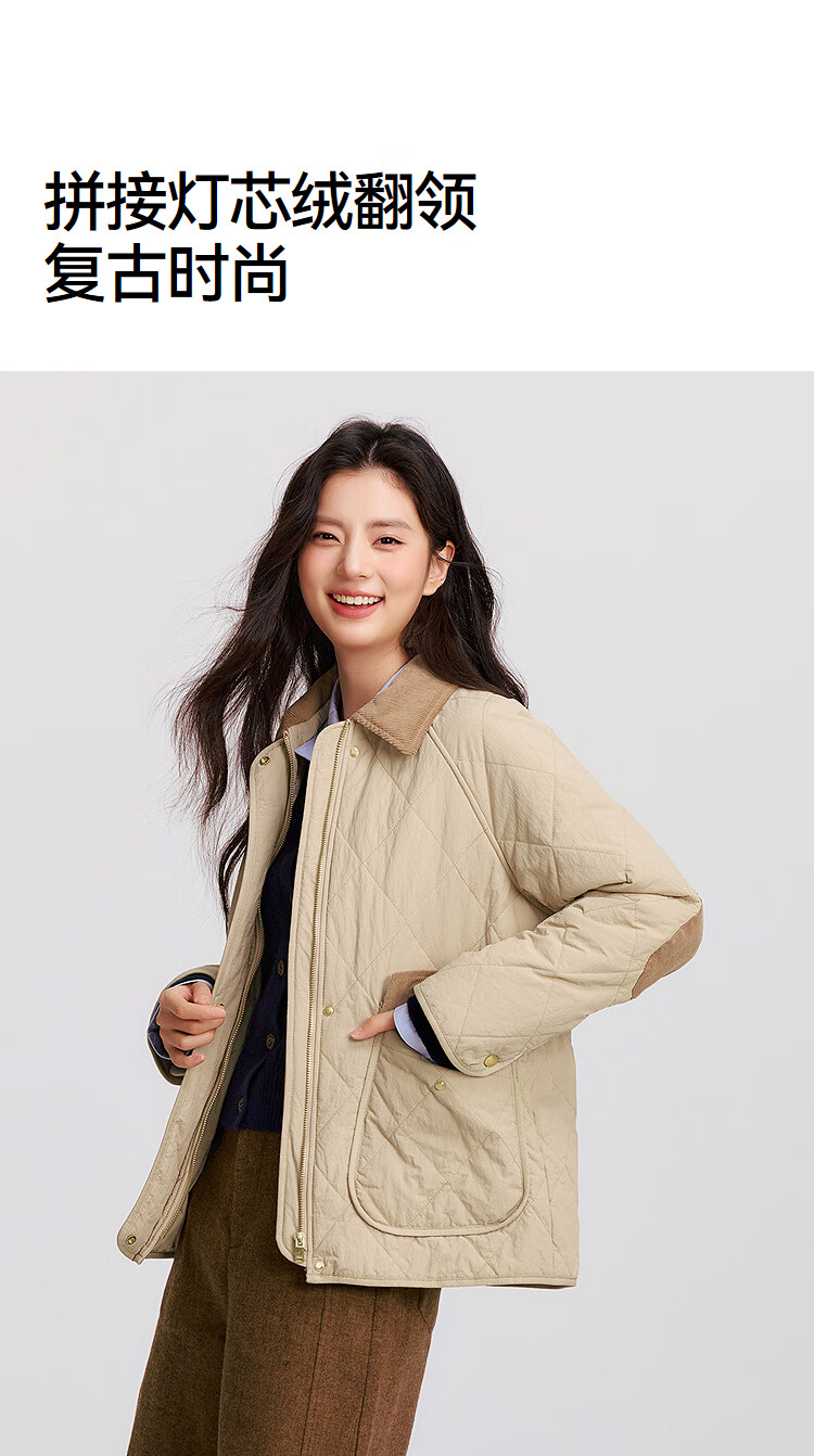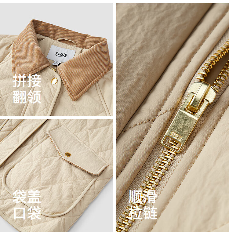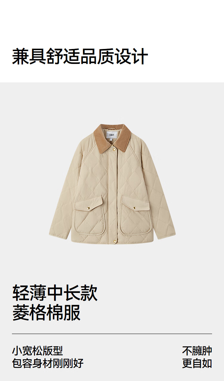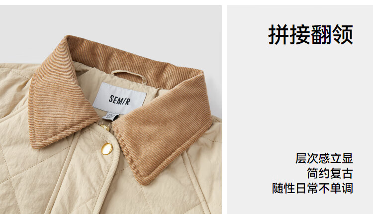 Semir women's winter mid-length lightweight loose spliced corduroy lapel raglan sleeves cotton coat 101724112007