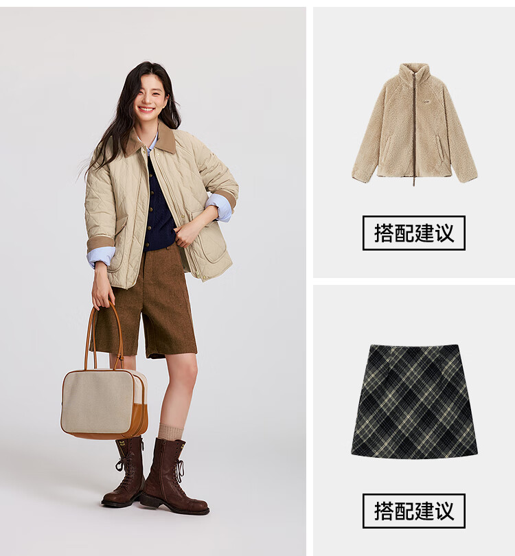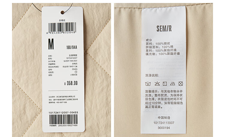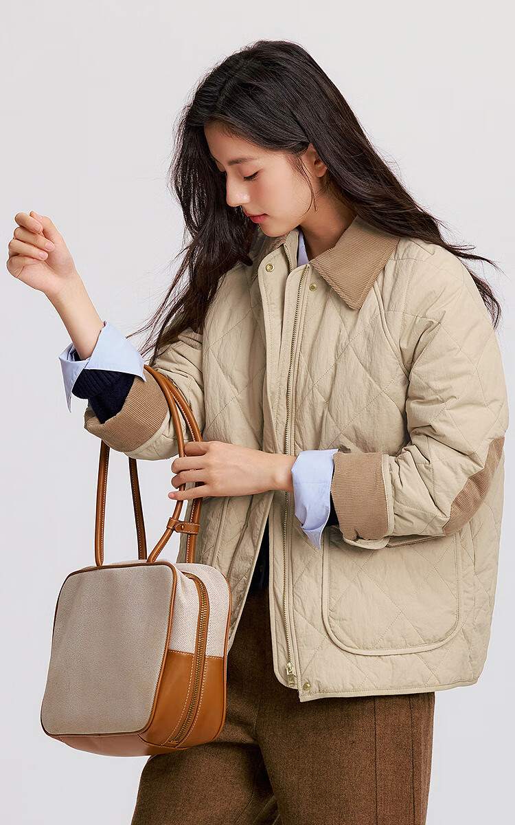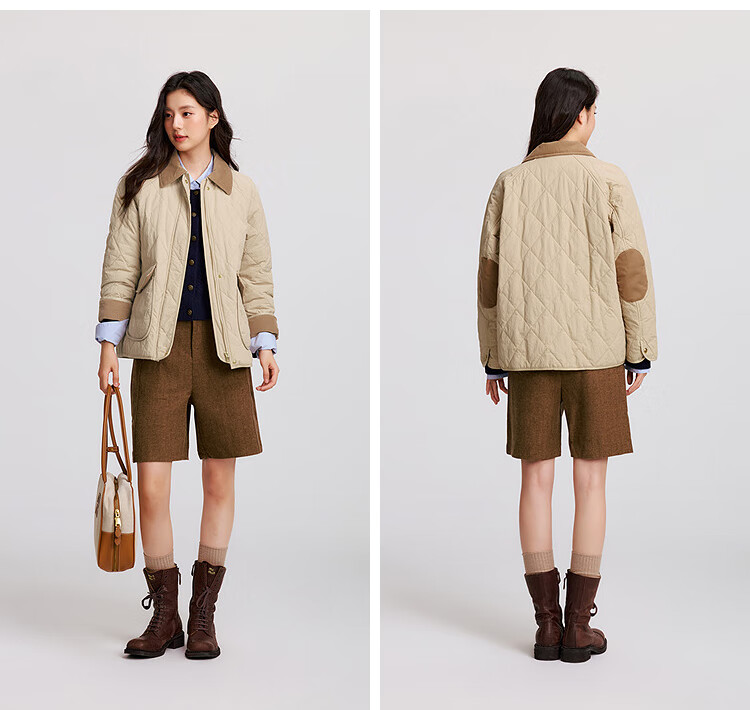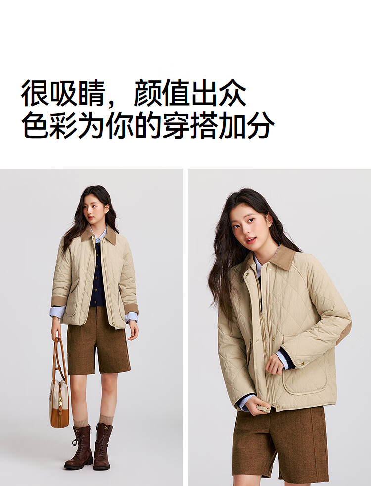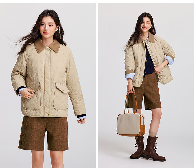Semir women's winter mid-length lightweight loose spliced corduroy lapel raglan sleeves cotton coat 101724112007