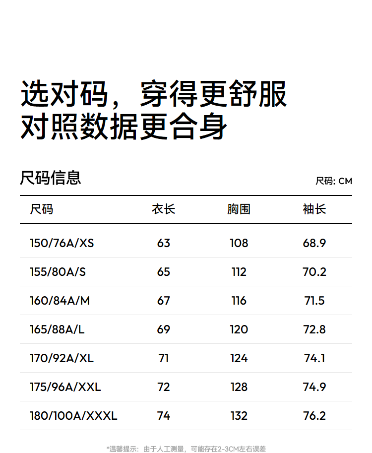 China (cm) 160-165/84-86 165-170 / 88-90 167-172 / 92-96 168-173 / 98-102 170-176 / 106-110