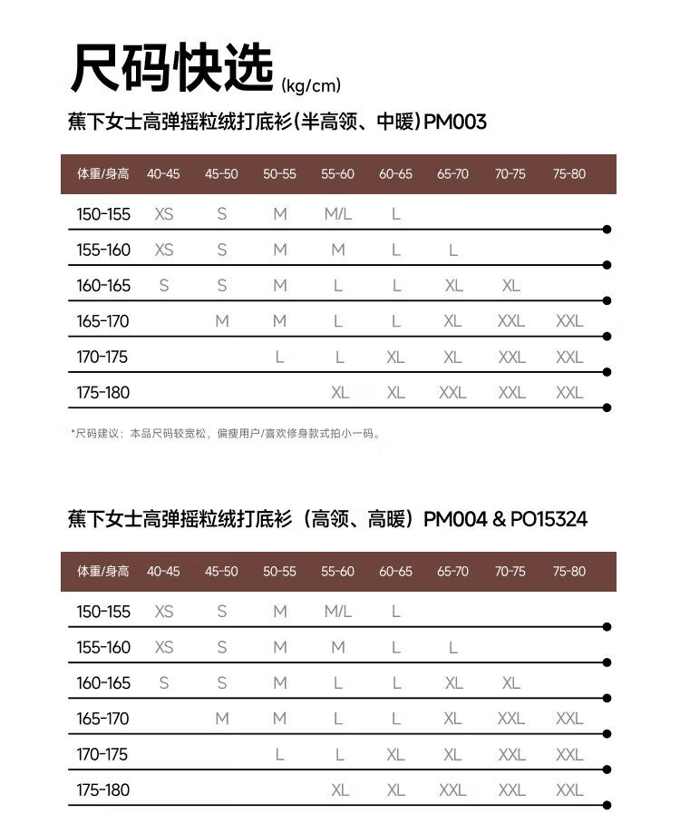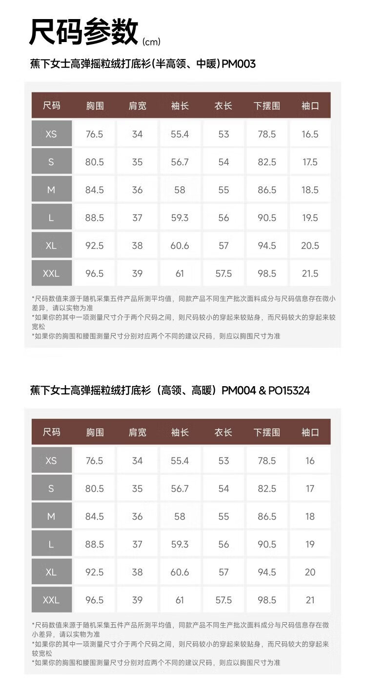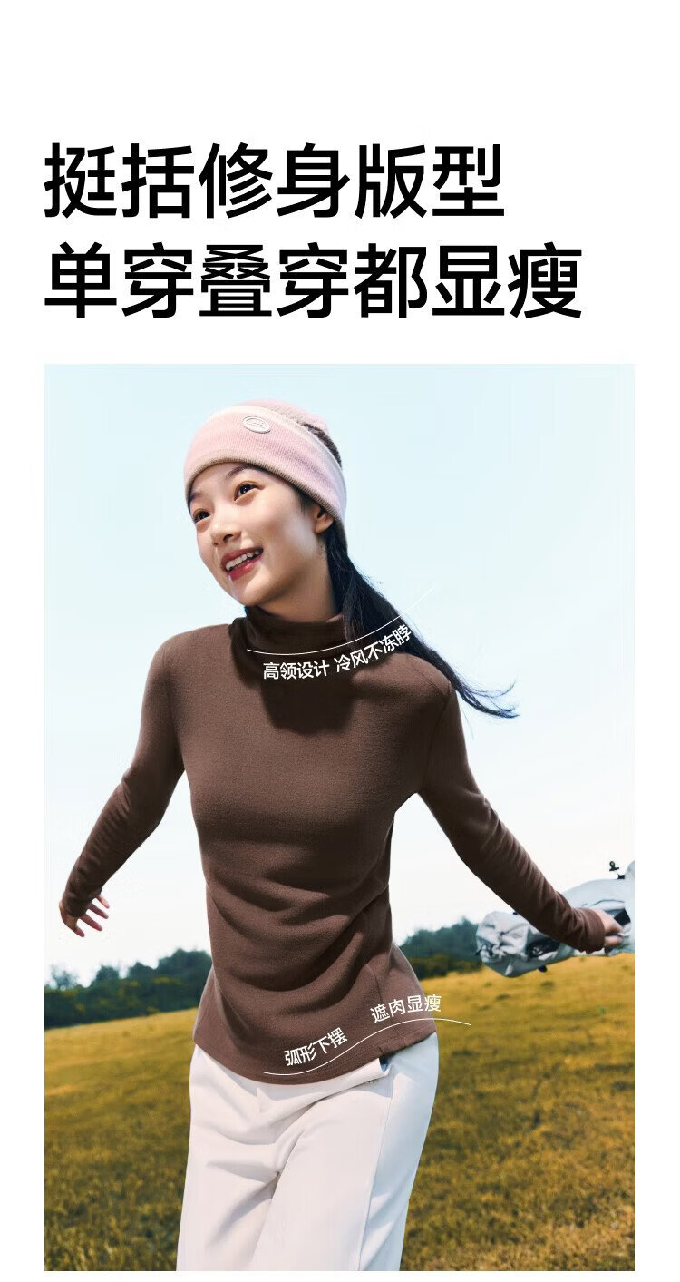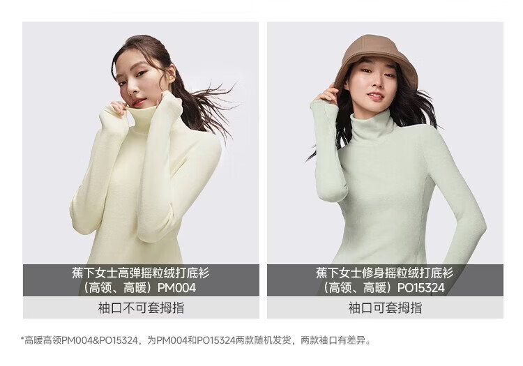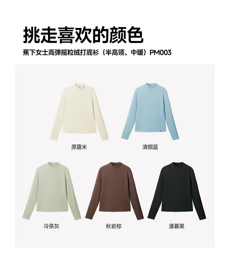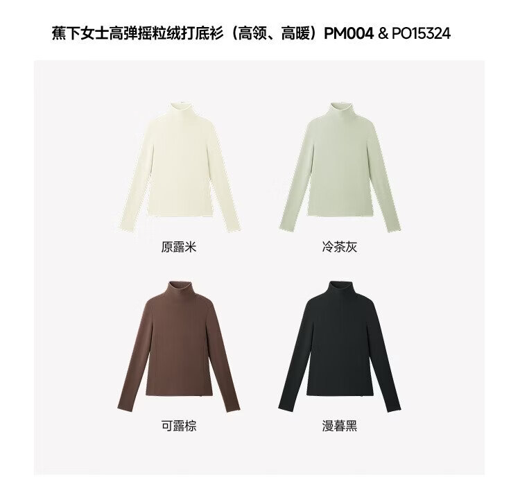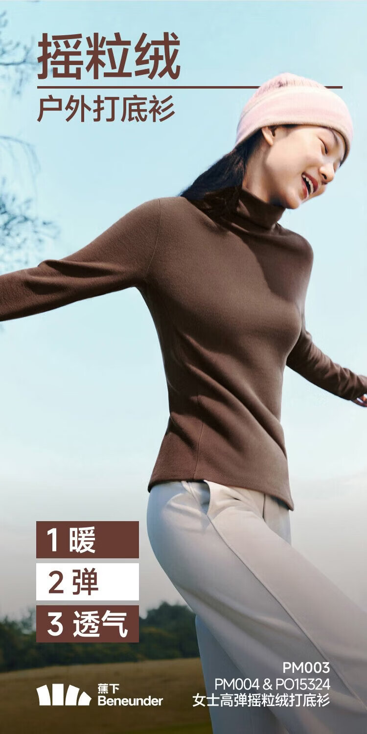 Beneunder (beneunder) women's polar fleece bottoming shirt, slim and elastic, slim and warm, versatile in autumn and winter PM004&PO15324