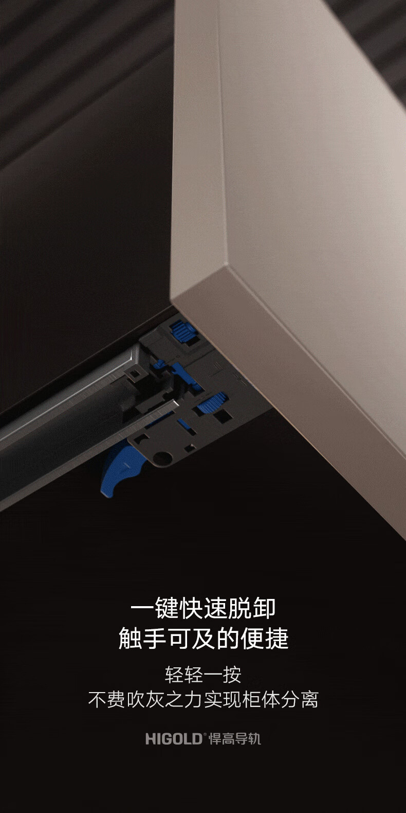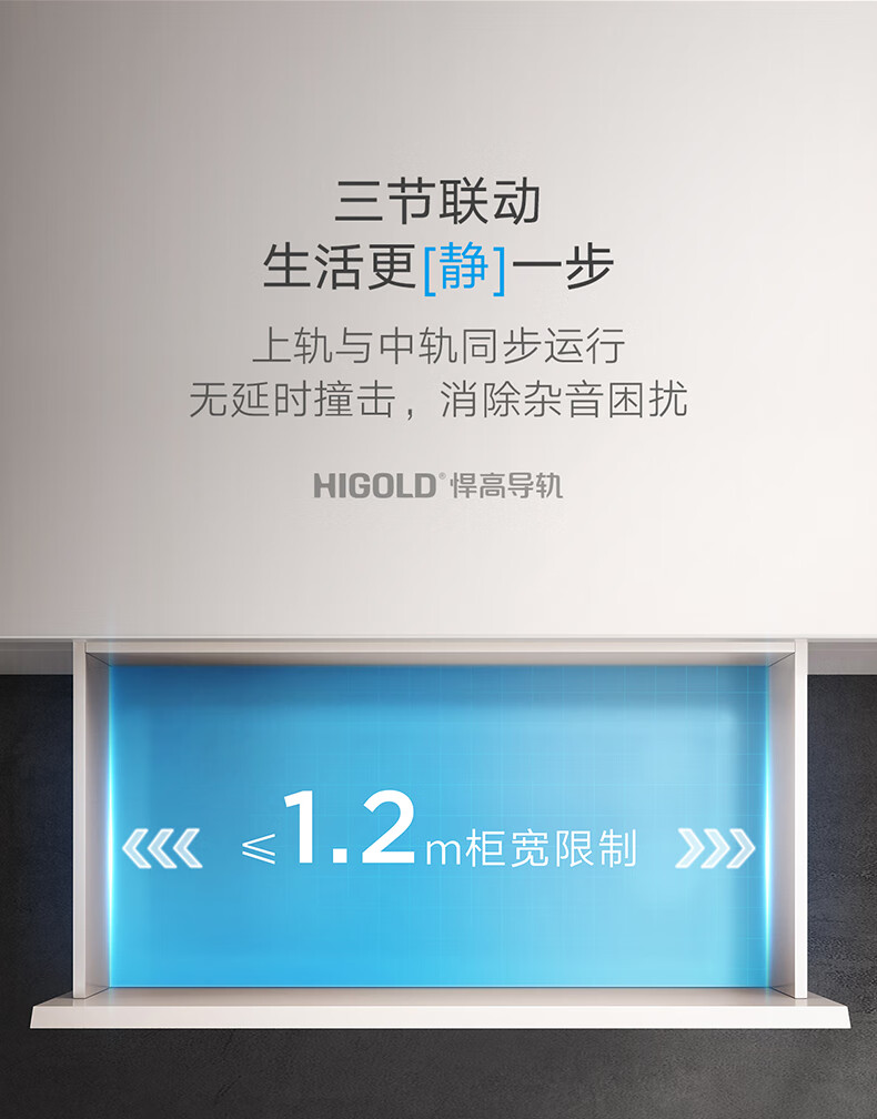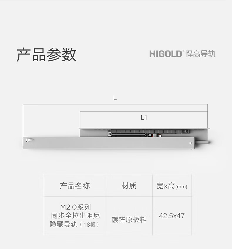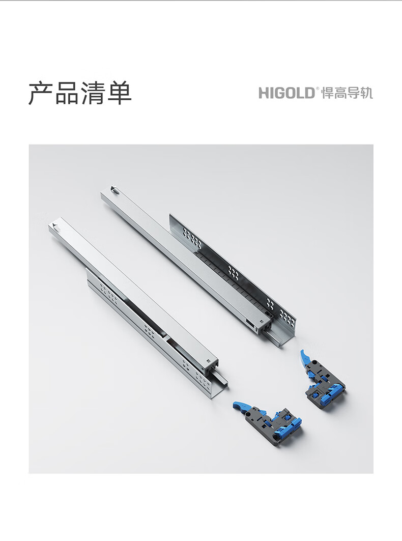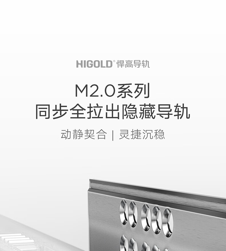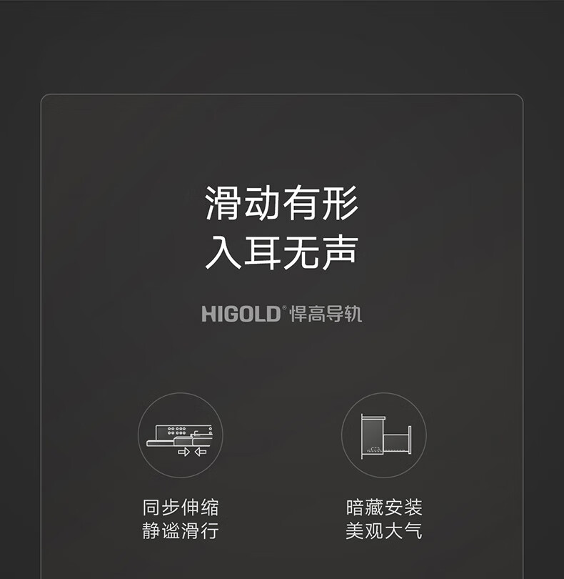 HIGOLD drawer slide synchronous full pull-out damping hidden bottom support three-section rail 18 inches (450mm) hidden three-section rail