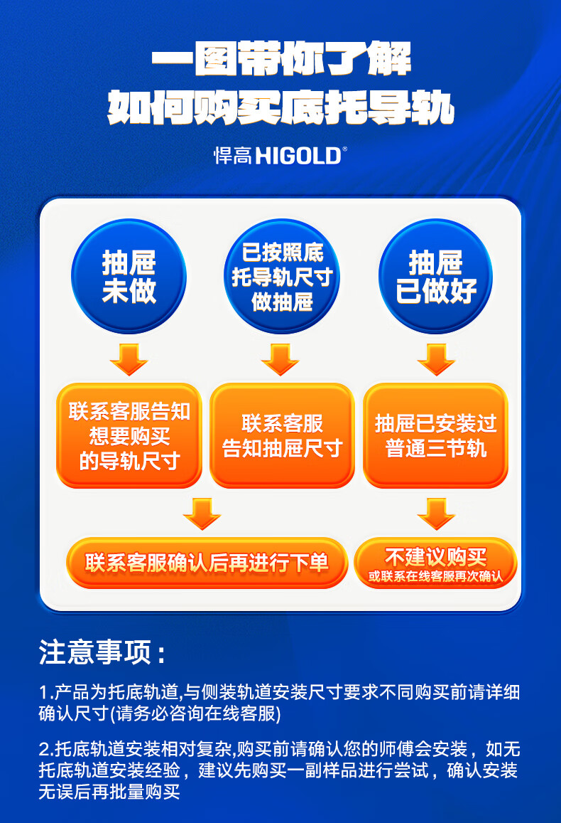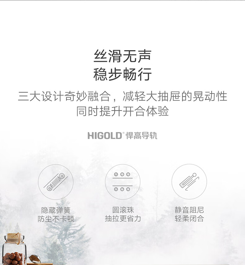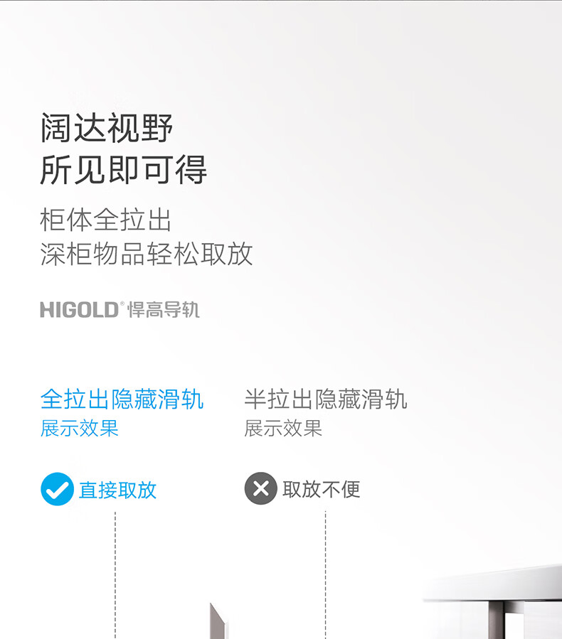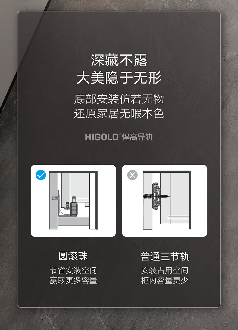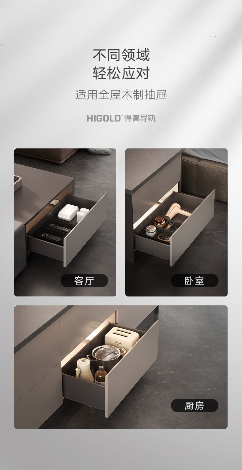 HIGOLD drawer slide synchronous full pull-out damping hidden bottom support three-section rail 18 inches (450mm) hidden three-section rail