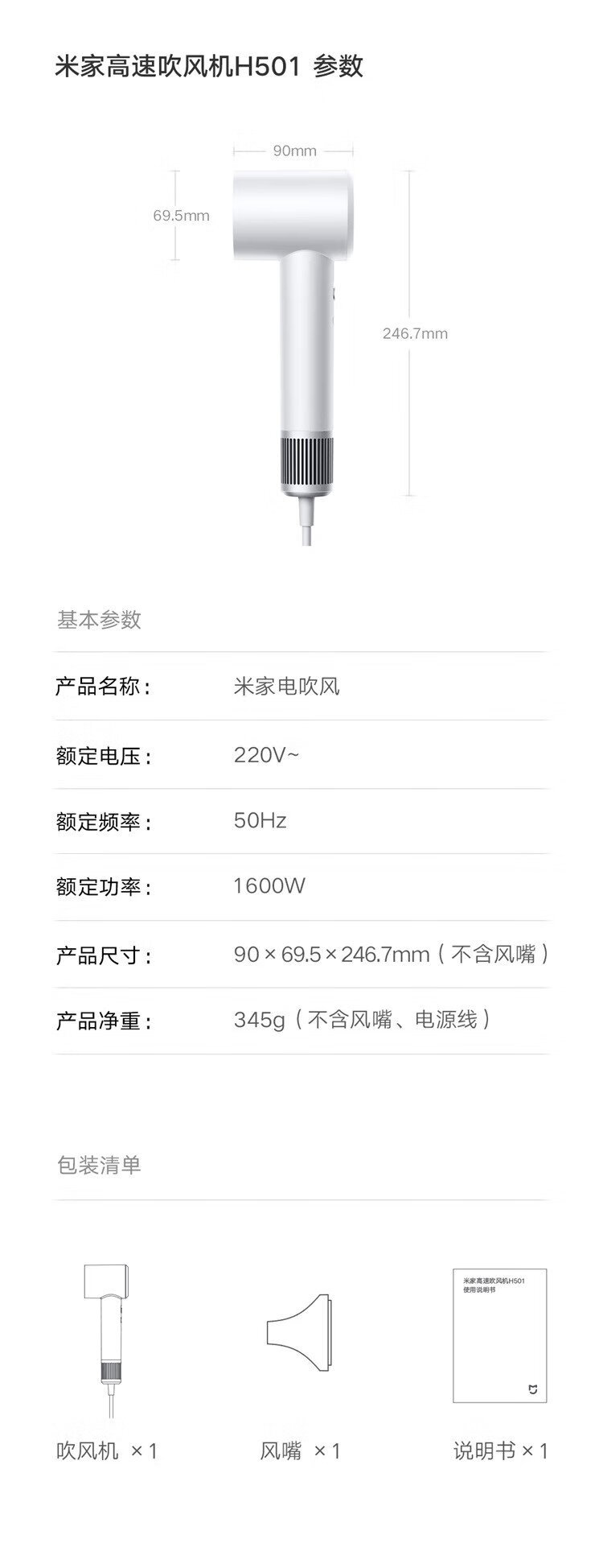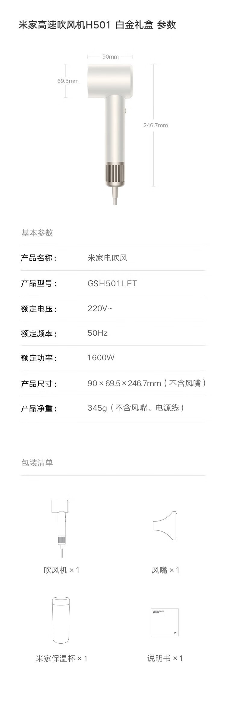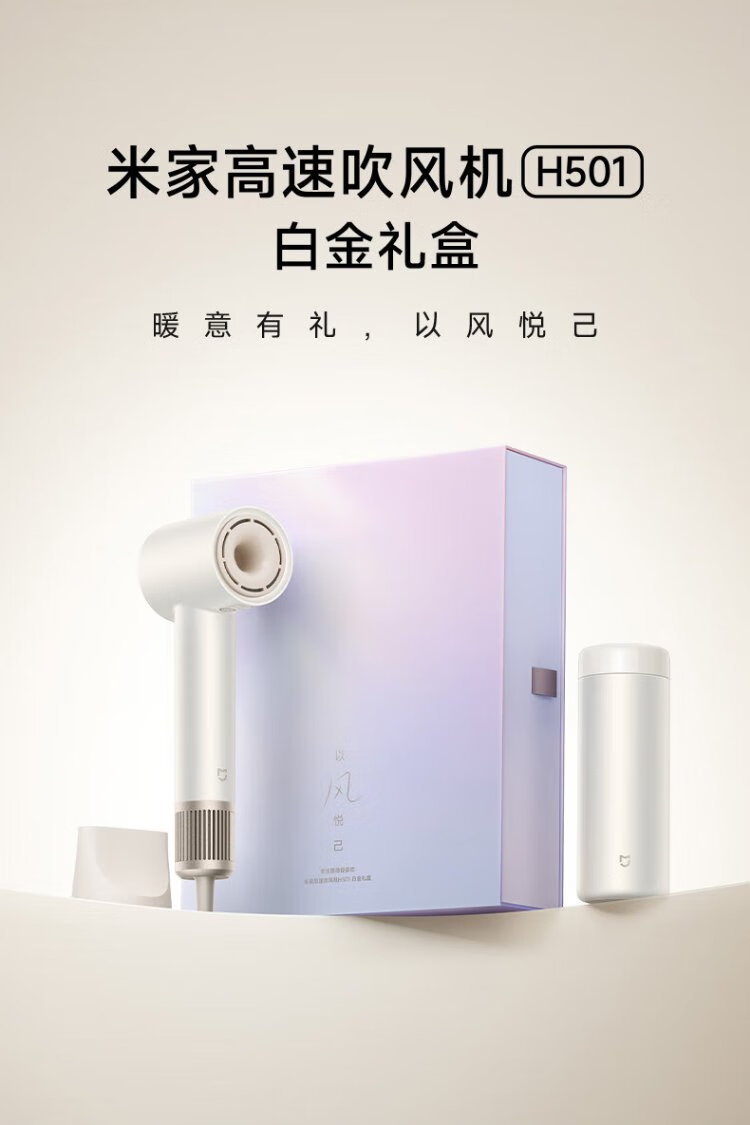 Mijia High Speed Hair Dryer H501 Platinum Gift Box Gentle Little Hurricane Xiaomi Negative Ion Hair Dryer High Power Quick Drying Recommended Birthday Gift for Girlfriend Warm Mountain White