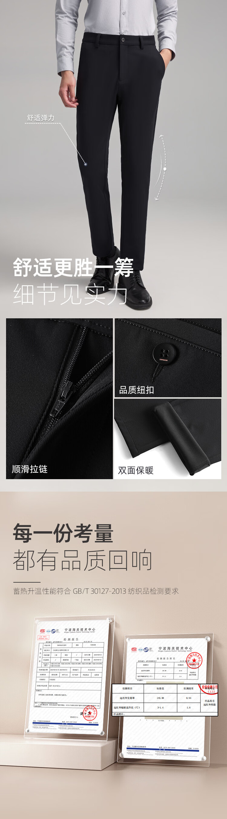 YOUNGOR 25 new style heat storage and warmth men's elastic easy-care casual TR trousers, navy L (175/84A)