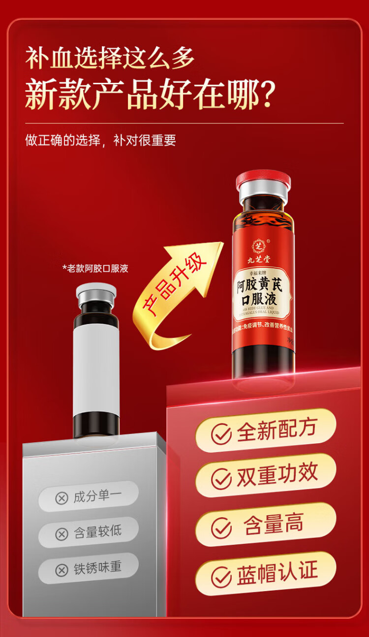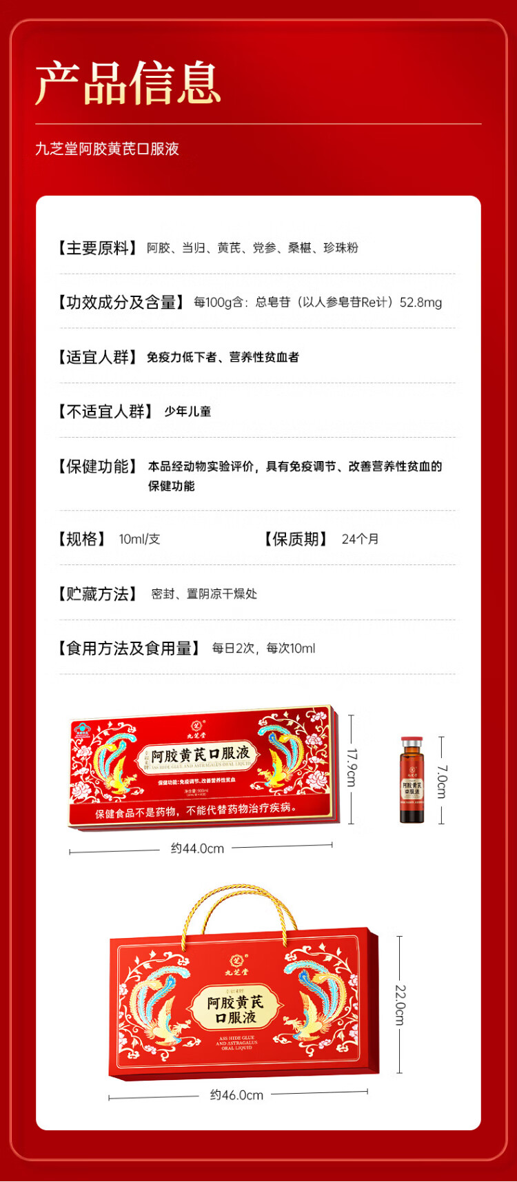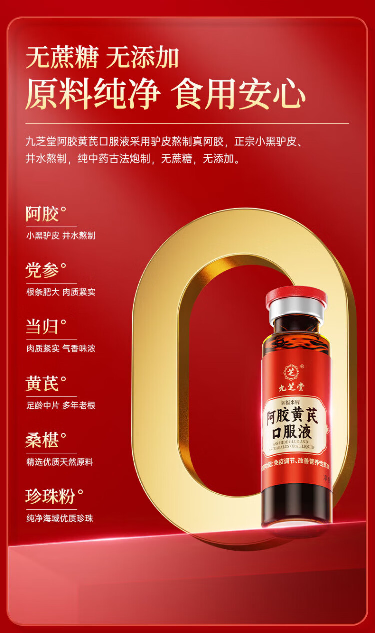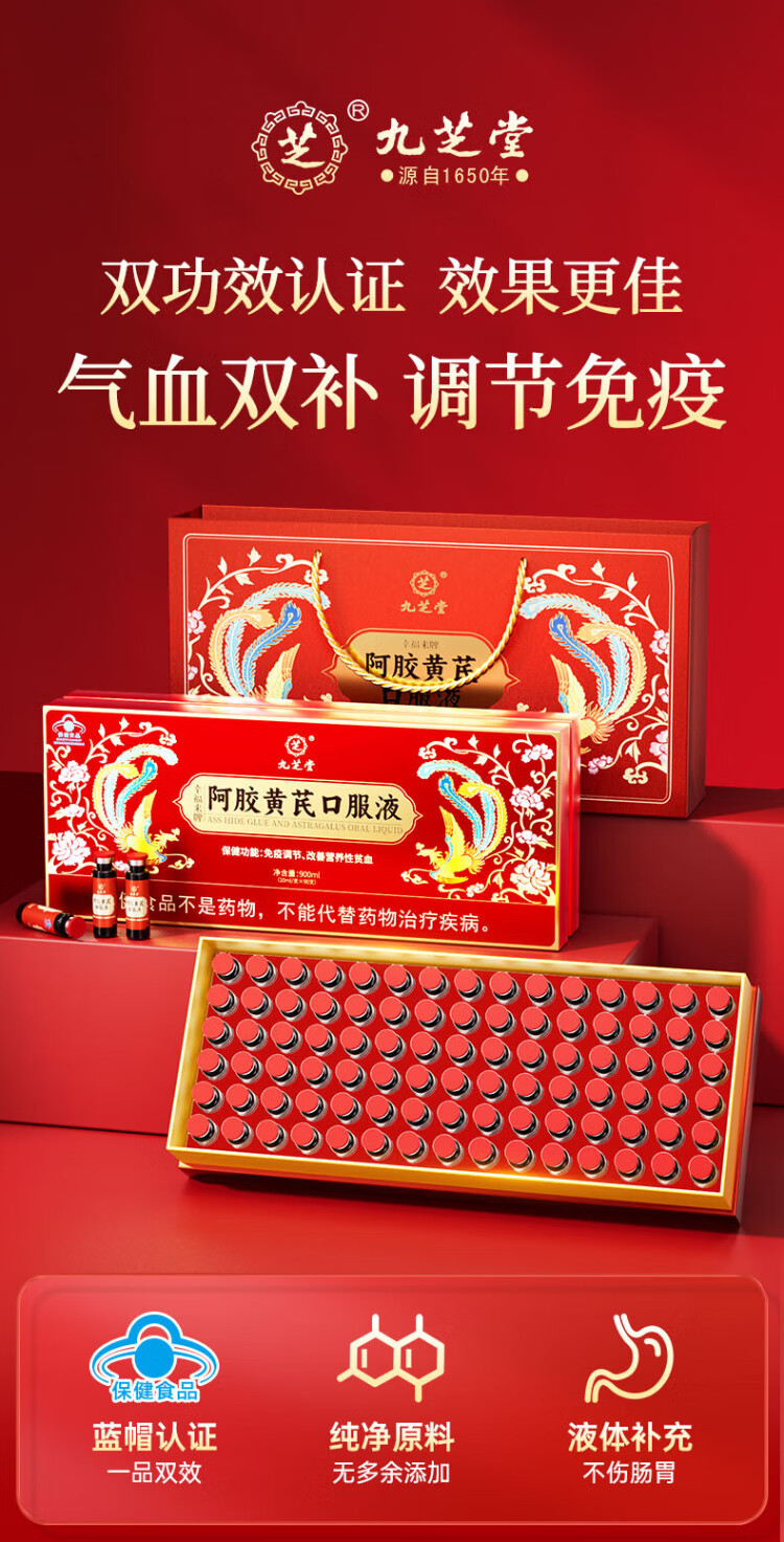Jiuzhitang donkey-hide gelatin and astragalus oral liquid 90 pieces/box to improve anemia donkey-hide gelatin women's qi and blood gift gift box nutritional supplements