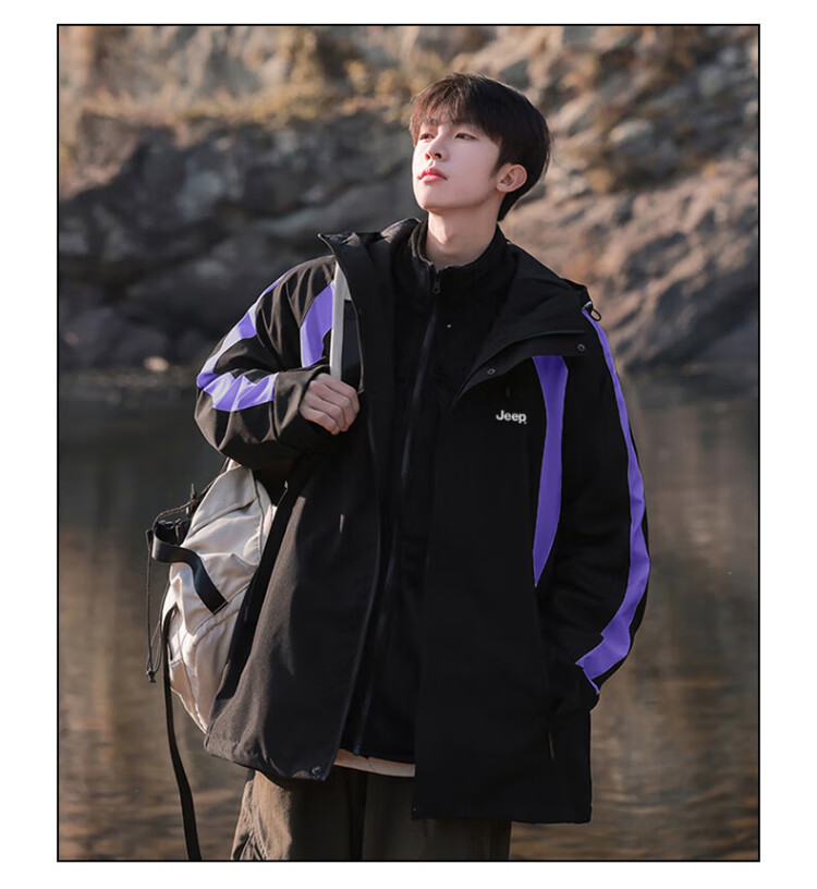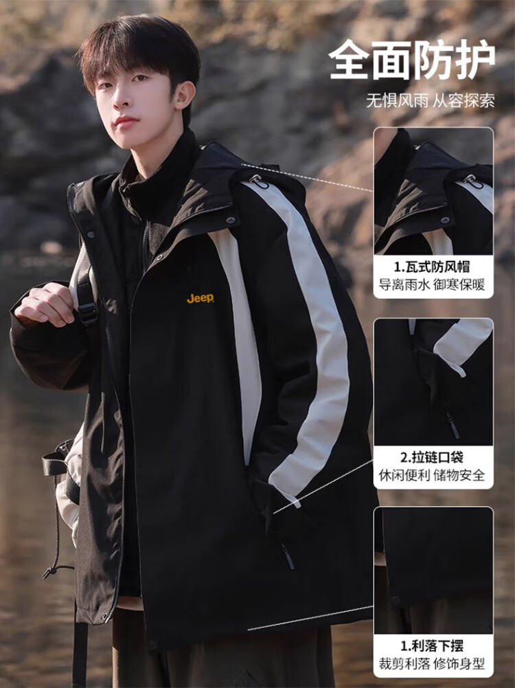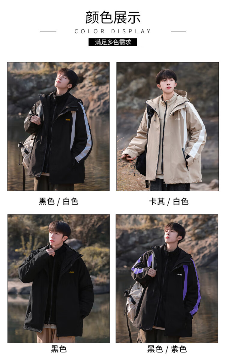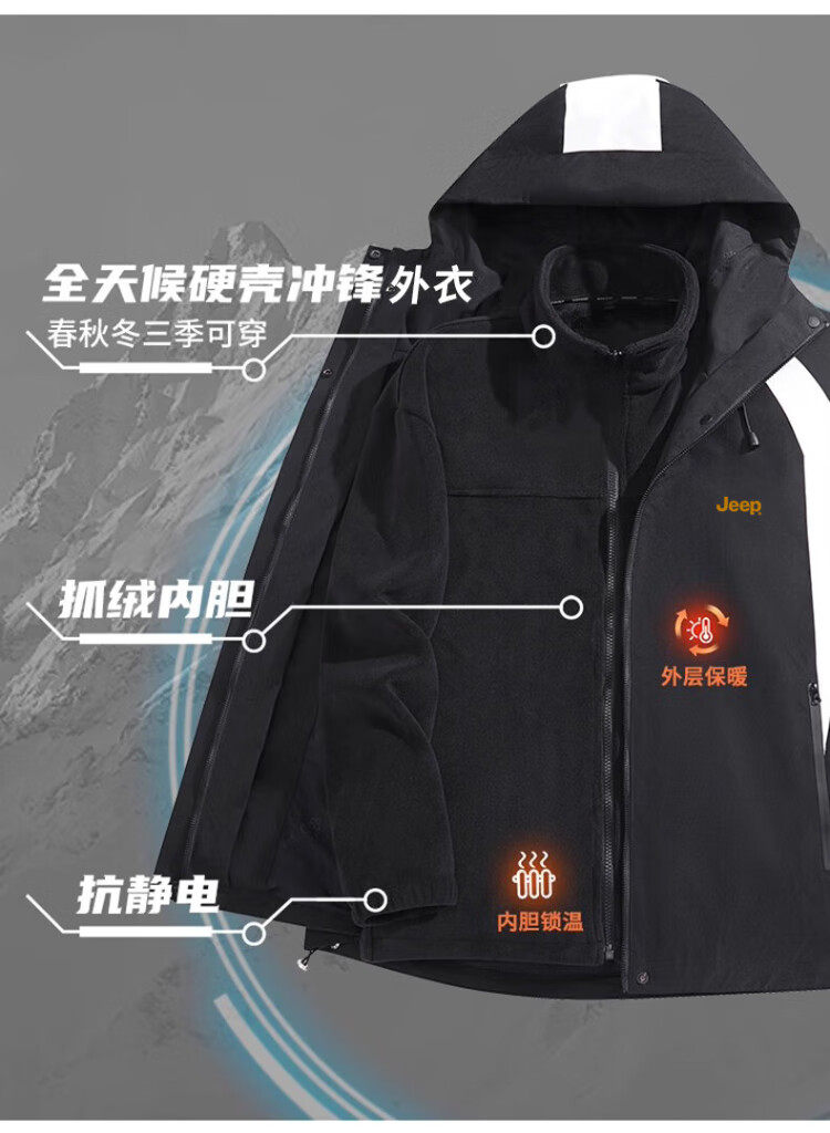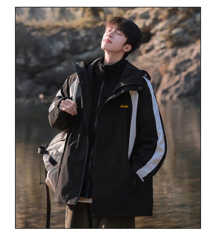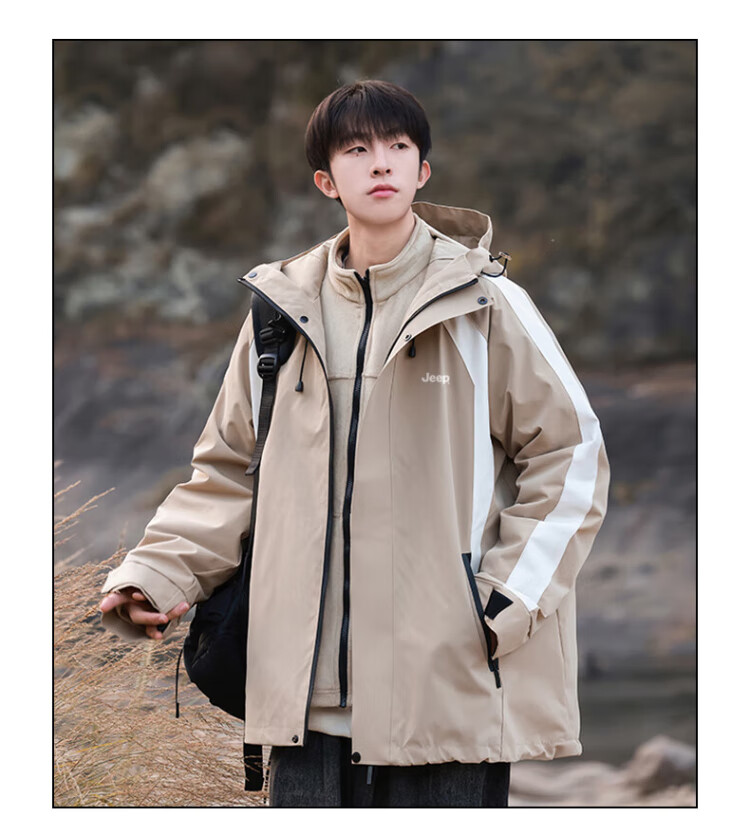 Jeep (JEEP) assault jacket men's outdoor three-in-one two-piece set windproof mountaineering jacket warm tops trendy casual jacket for men
