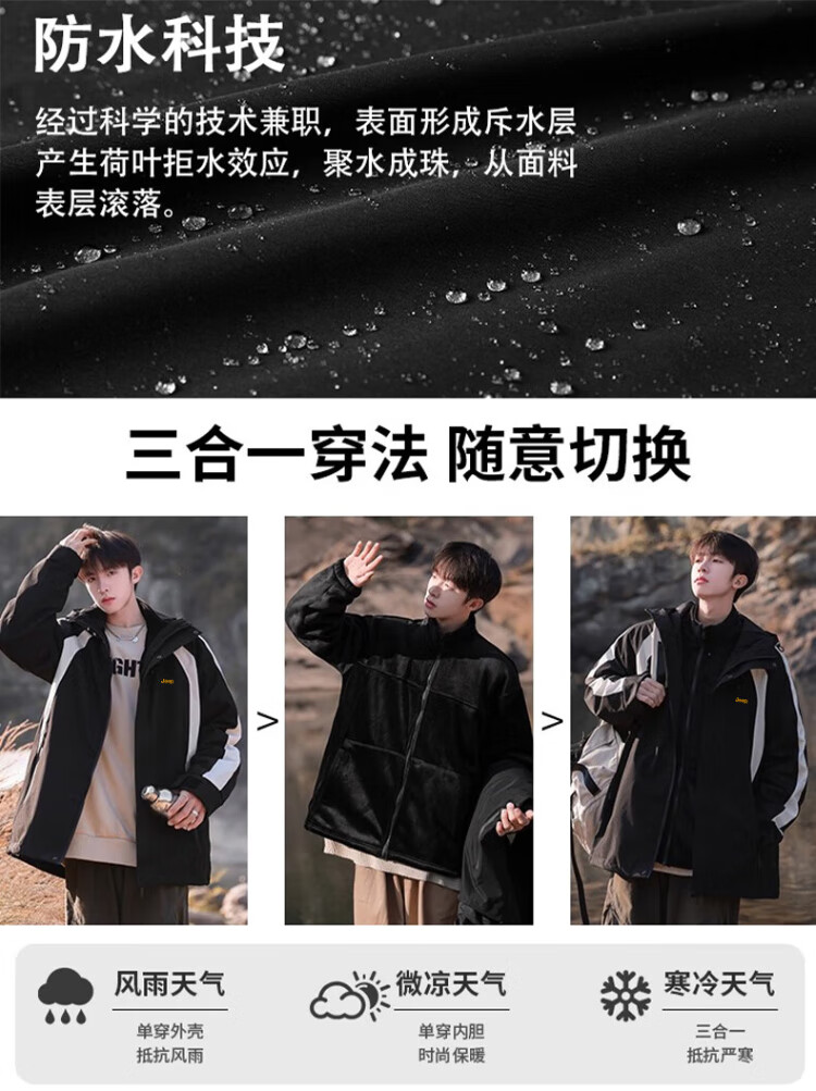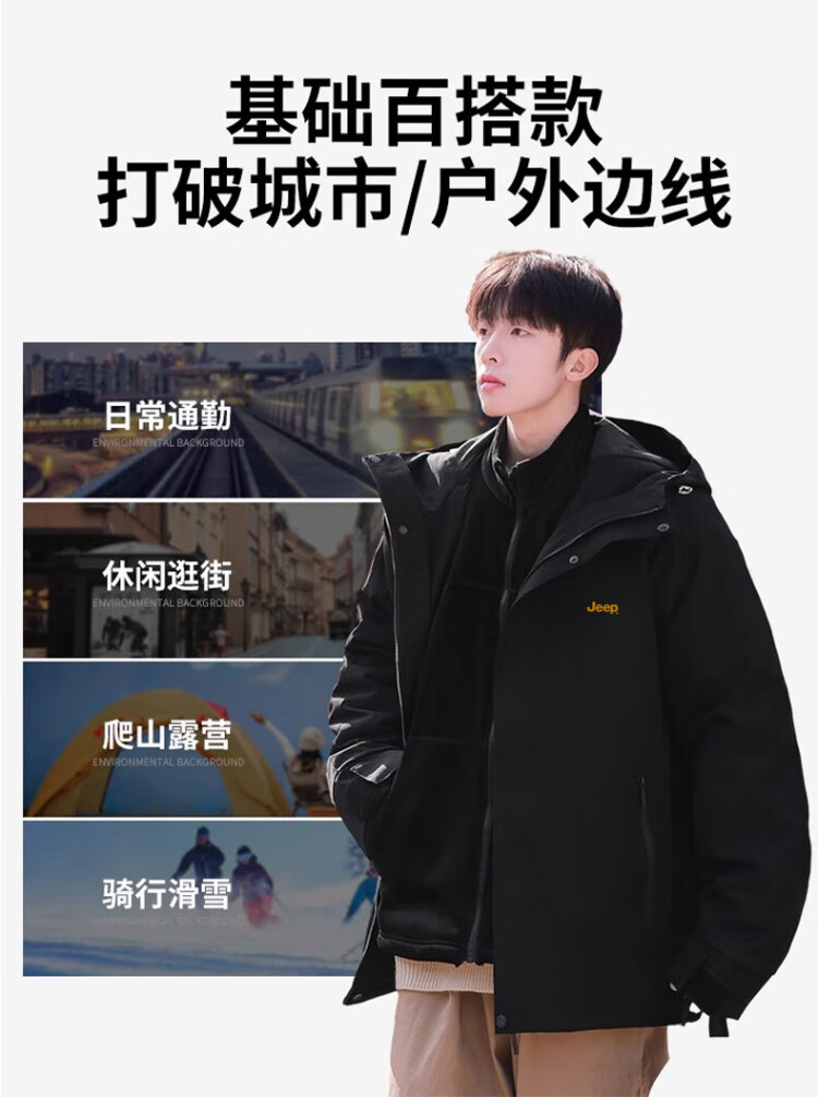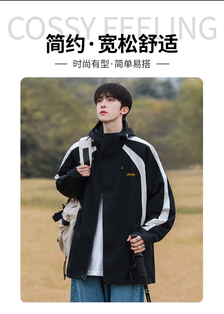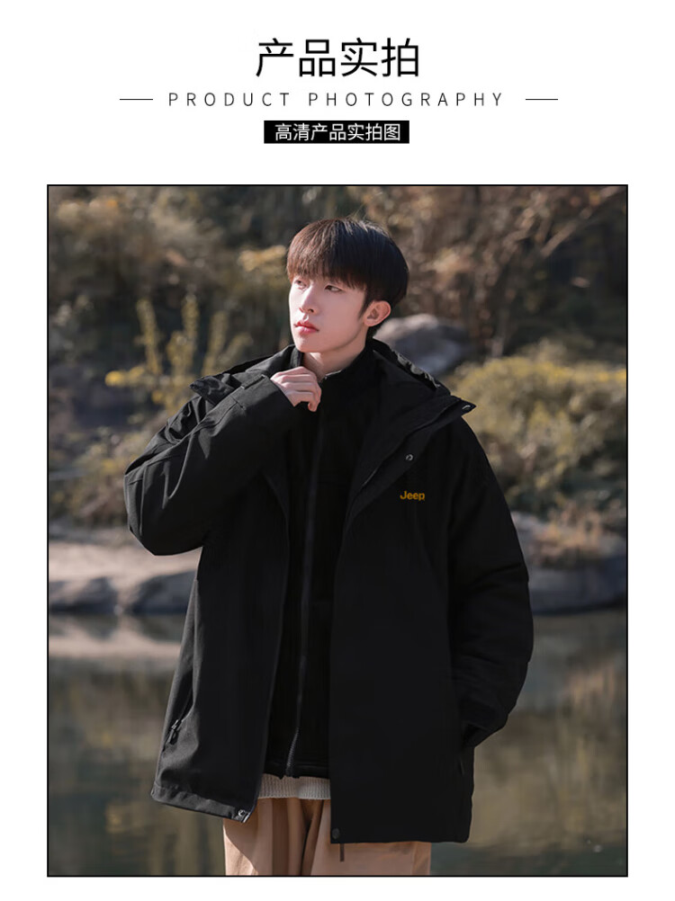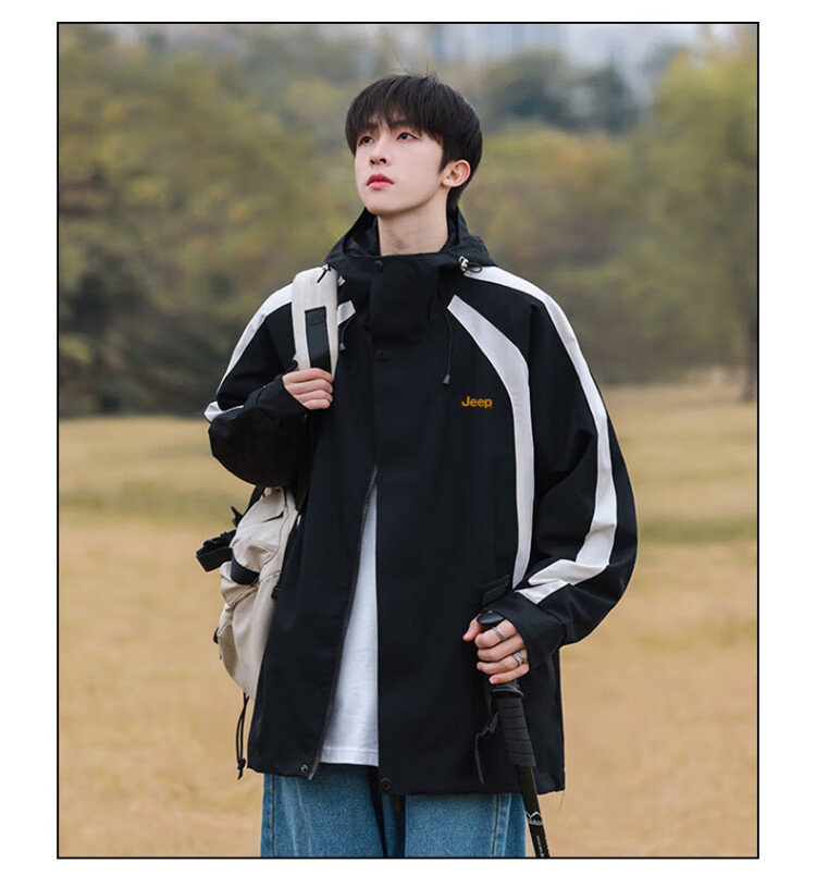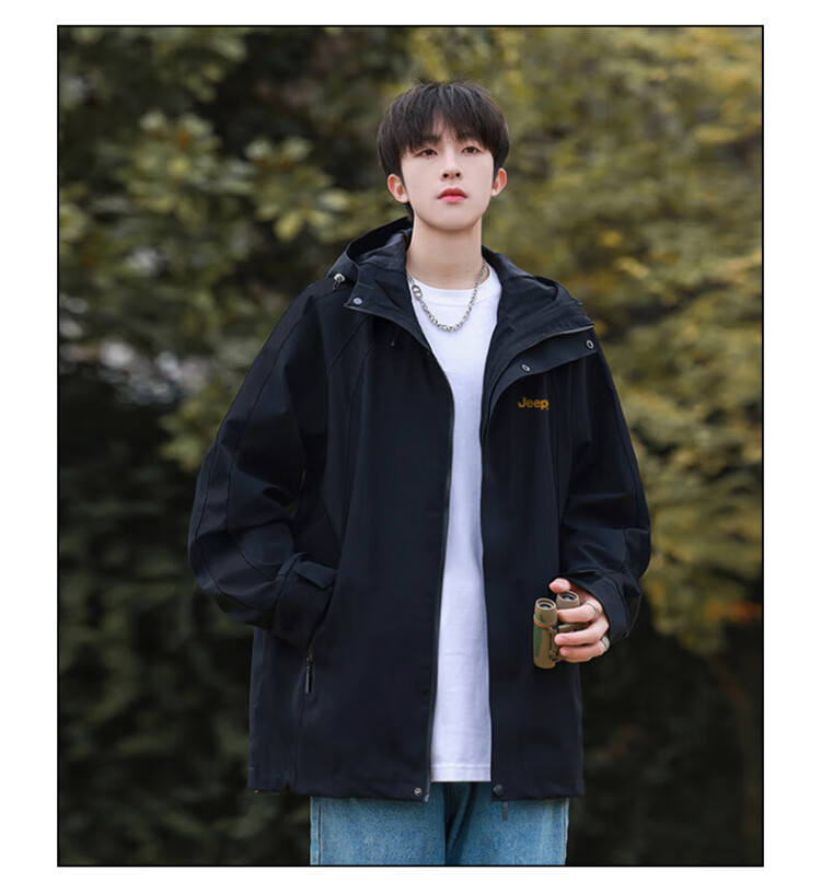 Jeep (JEEP) assault jacket men's outdoor three-in-one two-piece set windproof mountaineering jacket warm tops trendy casual jacket for men