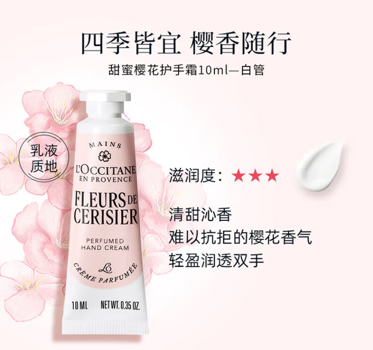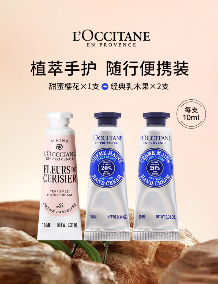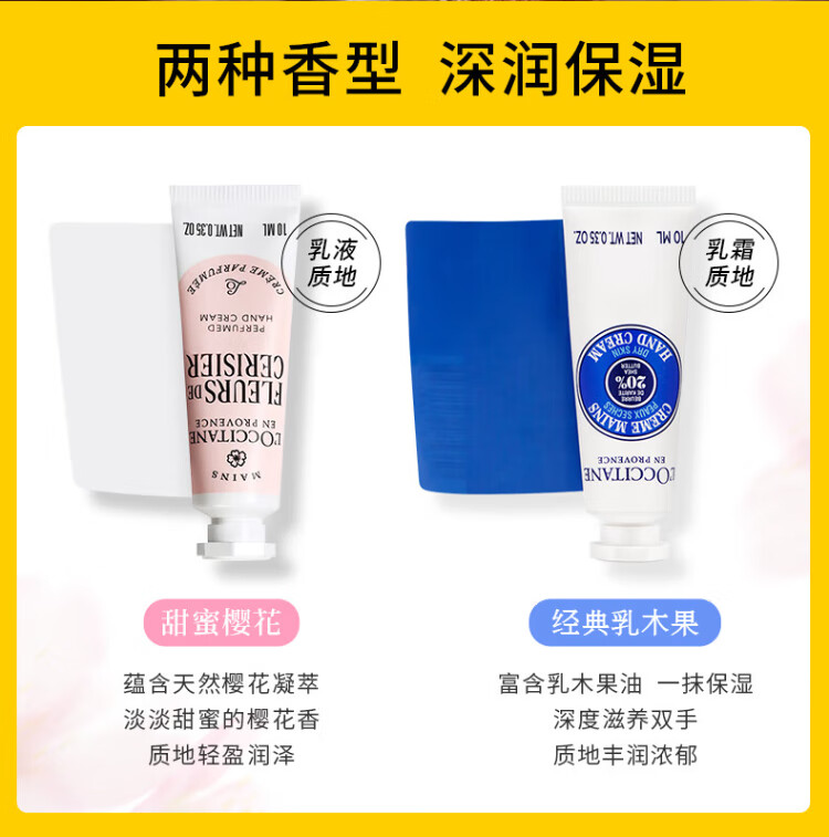 L'Occitane Hand Cream 10ml*3 (Shea Butter*2+Sakura*1) Moisturizing Holiday Gift for Your Girlfriend, New and Old Versions Randomly Sent