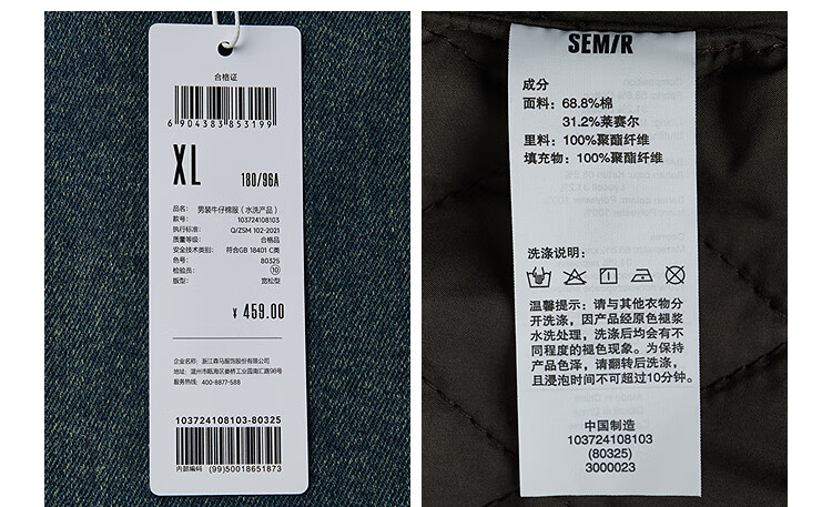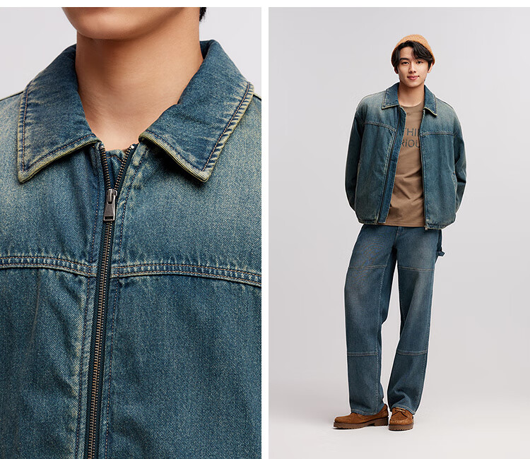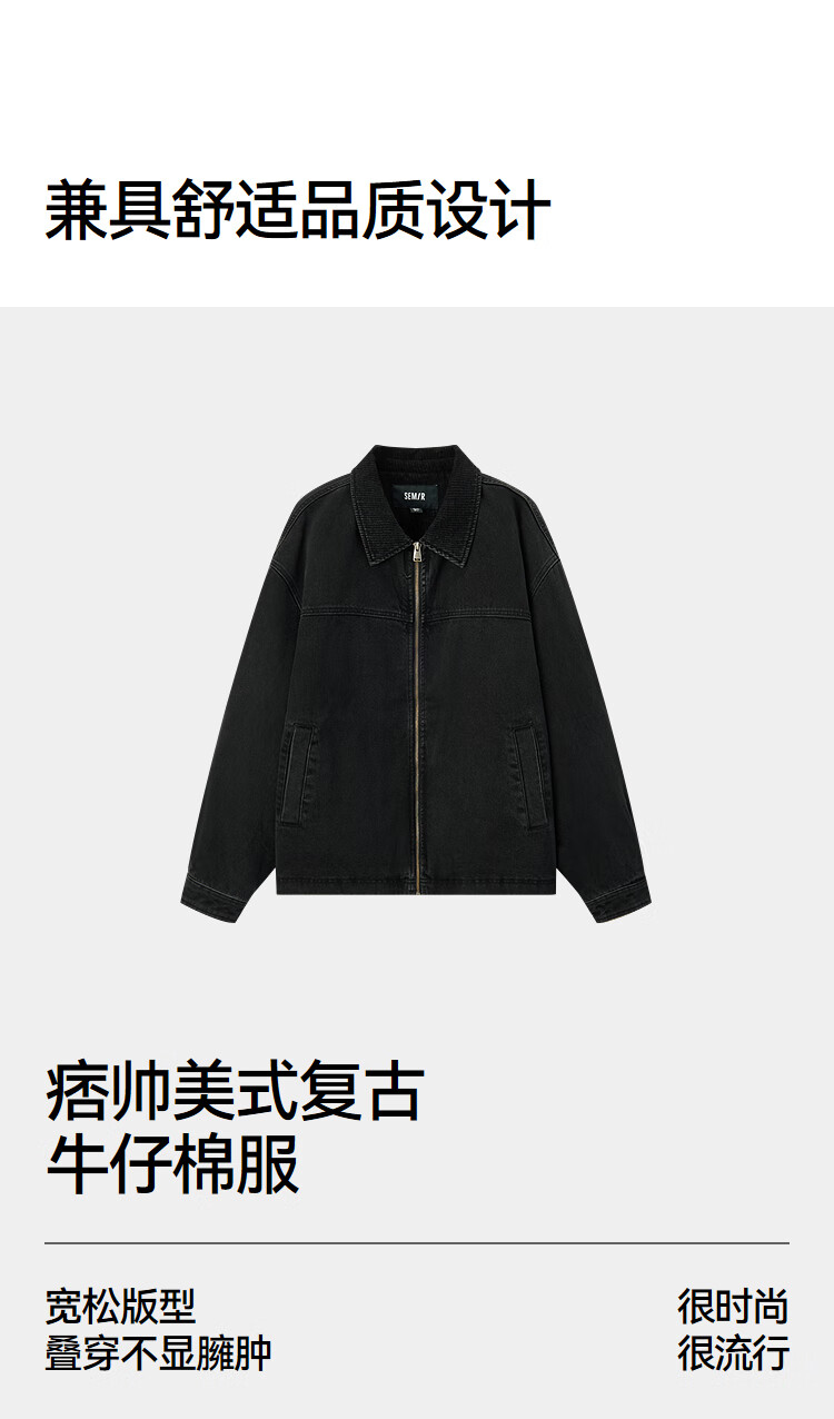 Semir jacket men's winter loose American retro washed denim jacket fashionable cotton zipper cardigan 103724108103