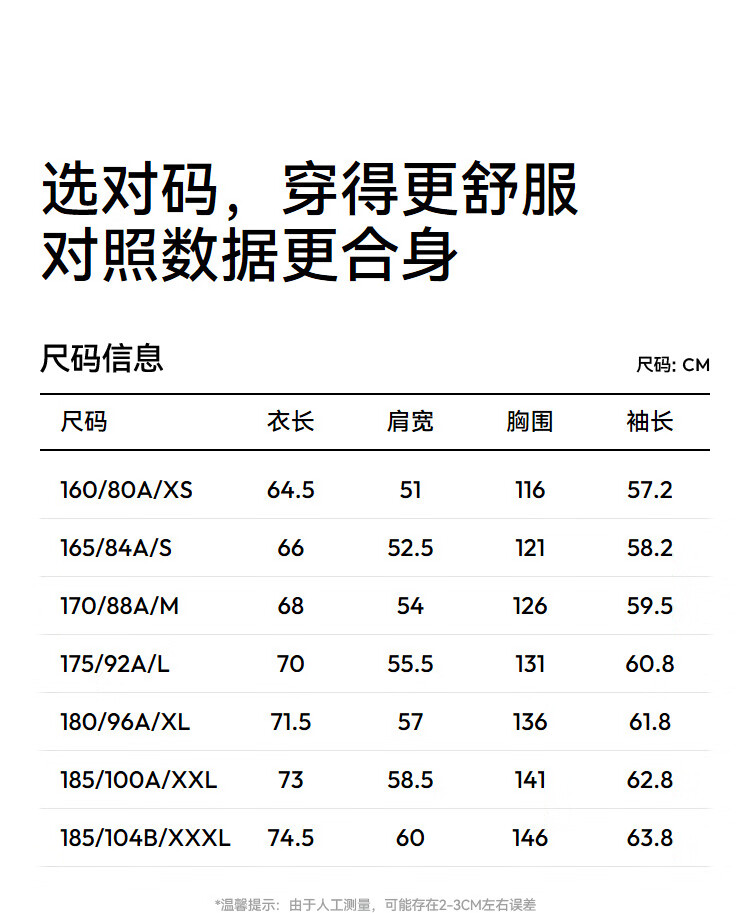 China (cm) 160-165/84-86 165-170 / 88-90 167-172 / 92-96 168-173 / 98-102 170-176 / 106-110