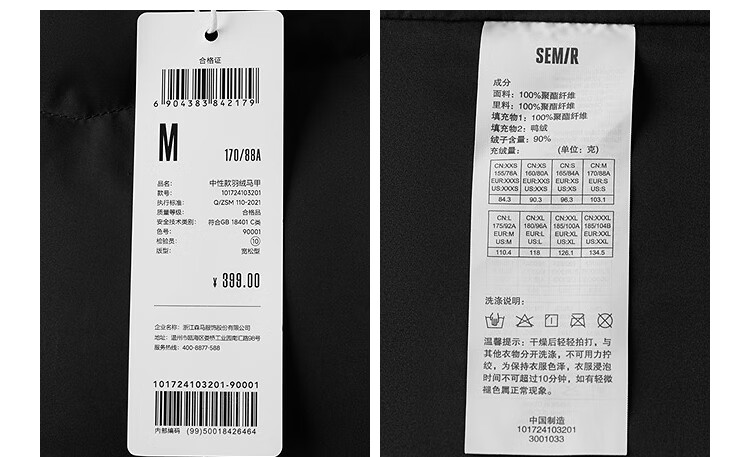 Semir down vest men's winter 90 down waterproof jacket unisex couple loose stand-up collar top 101724103201