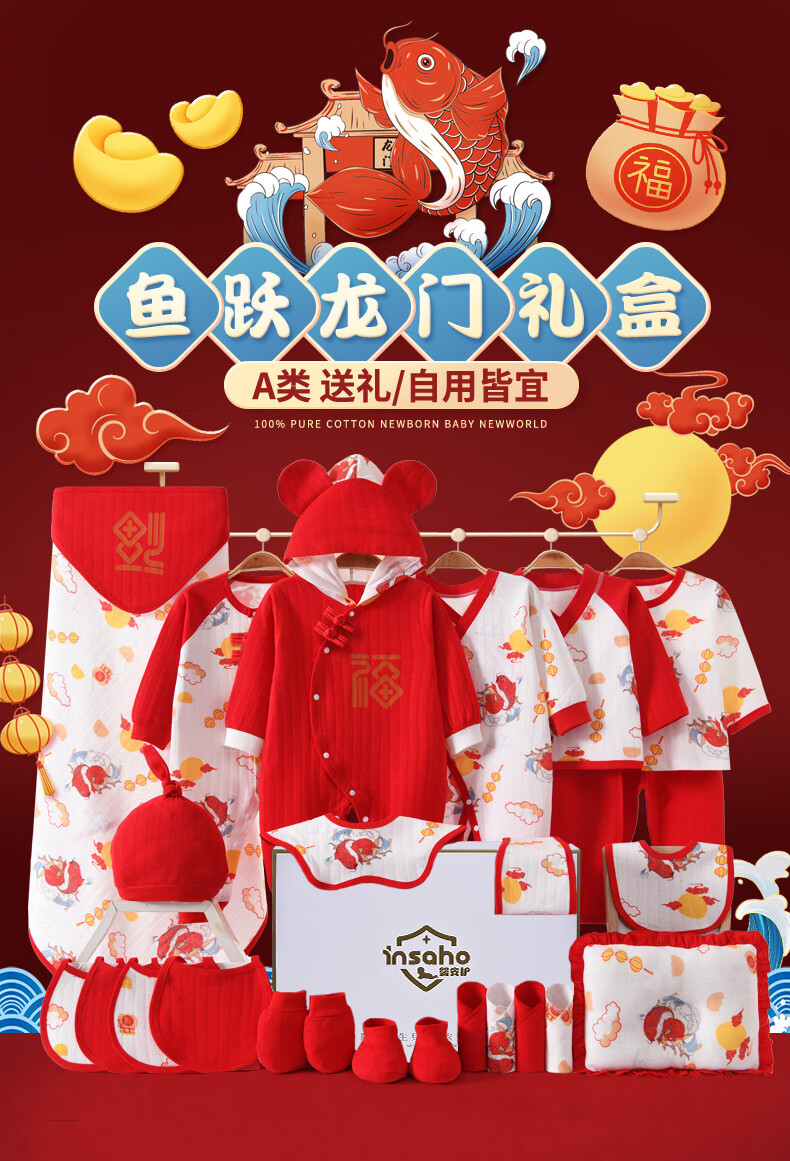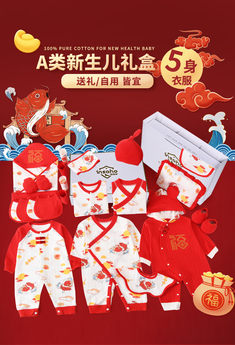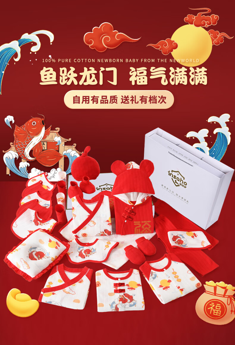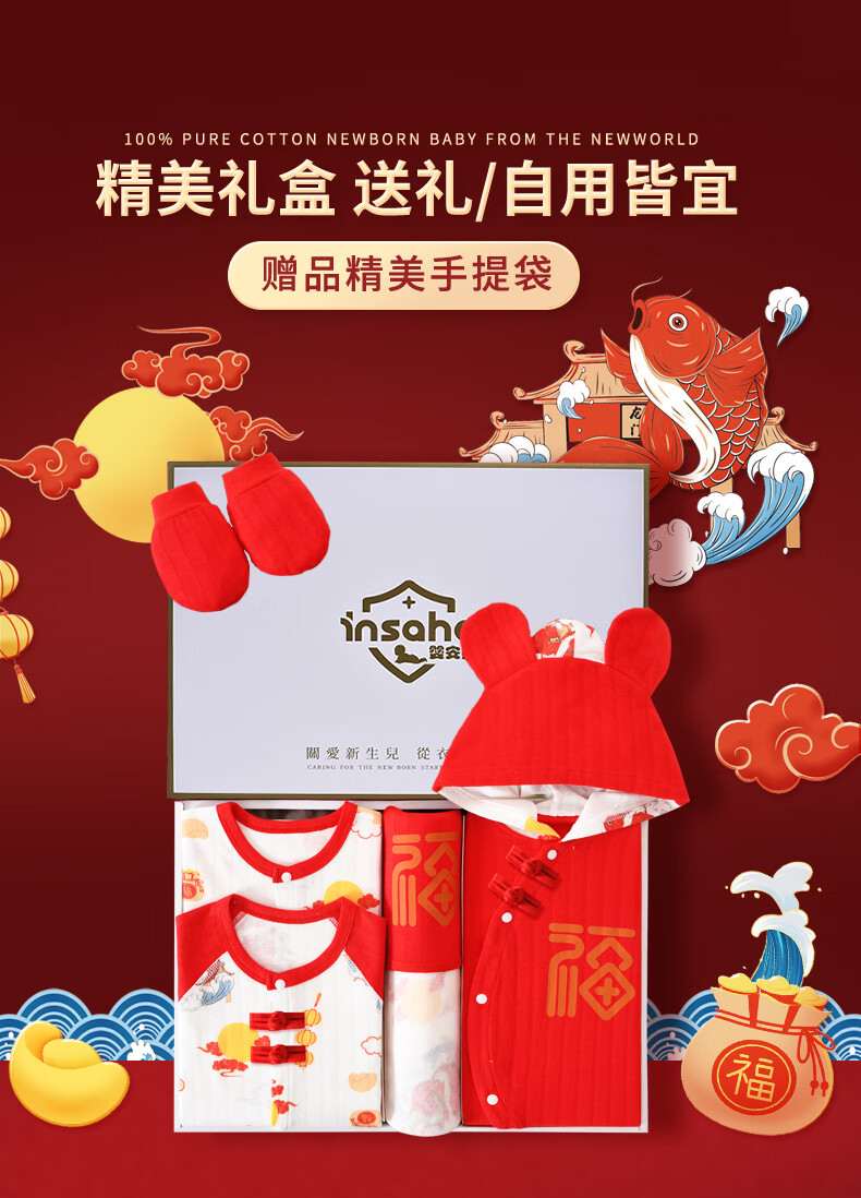 INSAHO baby clothes, cotton, newborn gift box, autumn and winter baby's full moon day meeting gift, mother and baby supplies