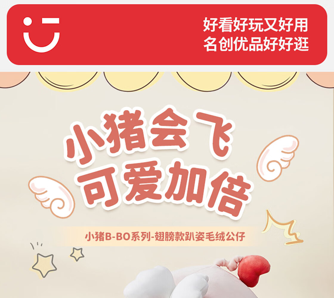 MINISO Piggy B-BO Wings Plush Doll Toy Doll Pillow Doll as Birthday Gift for Girlfriend and Children