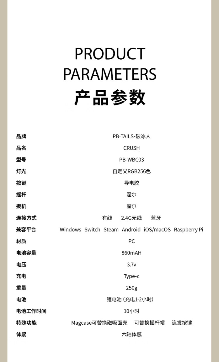 Icebreaker (PB TAILS) Crush550 pays tribute to the Porsche 550spyder wireless game controller supports Switch2 generation/Steam/computer/mobile phone/iPad/ Bluetooth Hall TMR rocker