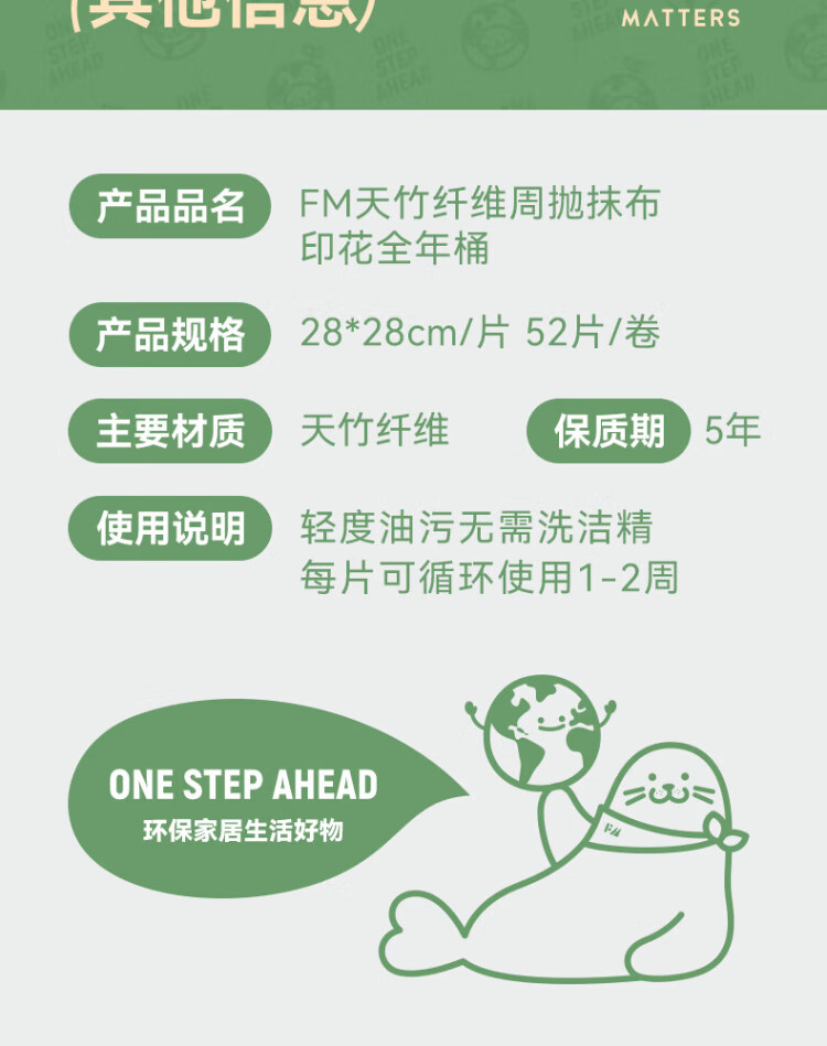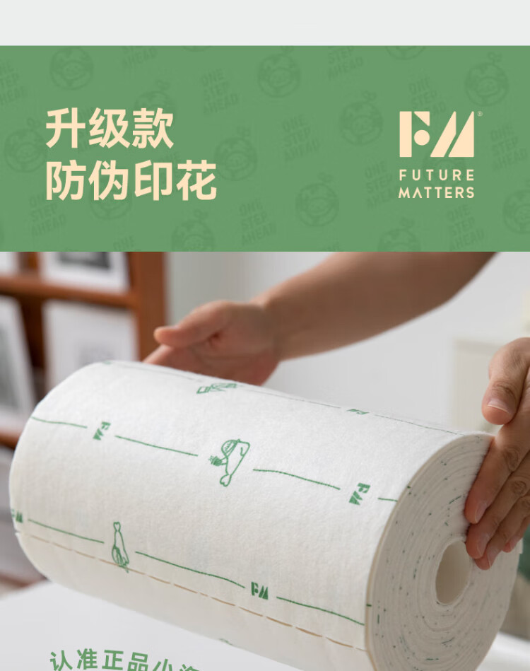 FUTURE MATTERS FM Tianzhu Fiber Weekly Disposable Rags Year-round Bucket 28*28cm 52 pieces/roll original printing formaldehyde-free fluorescent agent