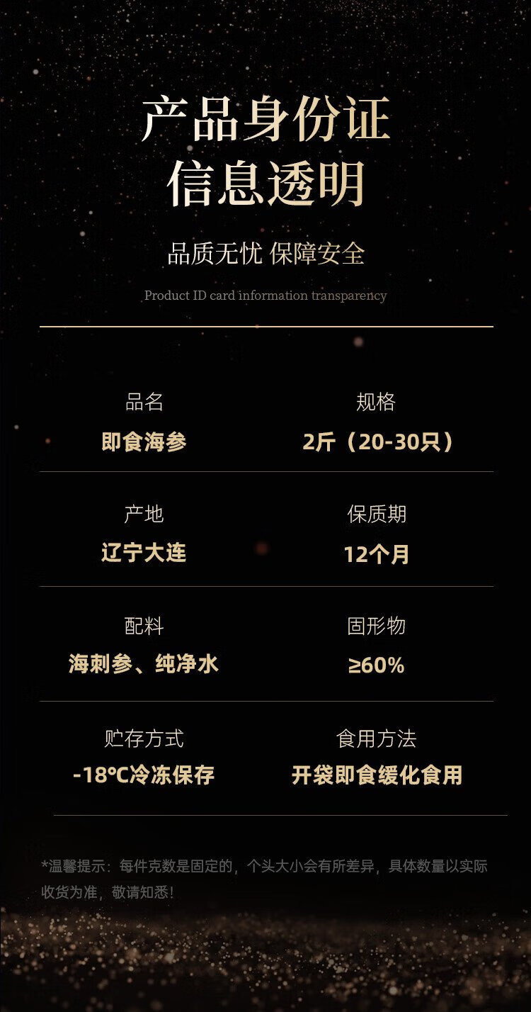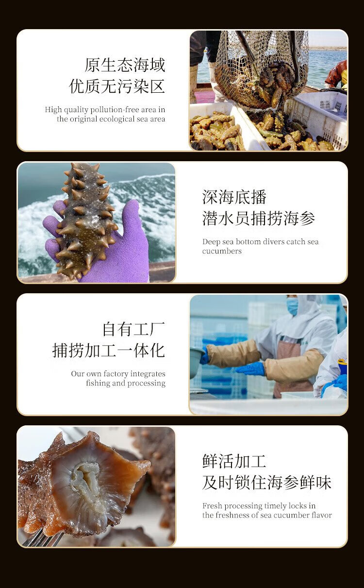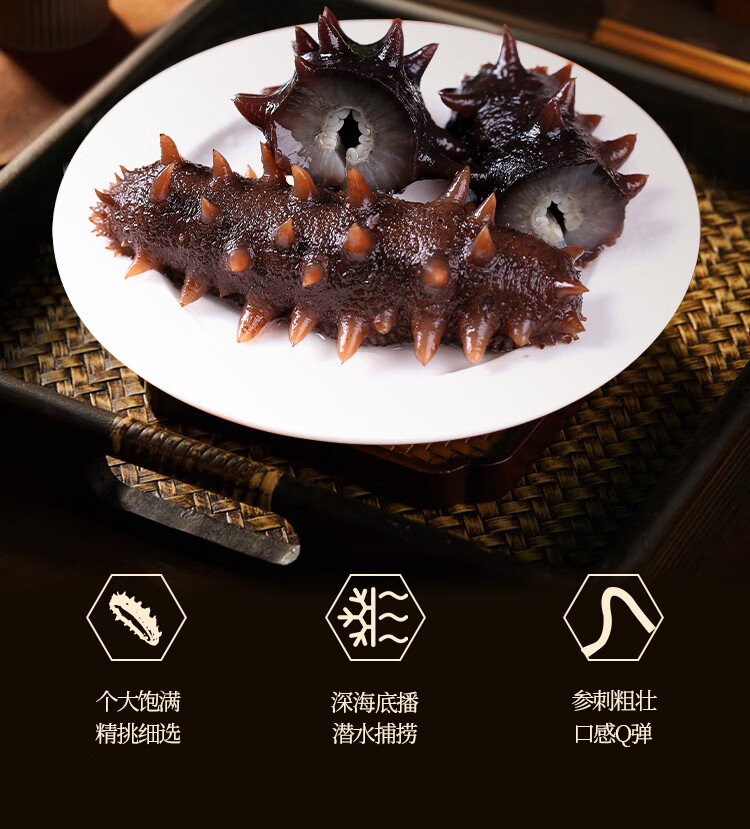 Gongyi Dalian ready-to-eat sea cucumber 2Jin Jin equals 0.5kg 20-30 pieces Home decoration No soaking bottom sowing sea cucumber fresh sea cucumber processing