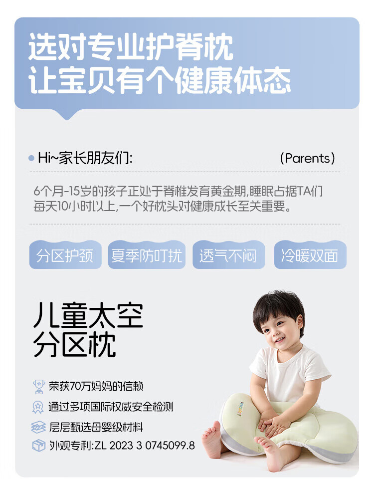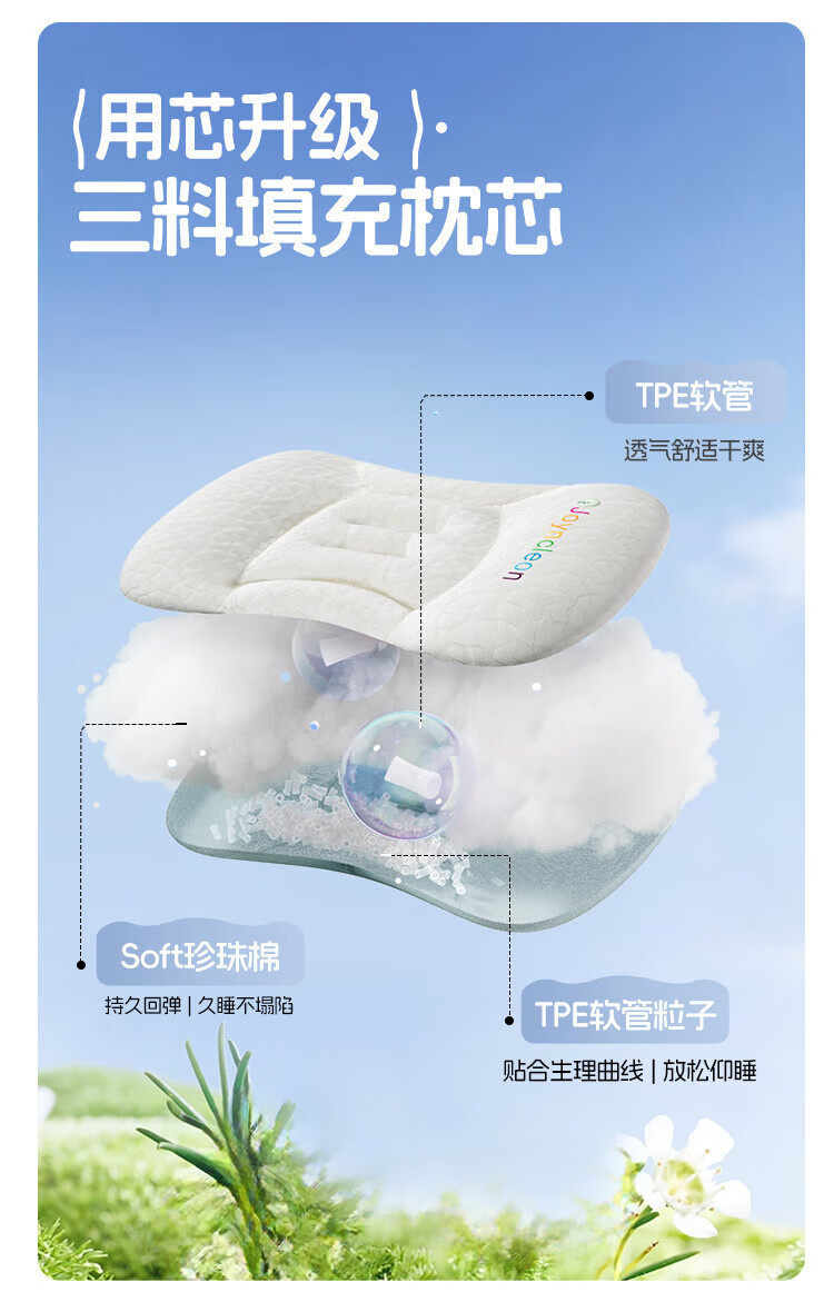 JOYNCLEON baby pillow partitioned baby pillow neck protector artifact for children over 6 months old 1-3 years old blue Jzt191221