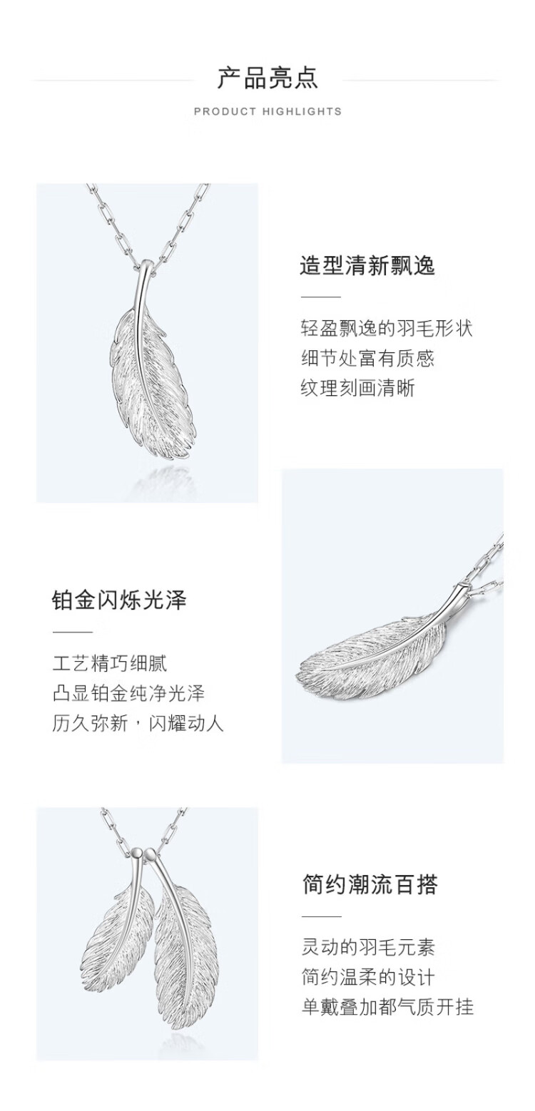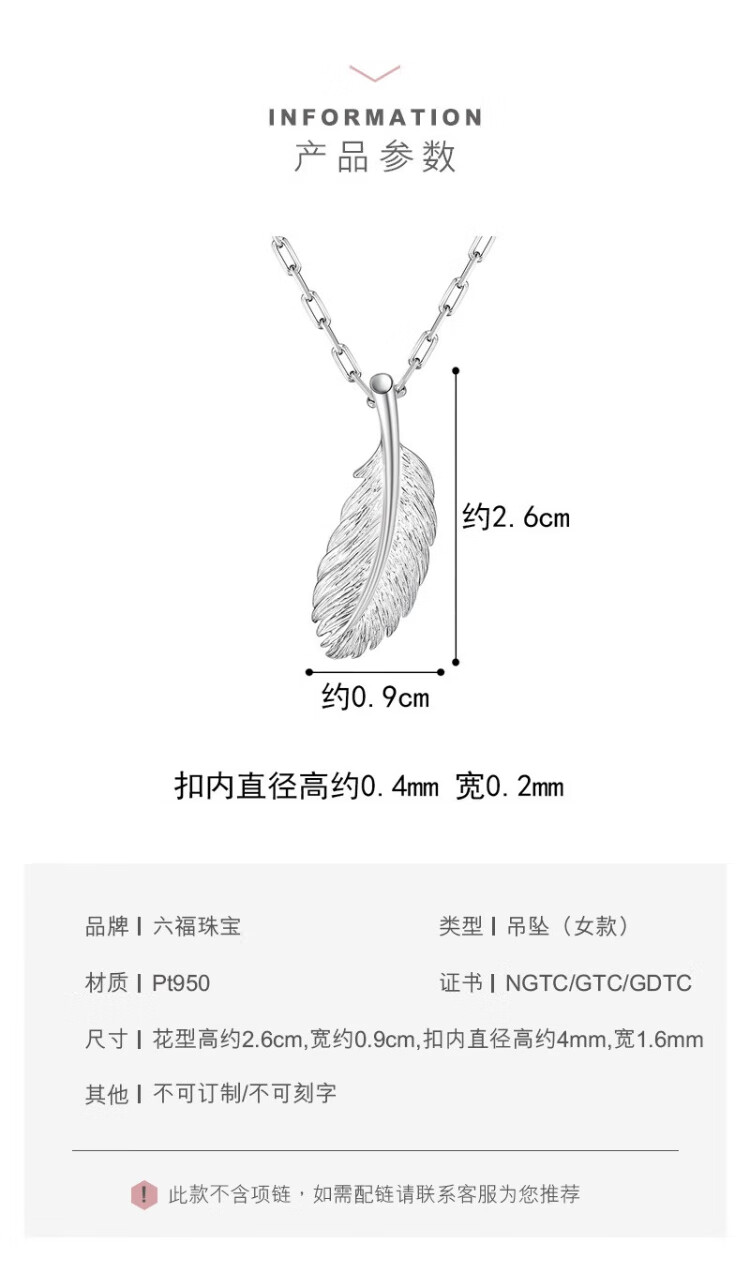 Lukfook Jewelry Platinum 950 Feather Platinum Pendant Women's Model Does Not Include Necklace Price Approximately 2.69 Grams