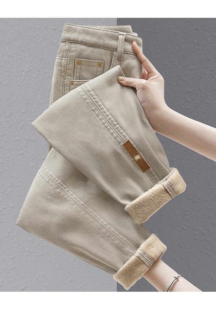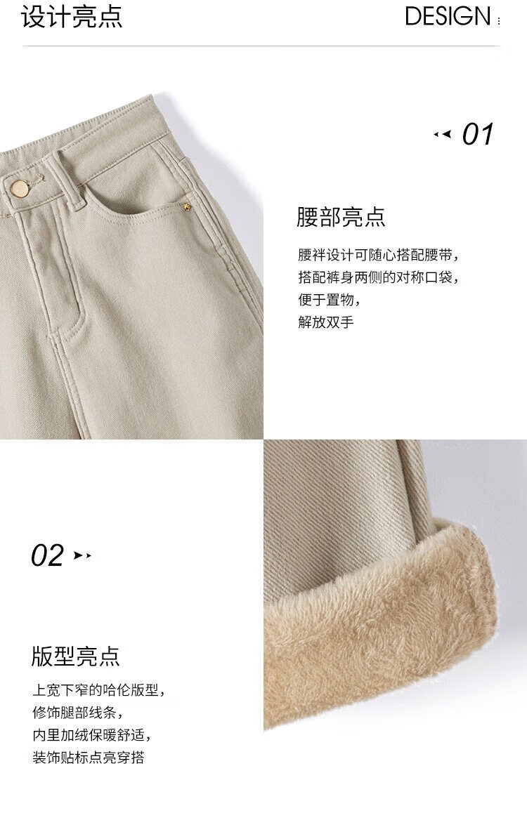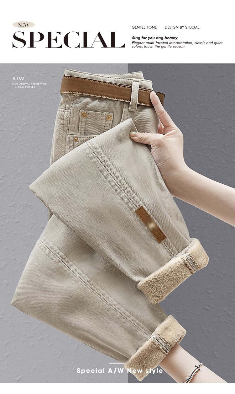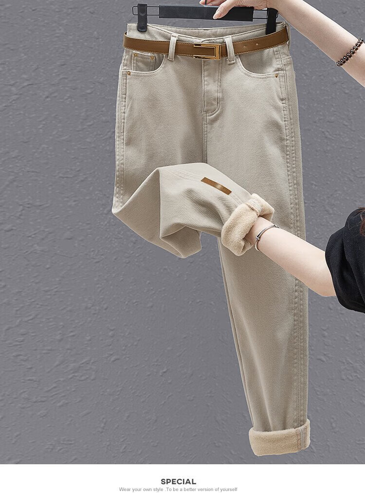 Cypress plus velvet washed jeans for women 2025 winter new style commuting high waist slim tapered harem pants