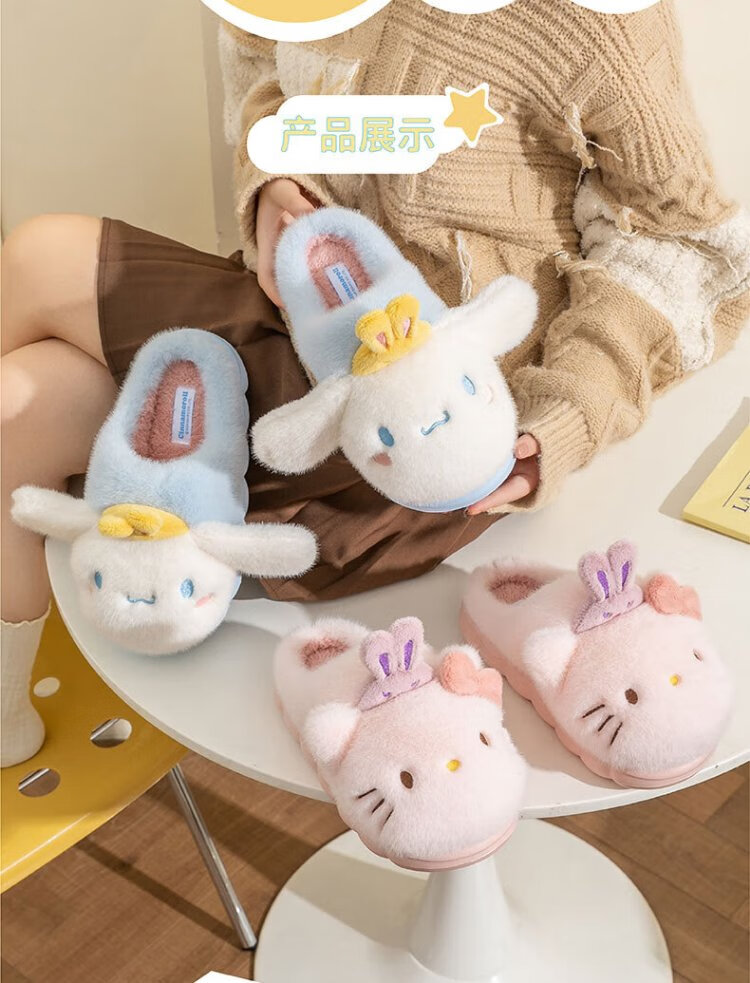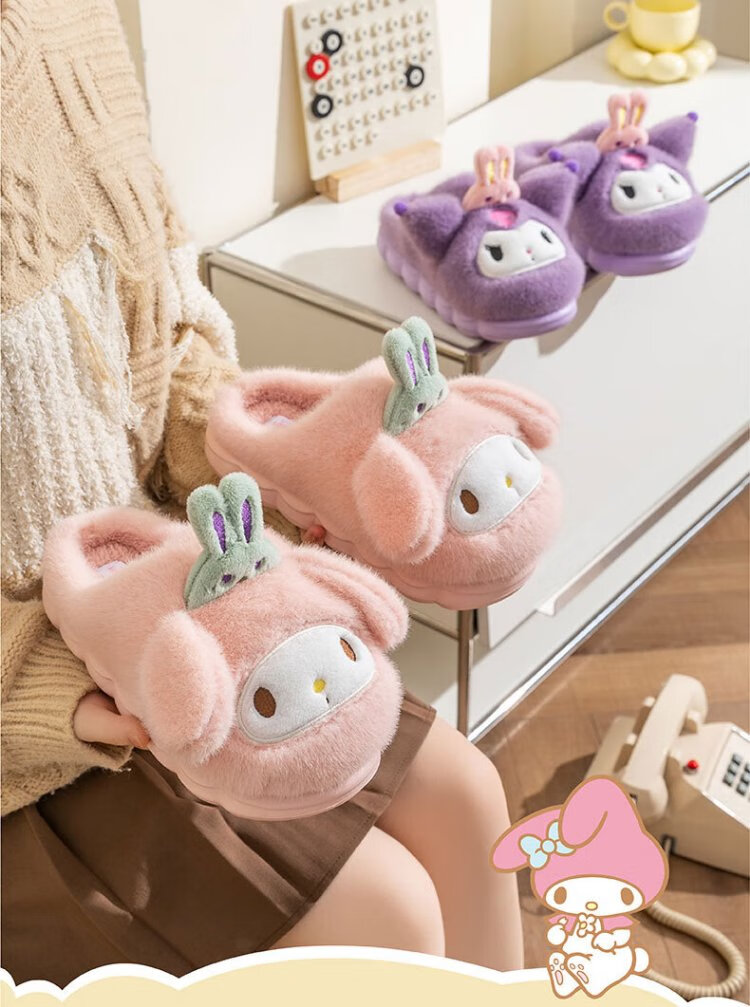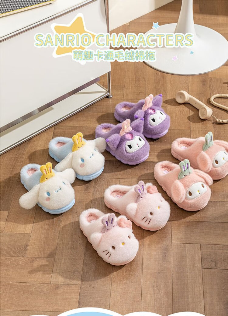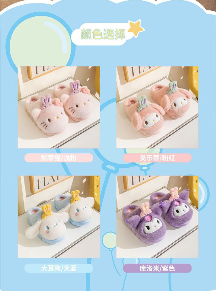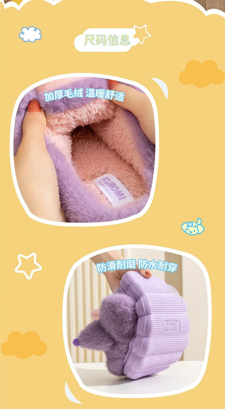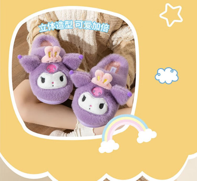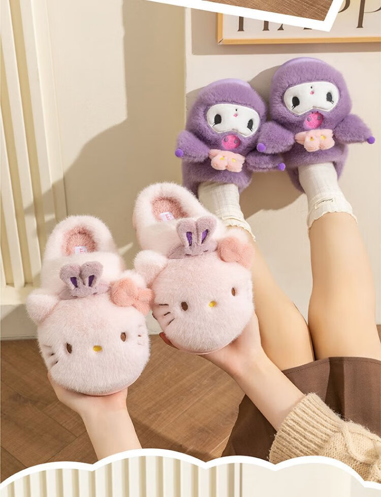 Hello Kitty Girls Cotton Slippers Winter Children's Indoor Home Shoes Children's Warm Parent-child Slippers Kurome Purple Size 32/33