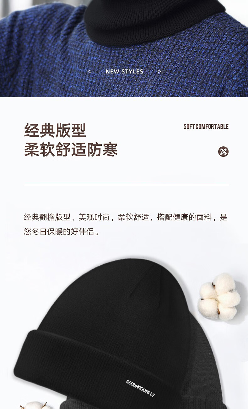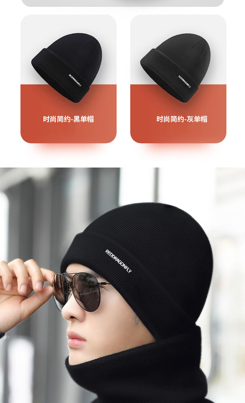 Red Dragonfly Hat Men's Winter Warm Woolen Hat Knitted Hat Windproof and Coldproof Plus Velvet Cold Hat Outdoor Cycling Ear Protection Hat