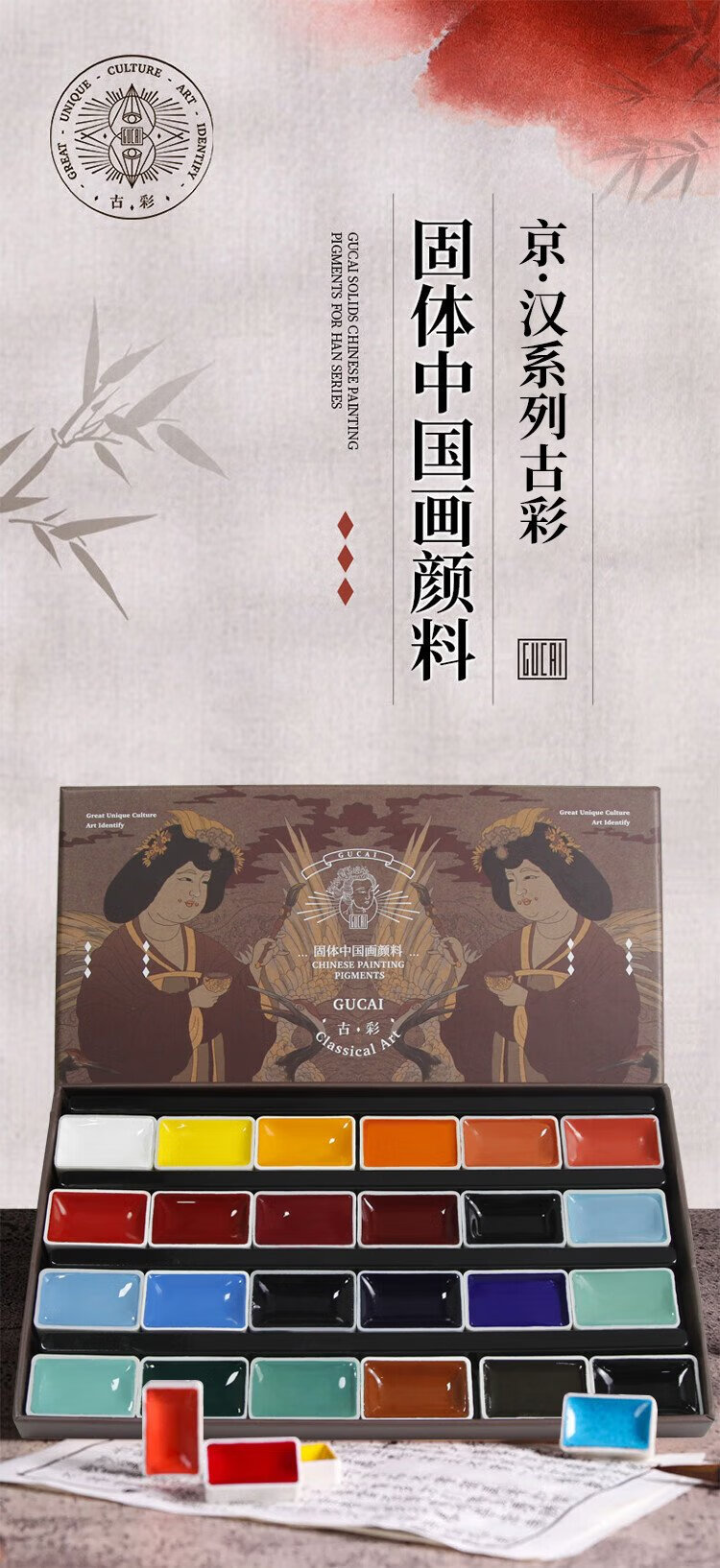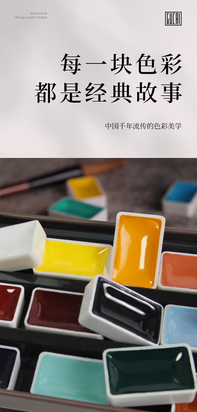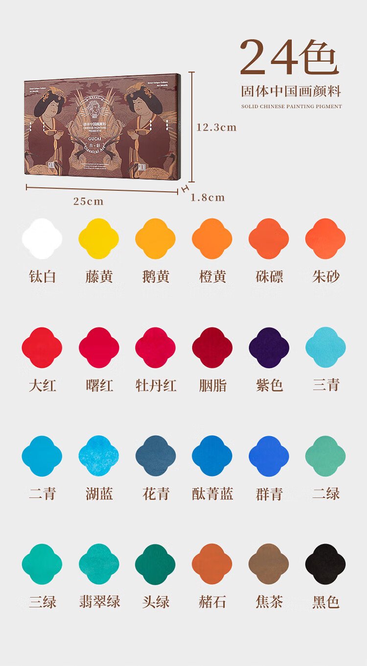Rubens 24-color Chinese painting pigment set entry-level ancient color Jinghan series solid watercolor gouache pigment children's Chinese ink painting tools 0138001037