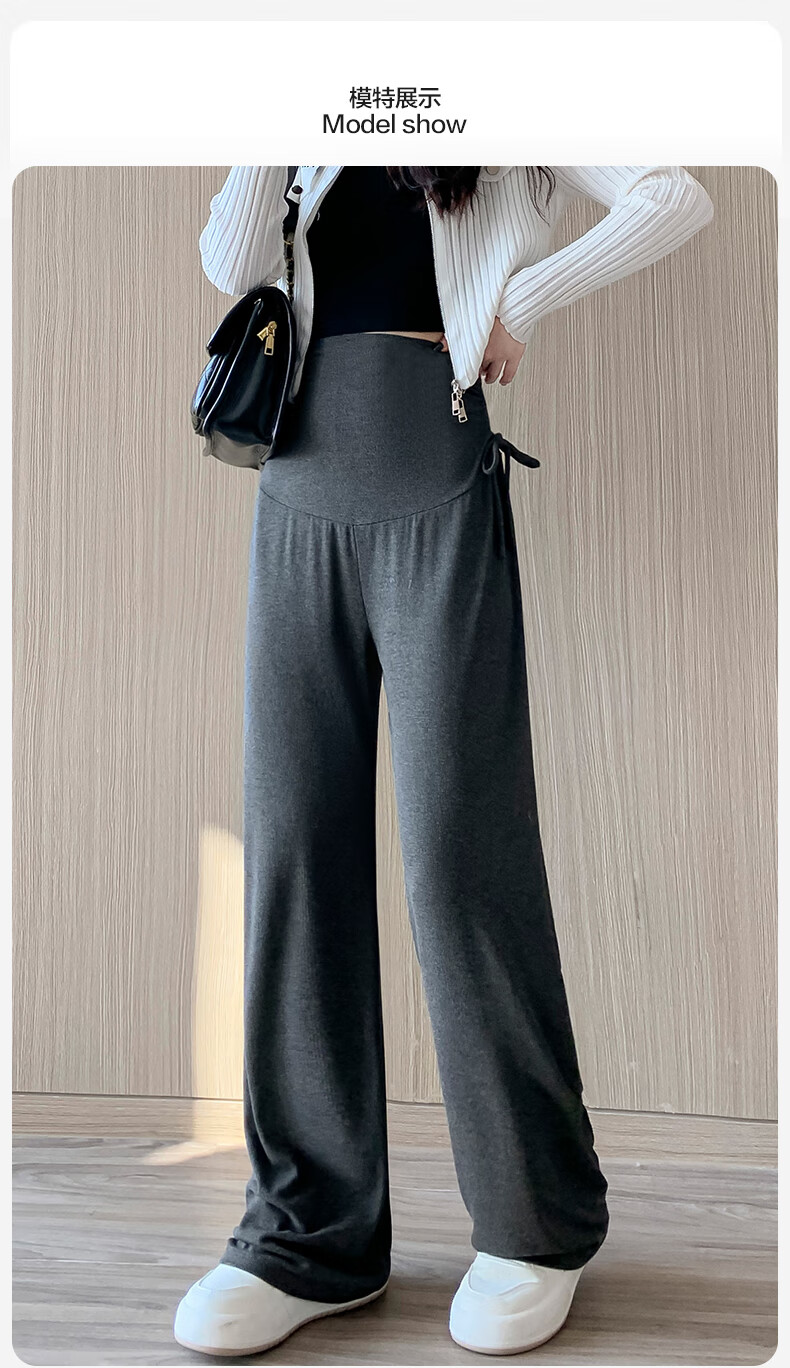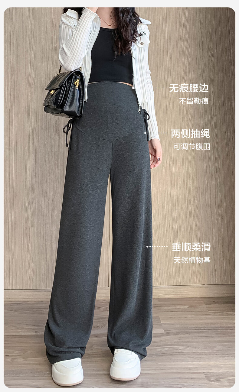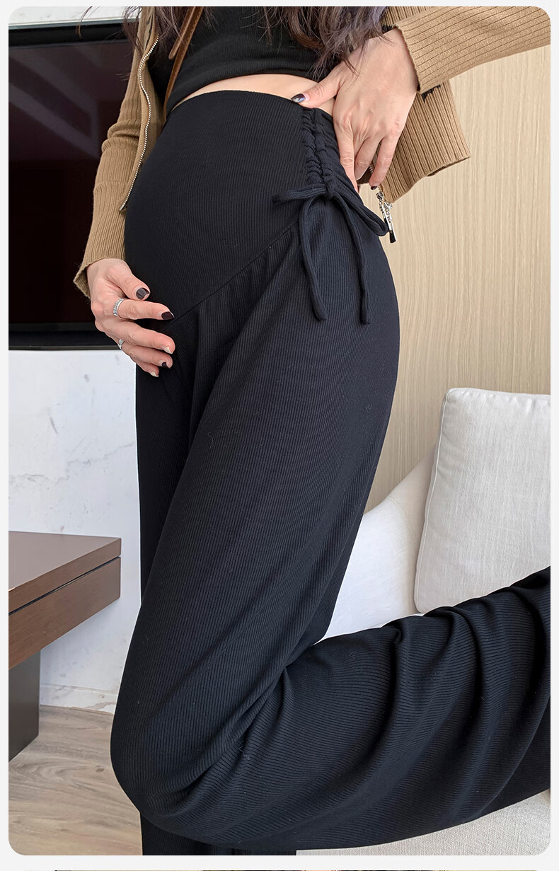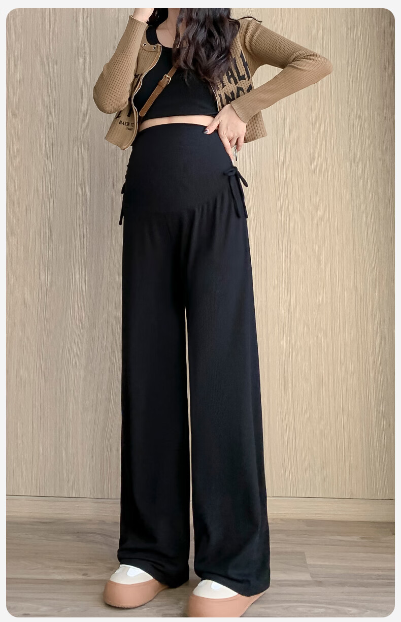 Miduli Maternity Pants Autumn and Winter Wide Leg Pants New Casual Straight Pants Side Waist Drawstring Glutinous Rice Pants Active Black XL