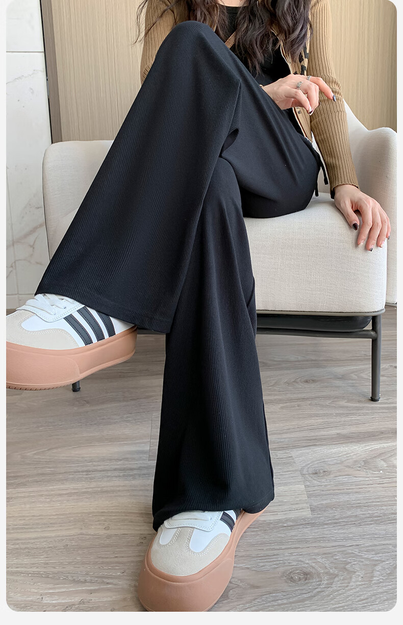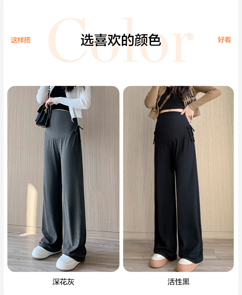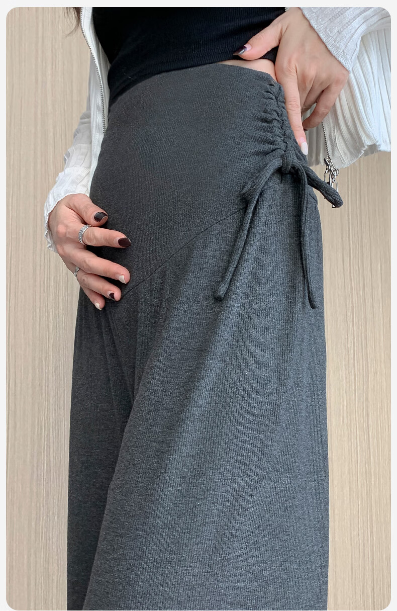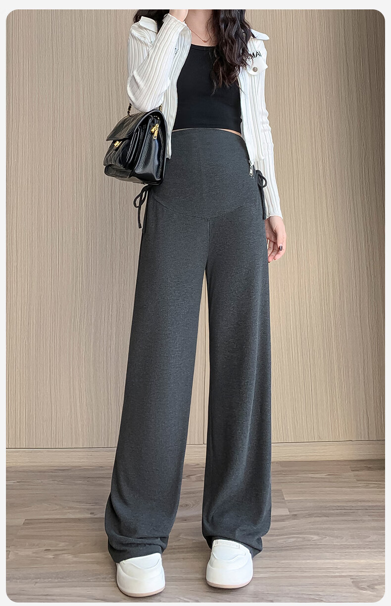 Miduli Maternity Pants Autumn and Winter Wide Leg Pants New Casual Straight Pants Side Waist Drawstring Glutinous Rice Pants Active Black XL