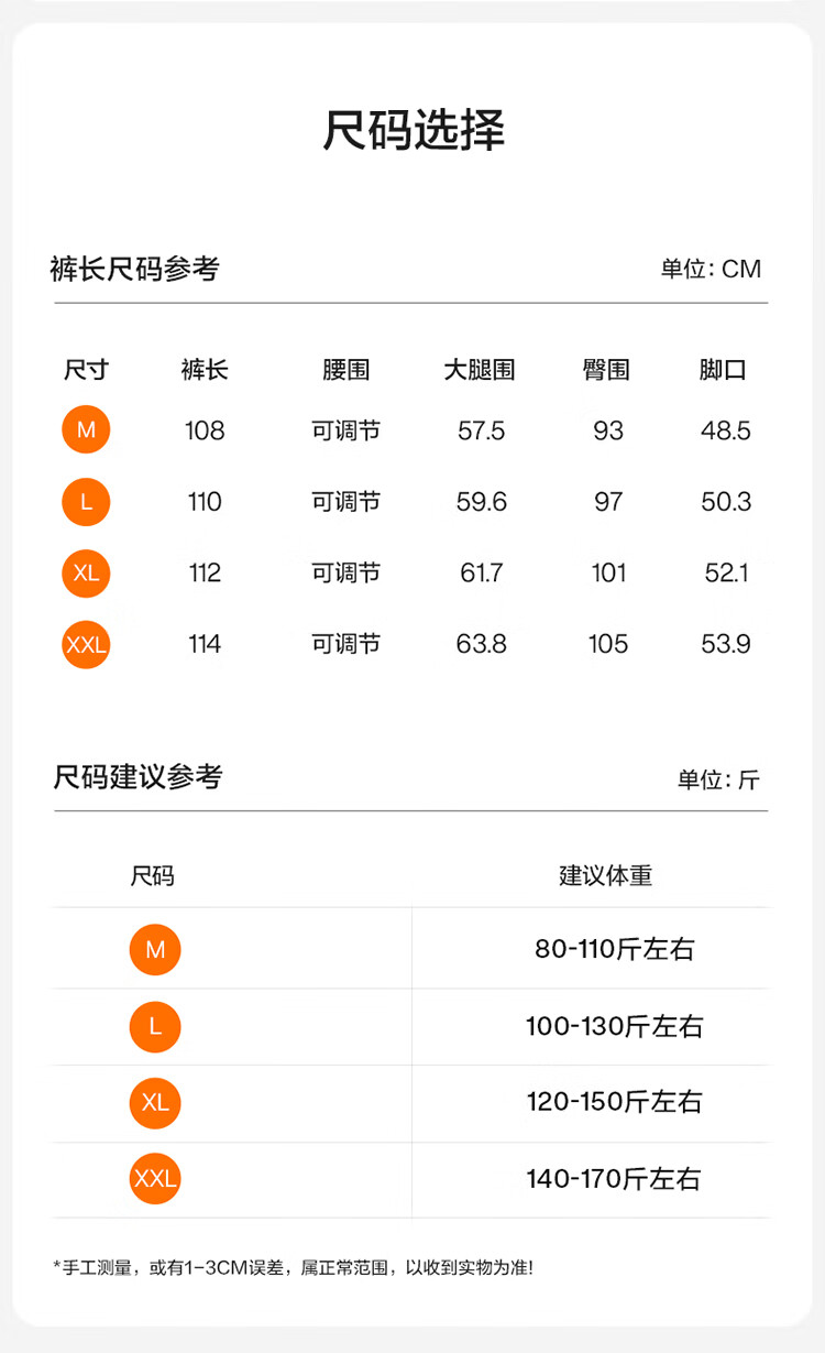Outseam (cm) 99 cm 101.5 cm 104 cm 106.5 cm 109 cm