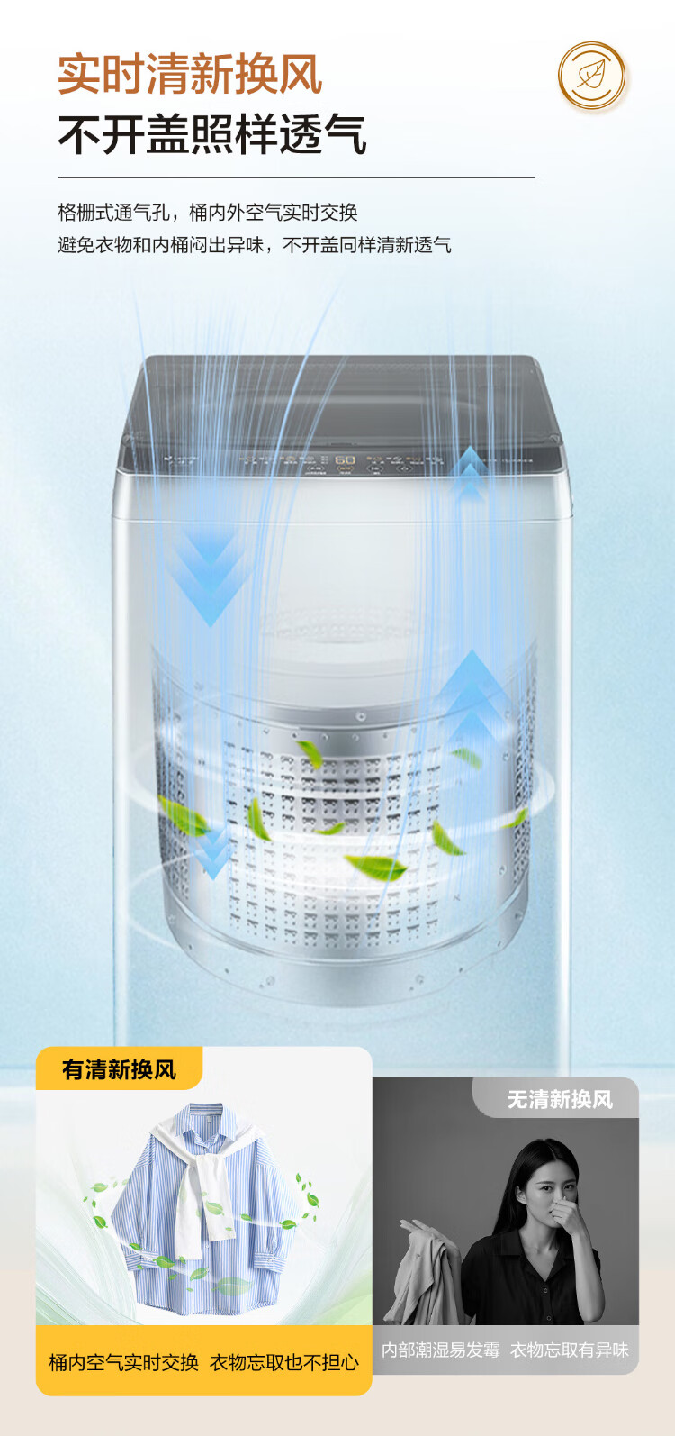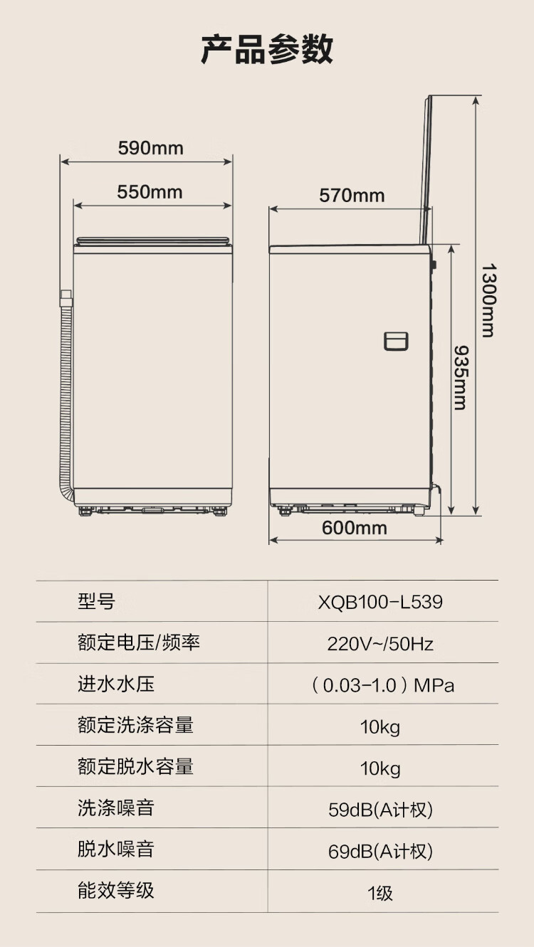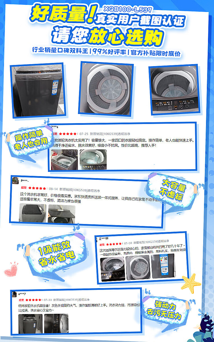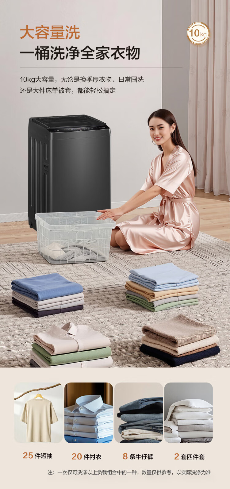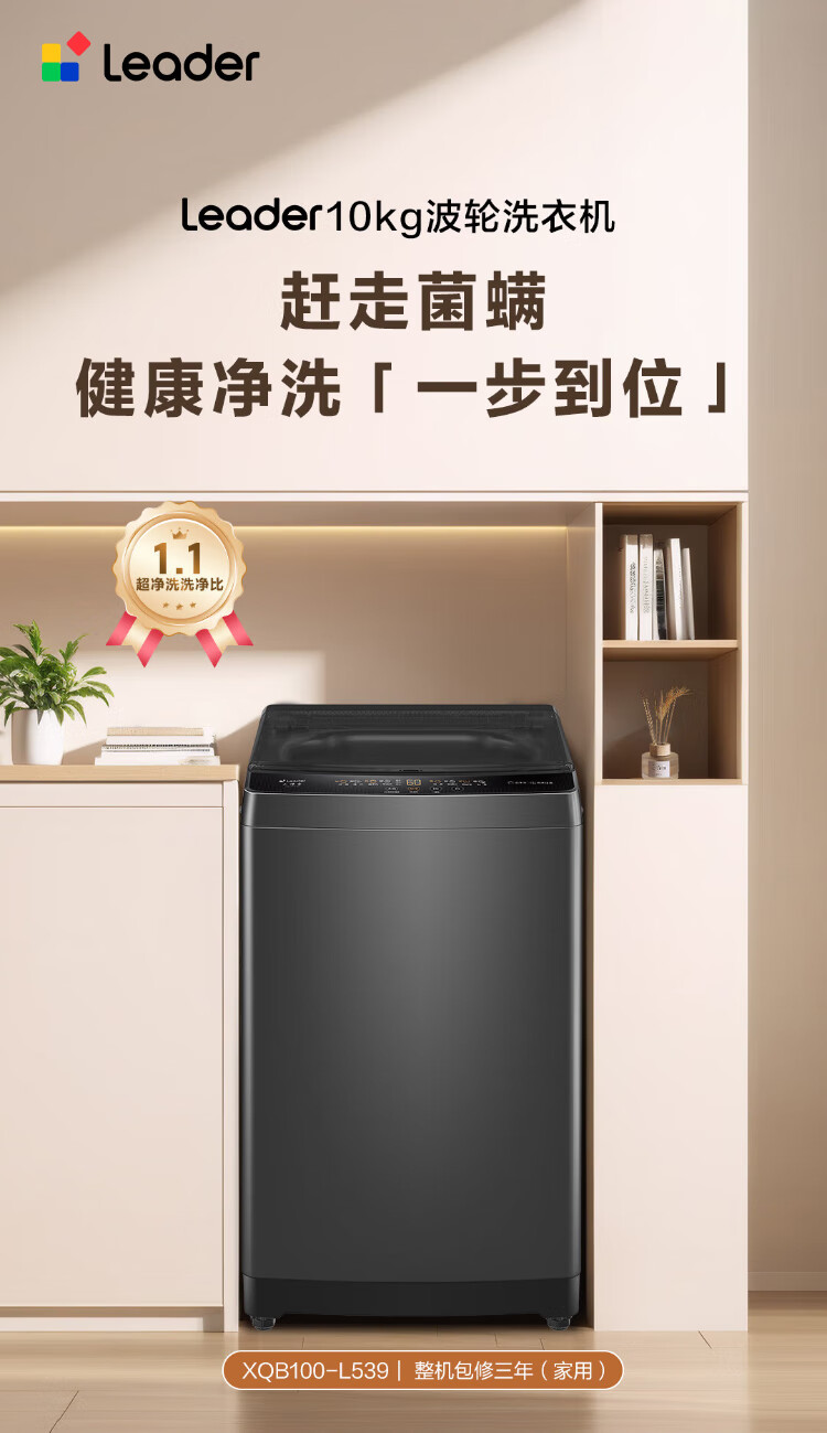 统帅(Leader)海尔智家出品波轮洗衣机全自动京东自营 10公斤家用一级能效省水电 以旧换新国家补贴XQB100-L539