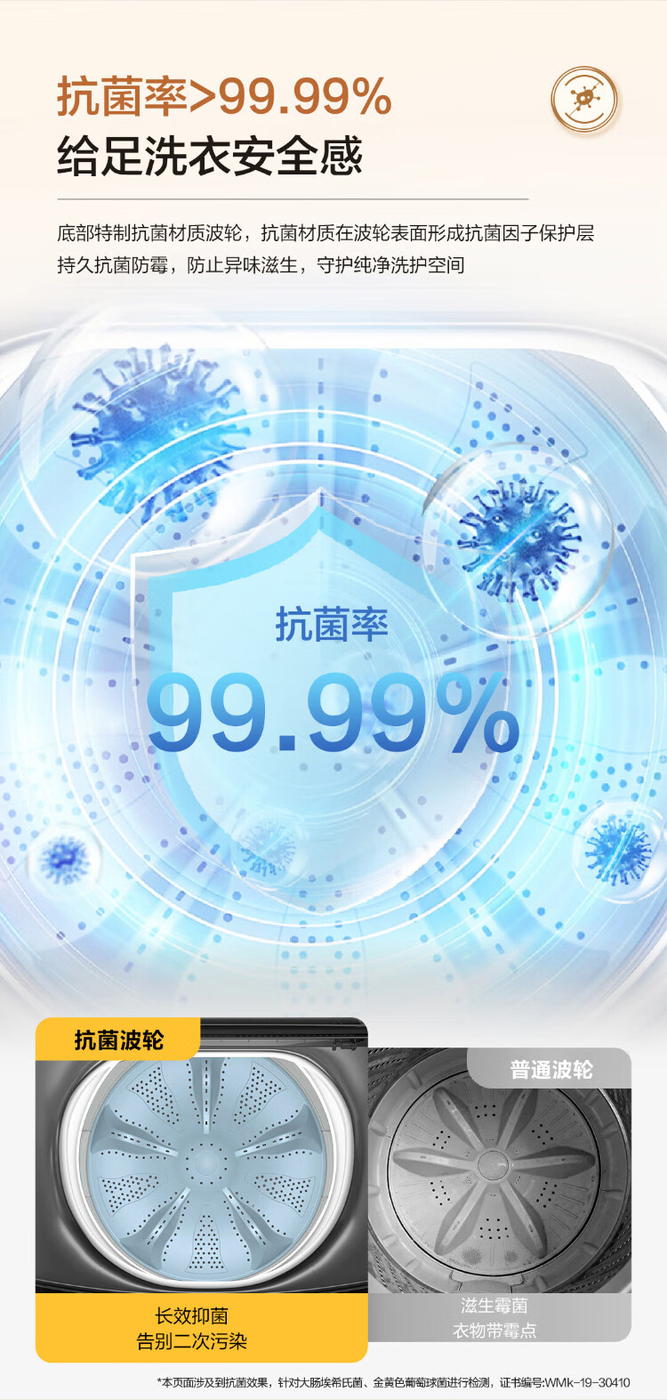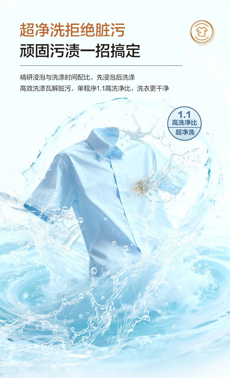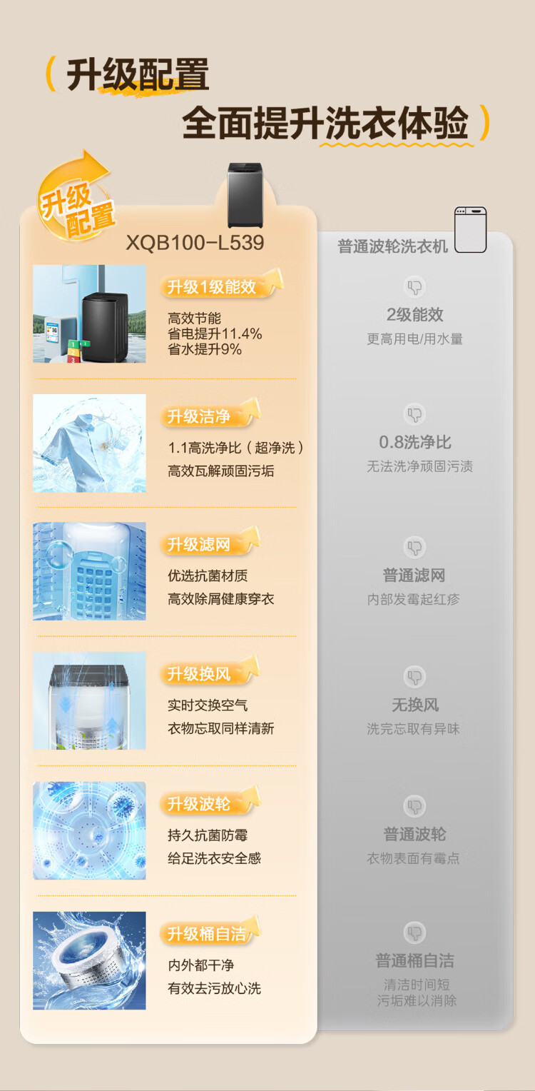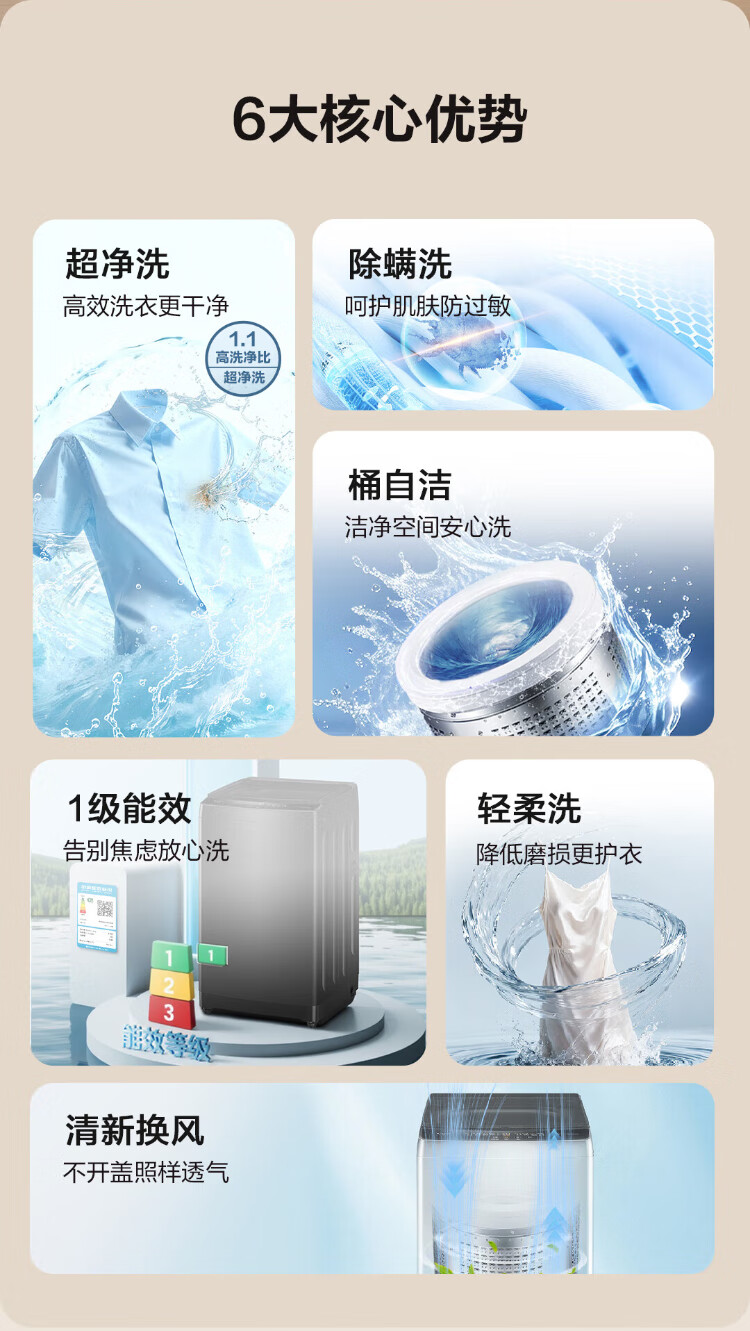 统帅(Leader)海尔智家出品波轮洗衣机全自动京东自营 10公斤家用一级能效省水电 以旧换新国家补贴XQB100-L539