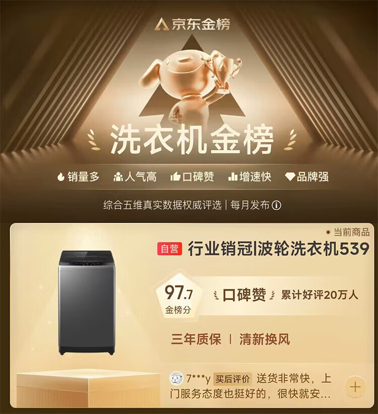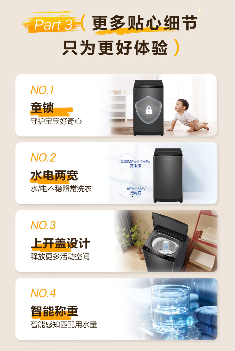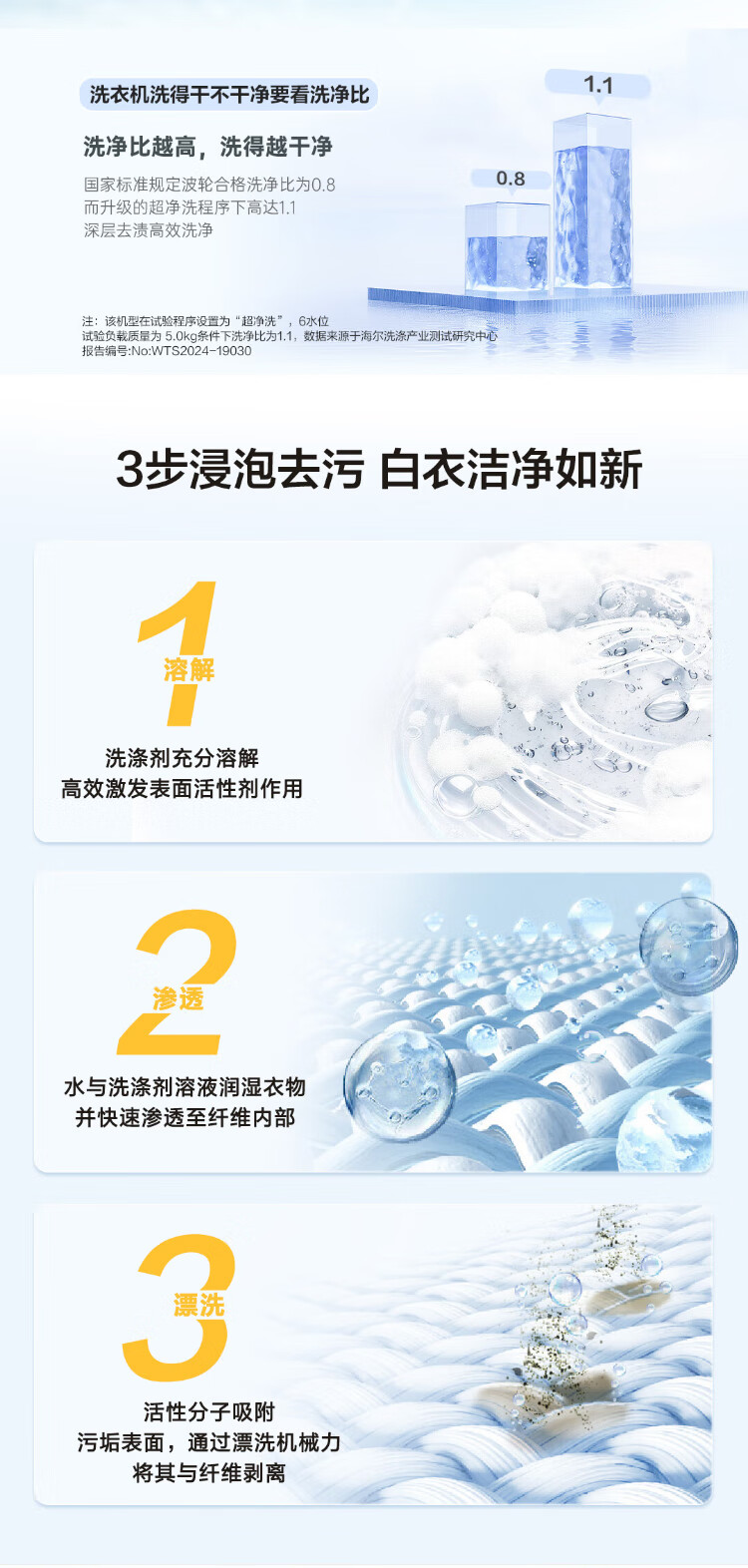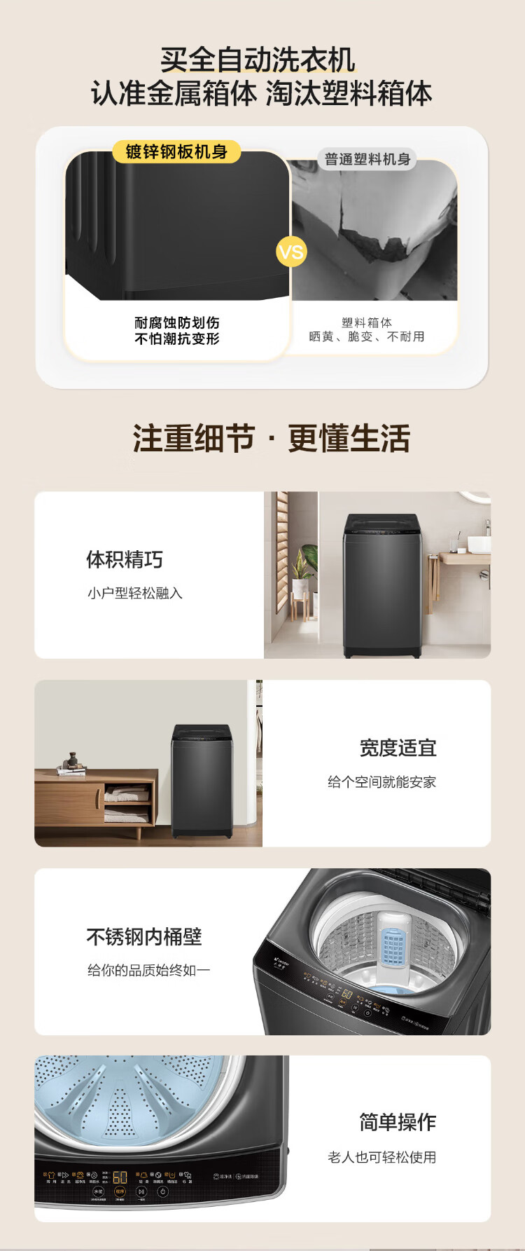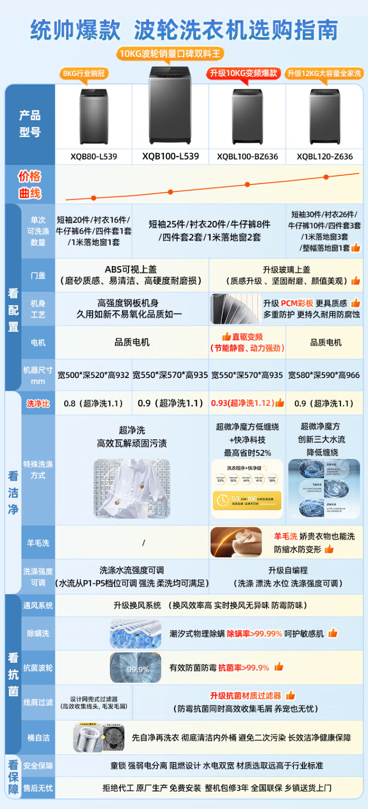 统帅(Leader)海尔智家出品波轮洗衣机全自动京东自营 10公斤家用一级能效省水电 以旧换新国家补贴XQB100-L539