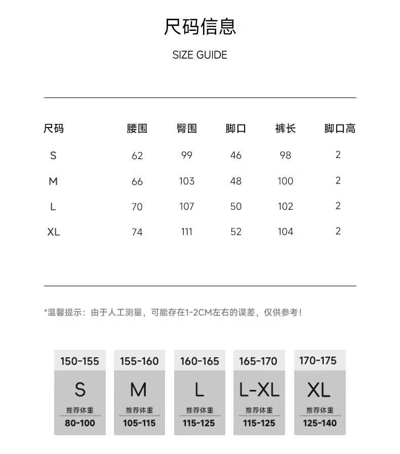 China (cm) 160-165/84-86 165-170 / 88-90 167-172 / 92-96 168-173 / 98-102 170-176 / 106-110