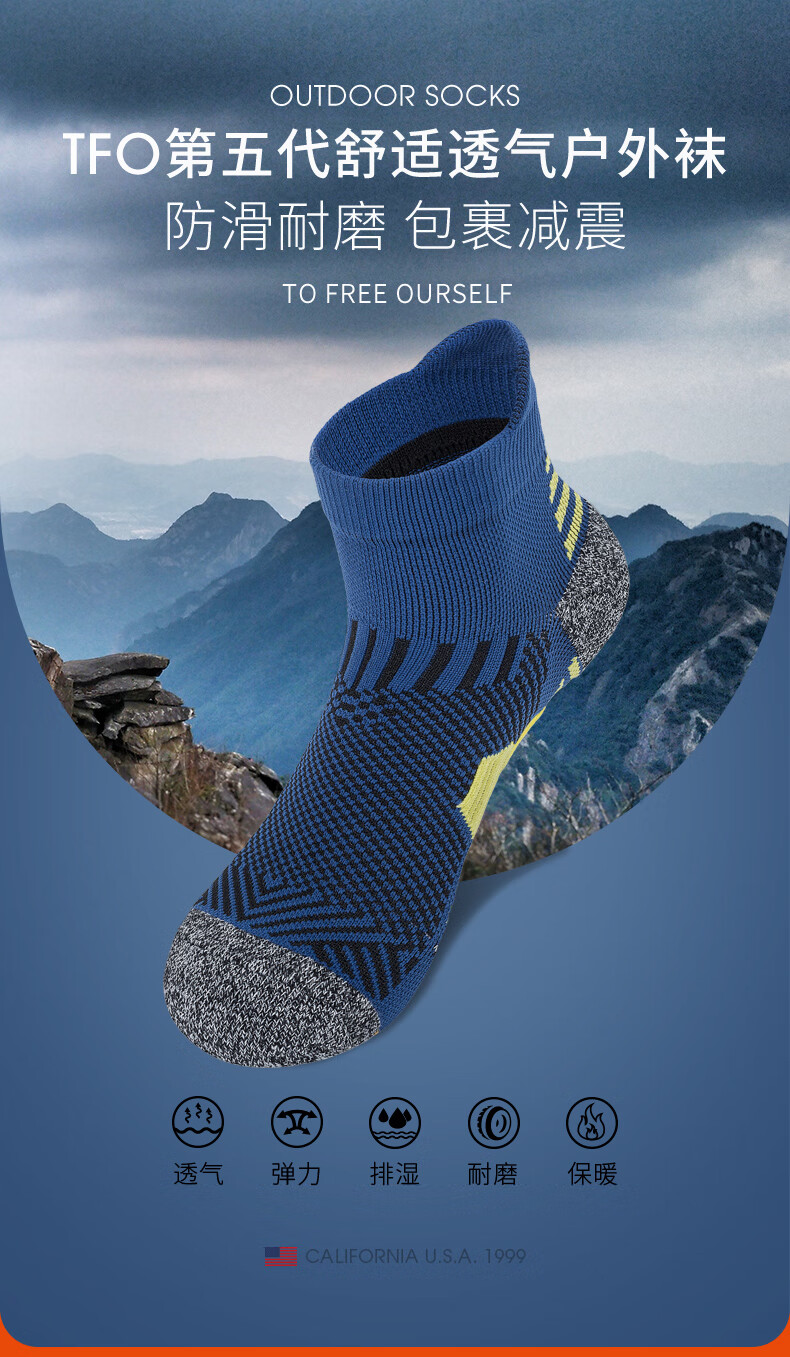 TFO event-level outdoor sports socks breathable hiking elastic mountaineering running socks A2202413 men's navy blue